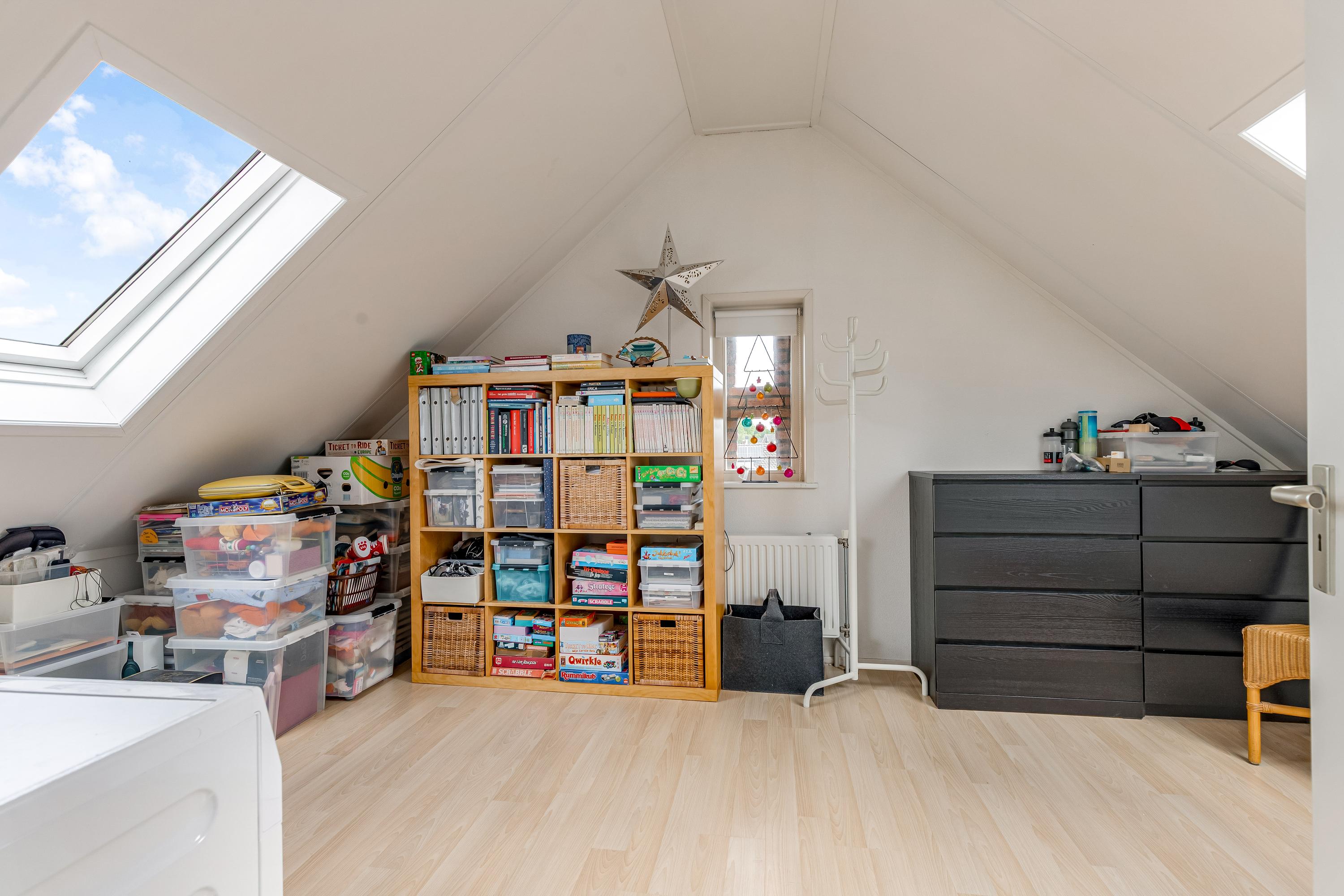 An exceptionally large garage and multifunctional area of 103 m² provide secure parking and flexible utility. twelve solar panels, comprehensive insulation, and a Vaillant HR boiler offer energy efficiency, reflected in the A+ energy label. Electric car charging, robust security systems, and a private entry further enhance discretion and comfort. Proximity to schools, train stations, Bussumerheide, and main roads connects village-like tranquility to urban accessibility.