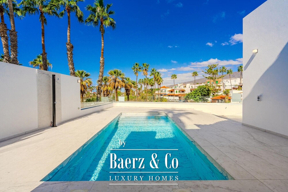 Villa Costa Adeje is a refined property set in the privileged south of Tenerife, less than one kilometer from the sea, beaches, and promenade. This brand-new villa stands at the entrance of a private street in a small, gated community, occupying a corner plot that ensures privacy and a sense of seclusion.