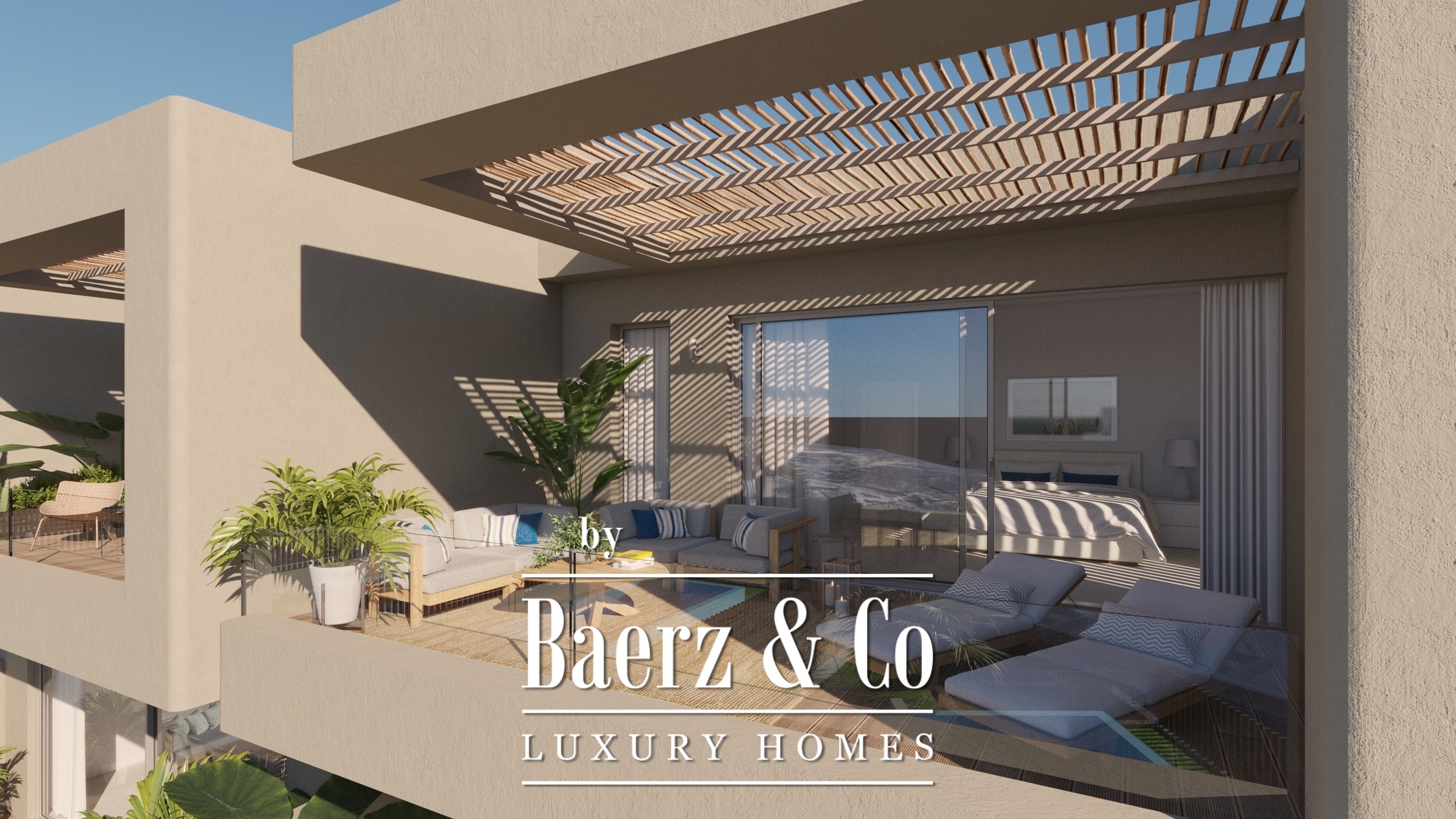 Inside, an en-suite bedroom, guest toilet, laundry room, and storage room contribute to daily comfort. Two parking spaces provide secure convenience. The penthouse’s position in this collection of 41 luxury homes ensures privacy, while green spaces and children’s playgrounds nearby create a gentle connection with nature. Ocean vistas complement the landscape, with the sound and light of the sea ever-present. A new golf course is planned just above the development, pointing to further lifestyle possibilities in the future.