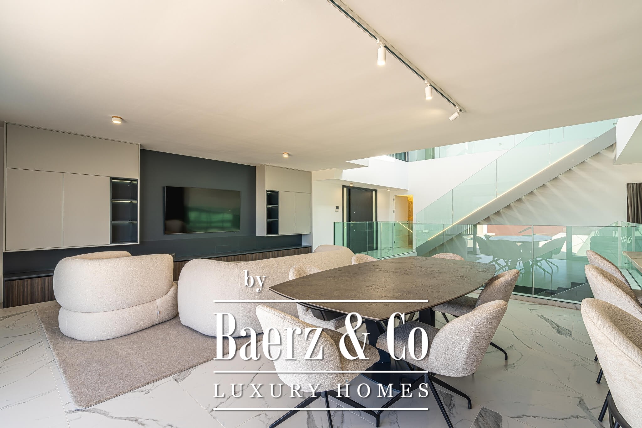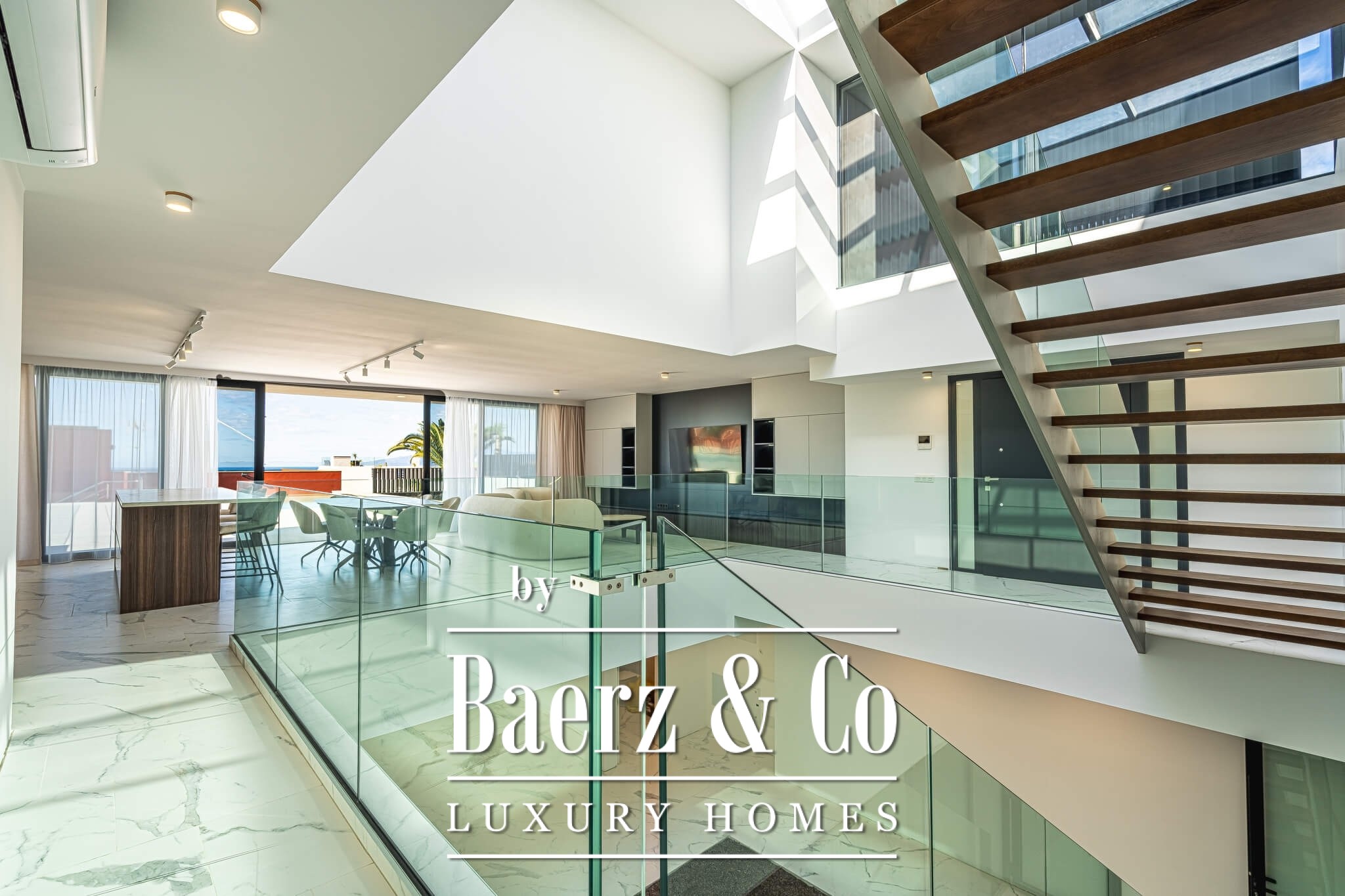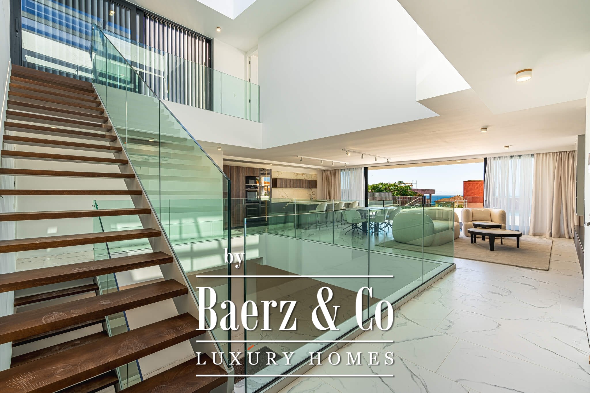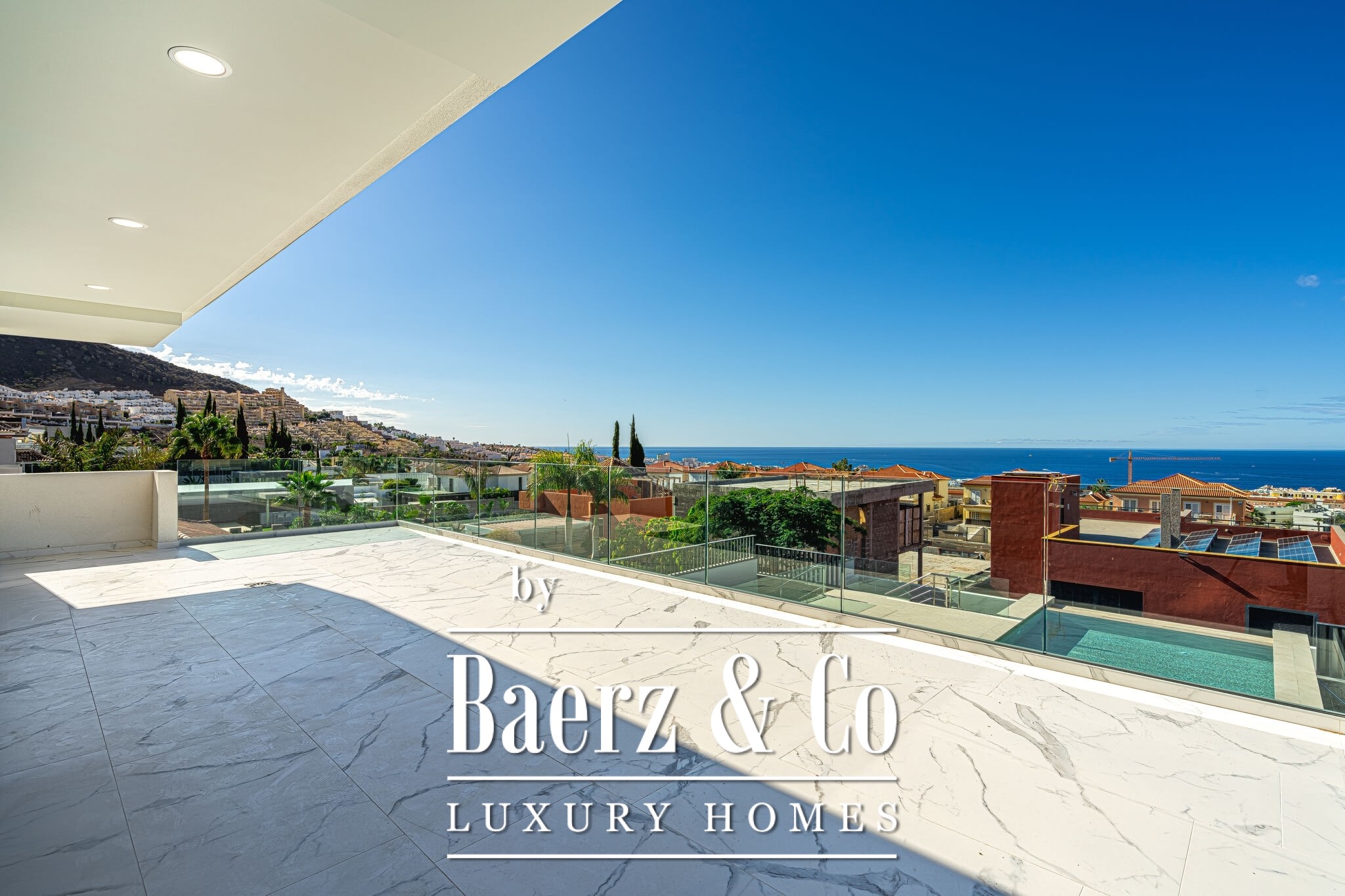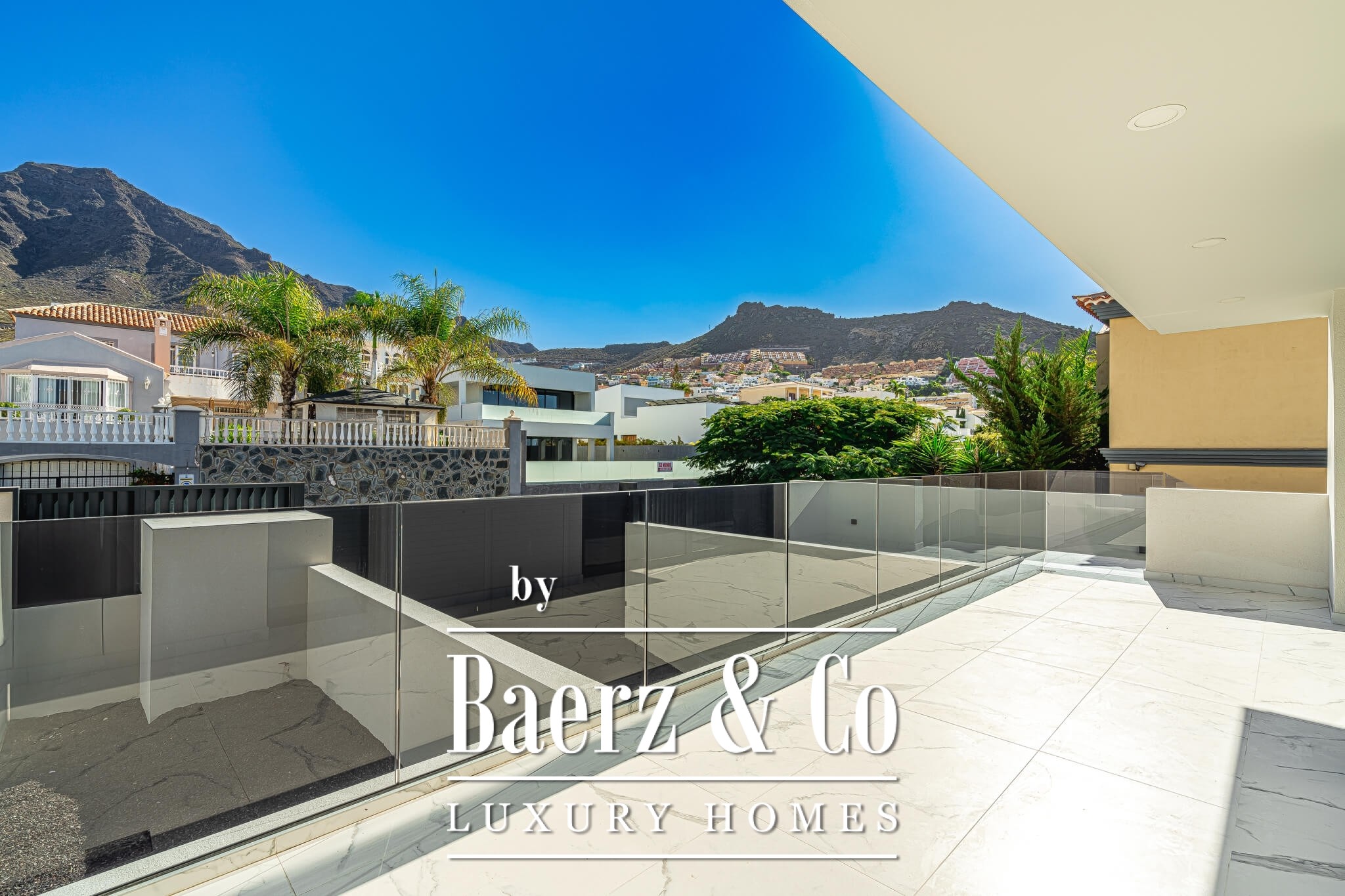 Luxury villa Costa Adeje is a residence defined by balance, space, and subtle comfort. This villa offers 484 m² of living area thoughtfully arranged across five bedrooms and five bathrooms, complemented by fitted wardrobes and a dedicated walk-in closet that add a layer of everyday ease. The understated architecture is framed by terraces and patios, creating calm transitions between indoor living and the outdoors.