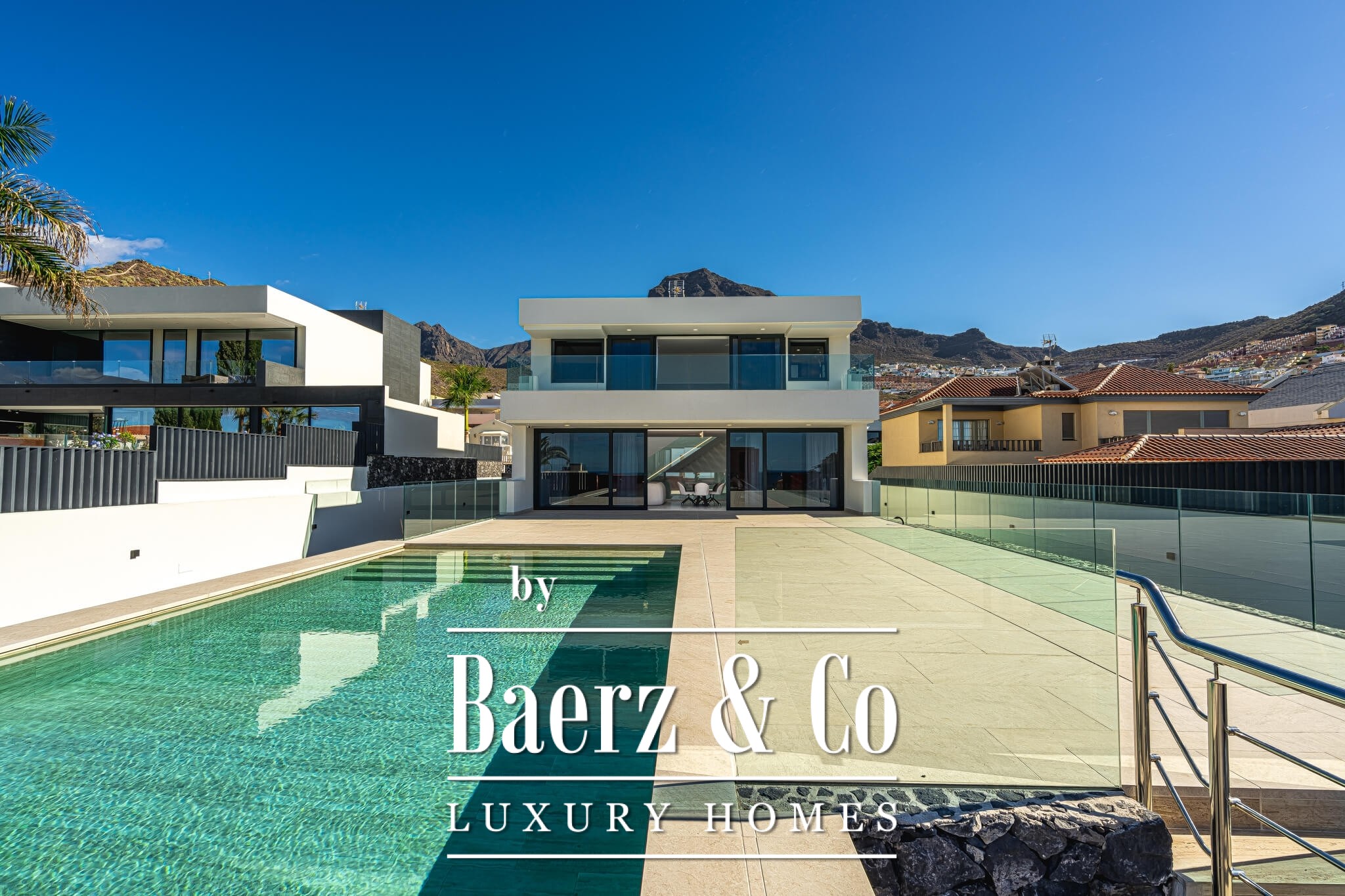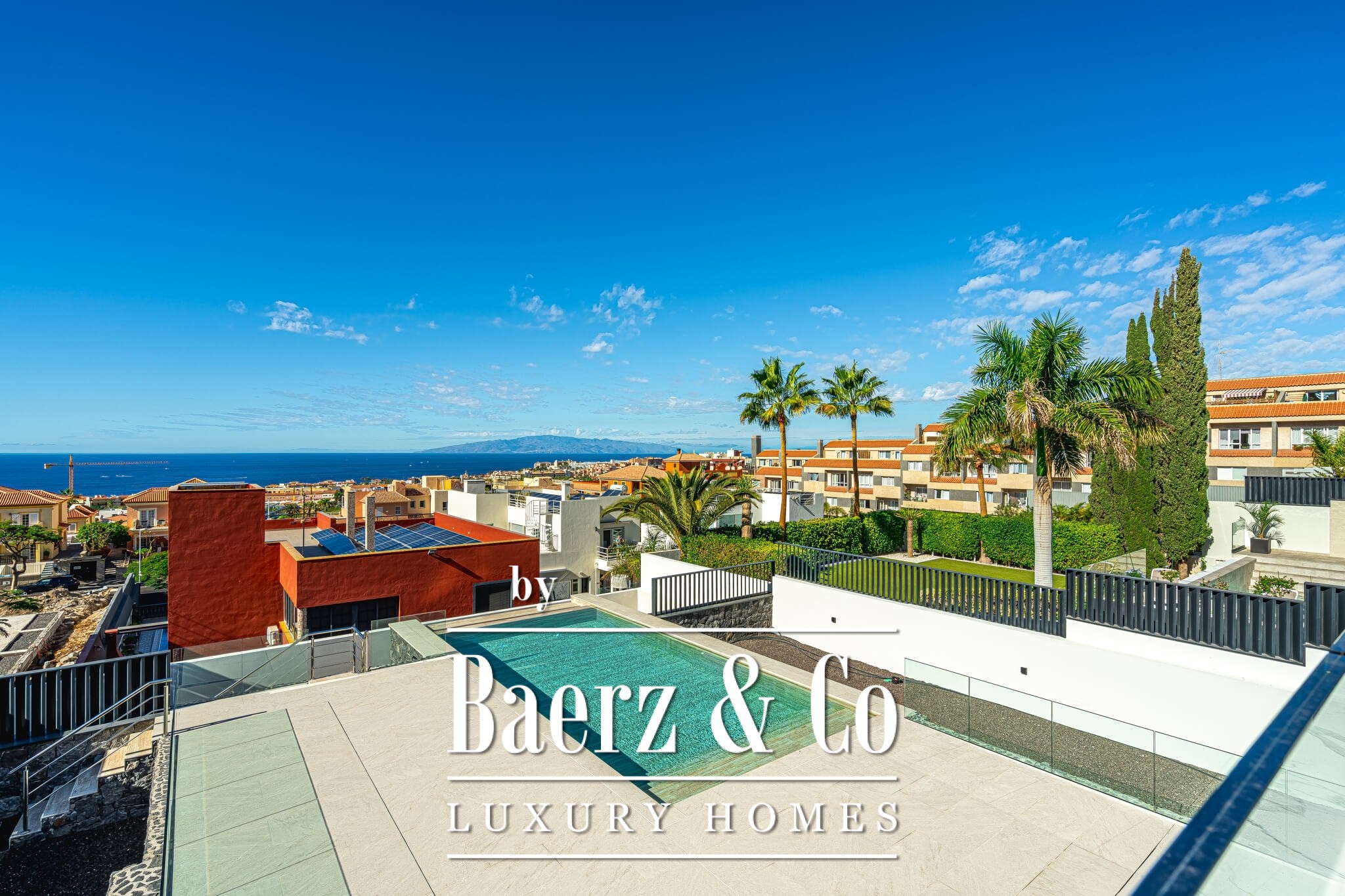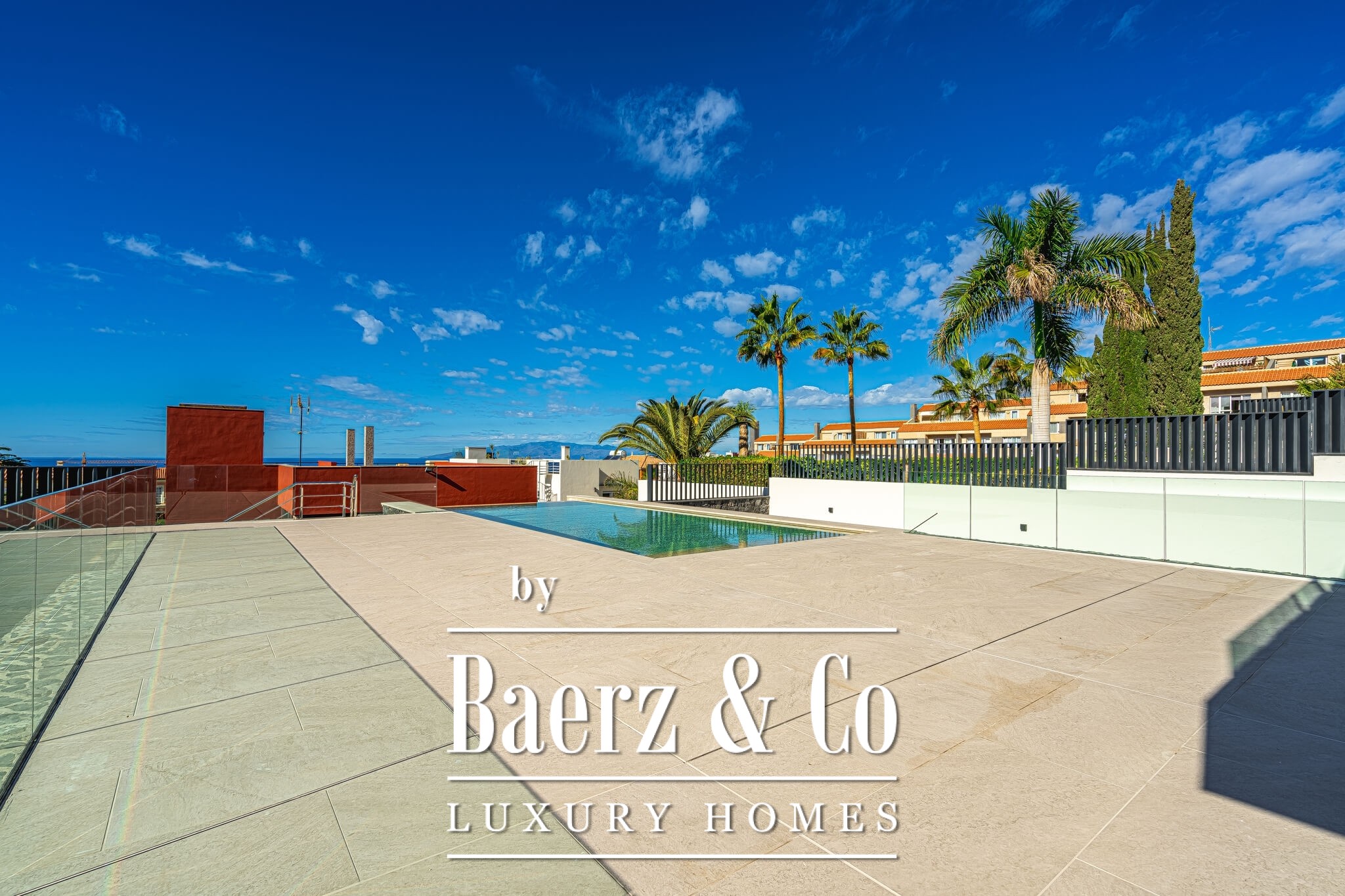 A heated swimming pool becomes the centrepiece for leisure, while a private garage for two cars offers security and convenience. Set within an 825 m² plot, the property supports privacy and quiet rhythm. Carefully considered details, from spatial layout to the quality of finishes, underscore an aesthetic of refined simplicity. For those drawn to Costa Adeje, this villa presents an invitation to experience space, light, and understated luxury. Long tail variation: Costa Adeje luxury villa with heated pool.