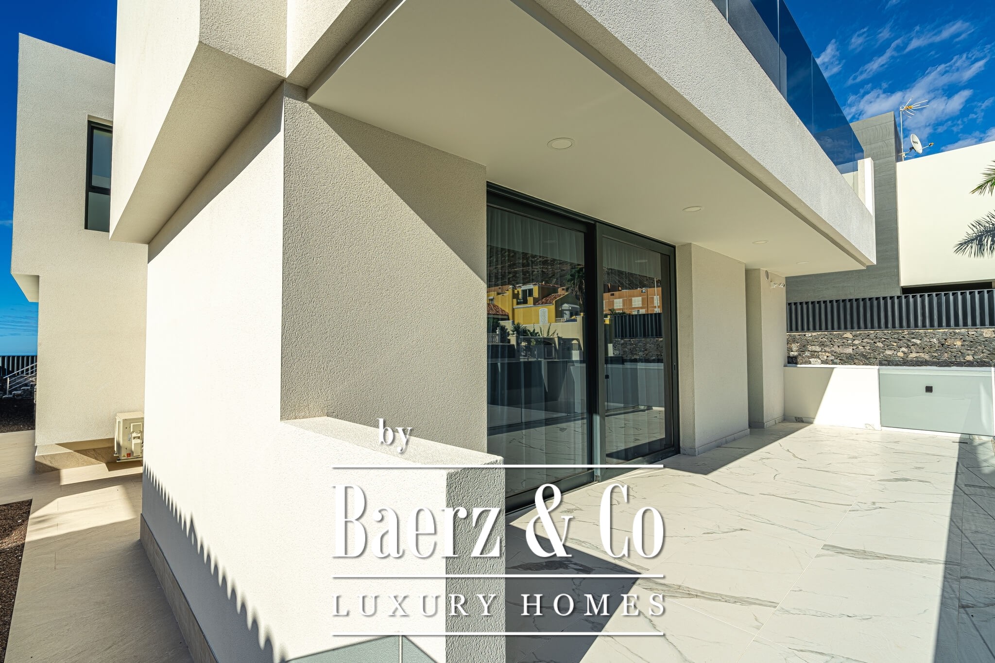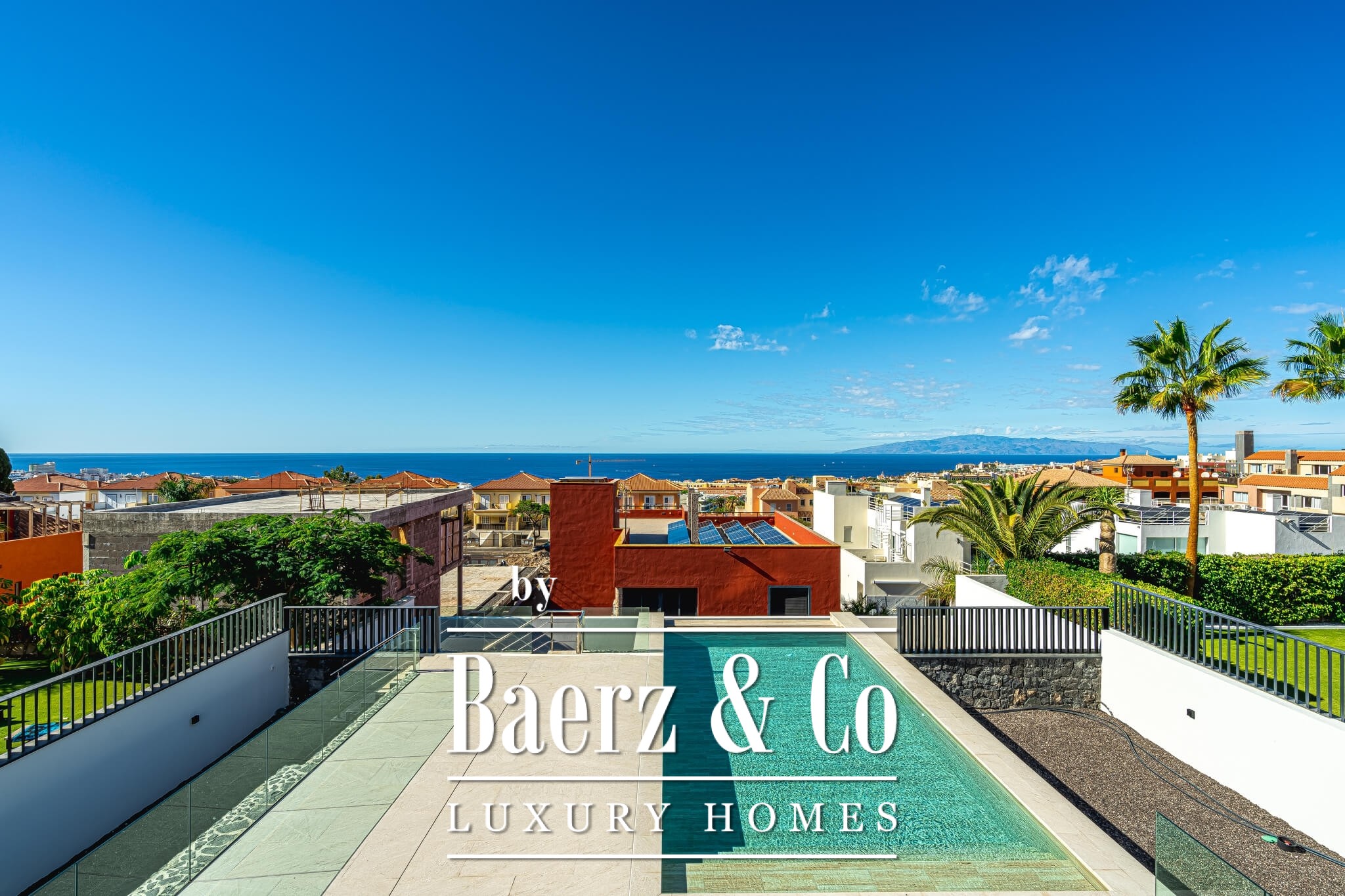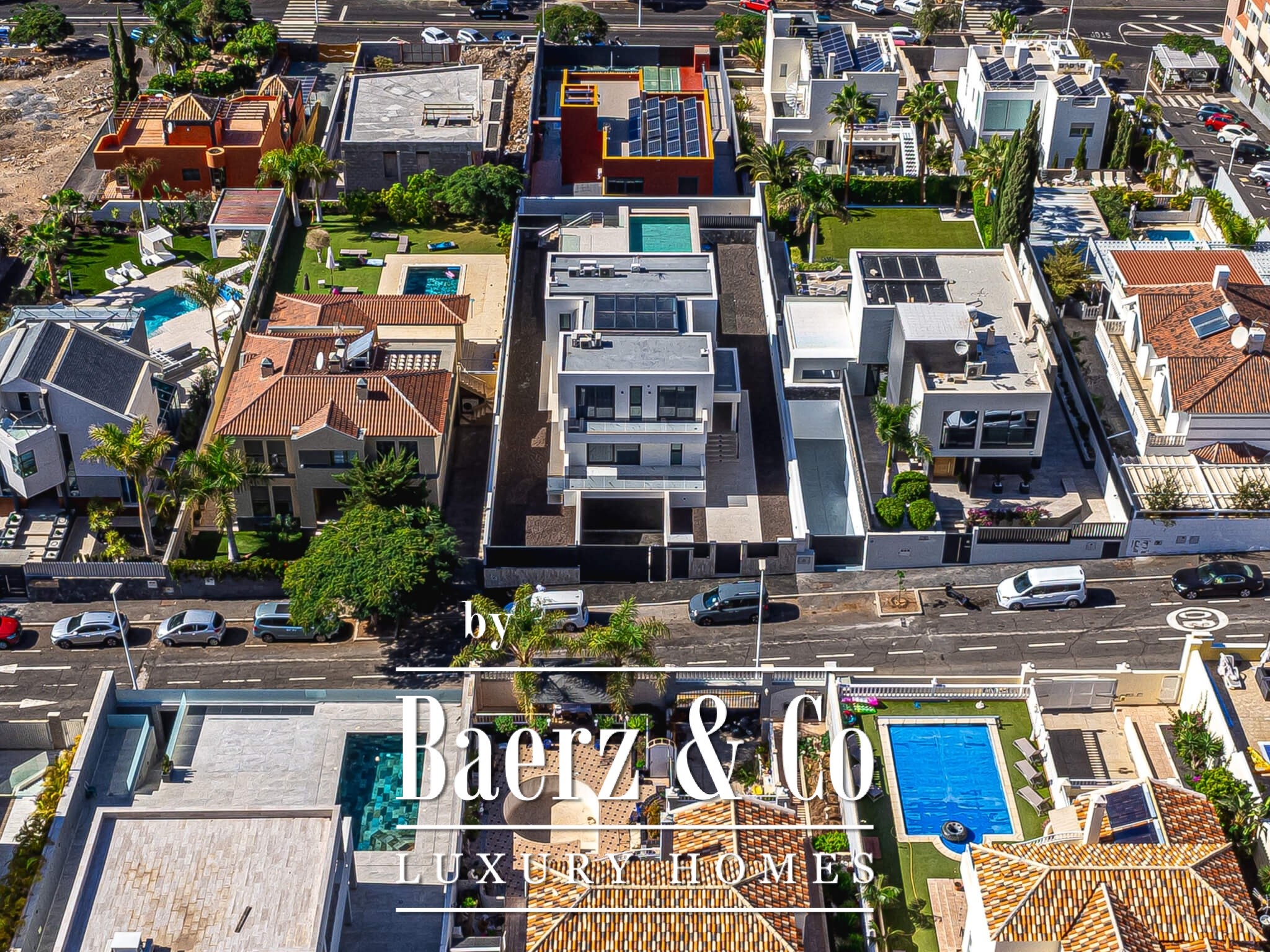 A heated swimming pool becomes the centrepiece for leisure, while a private garage for two cars offers security and convenience. Set within an 825 m² plot, the property supports privacy and quiet rhythm. Carefully considered details, from spatial layout to the quality of finishes, underscore an aesthetic of refined simplicity. For those drawn to Costa Adeje, this villa presents an invitation to experience space, light, and understated luxury. Long tail variation: Costa Adeje luxury villa with heated pool.