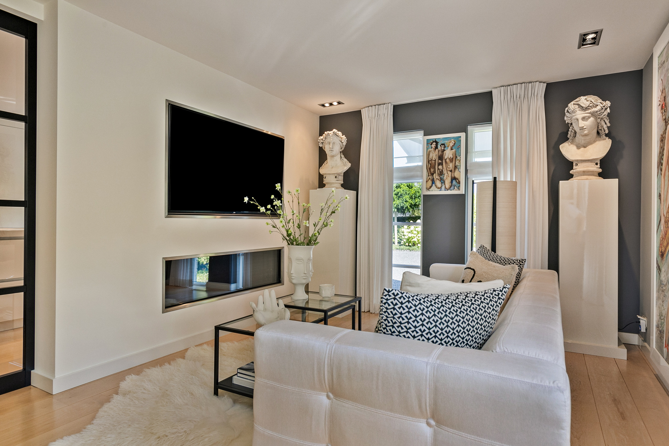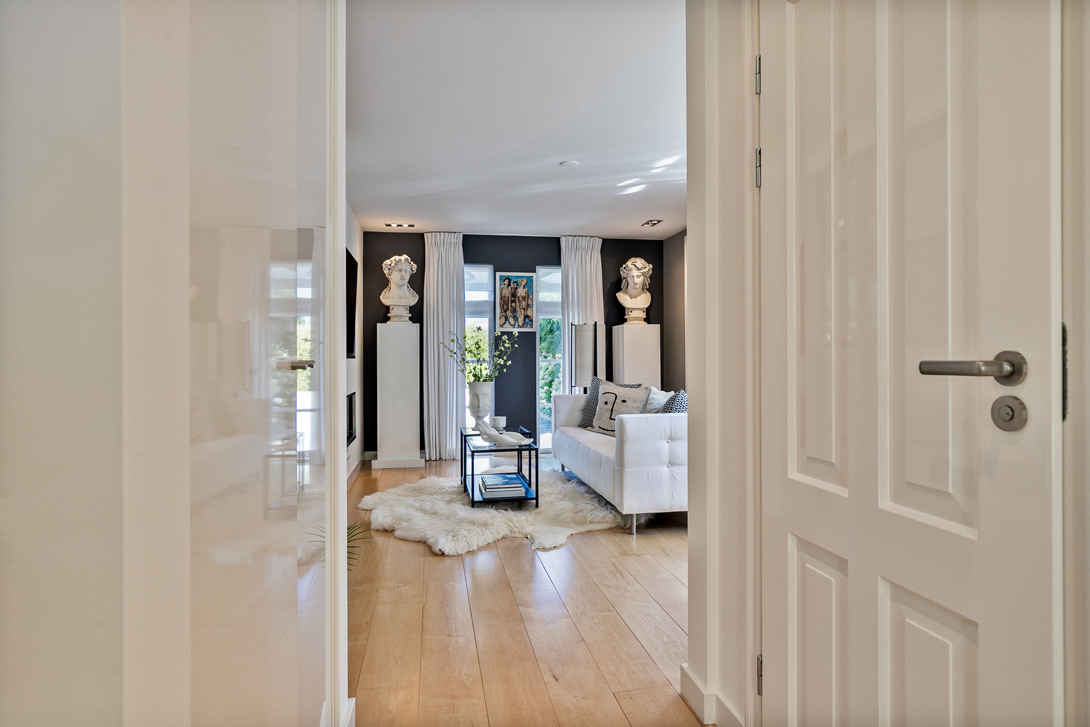 Just minutes after leaving Amsterdam’s A10 Ring Road, the electric gate opens to reveal an impressive driveway with generous parking on-site and under the carport. Parking is, of course, also available in the heated double garage.