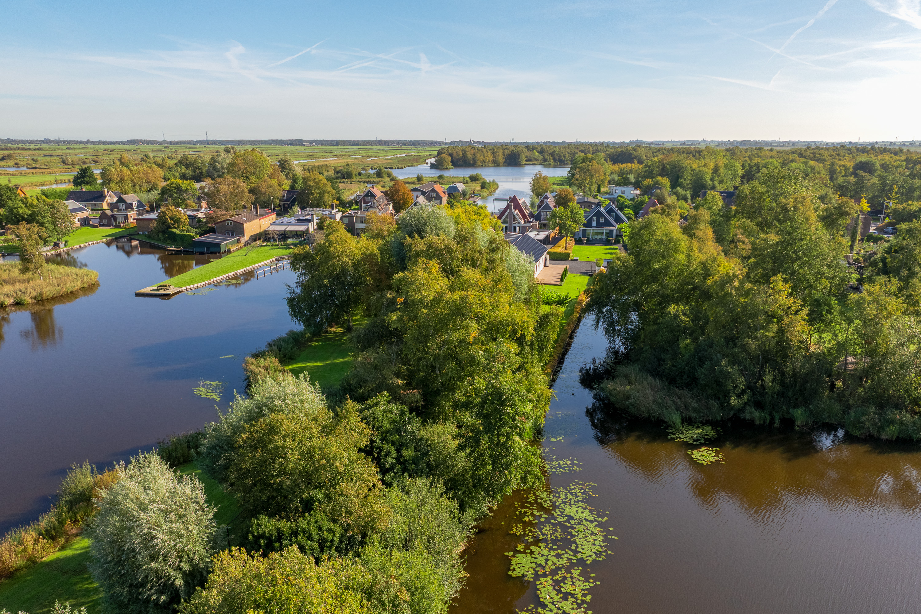 Welcome to Den Ilp — an idyllic ribbon village within the Municipality of Landsmeer, located just a few traffic-free minutes from the vibrant heart of Amsterdam. Nestled on the edge of the Het Twiske nature and recreational area lies a residence of unparalleled distinction: an exclusive detached villa with guesthouse, double garage, and direct waterway access to the canals of Amsterdam.