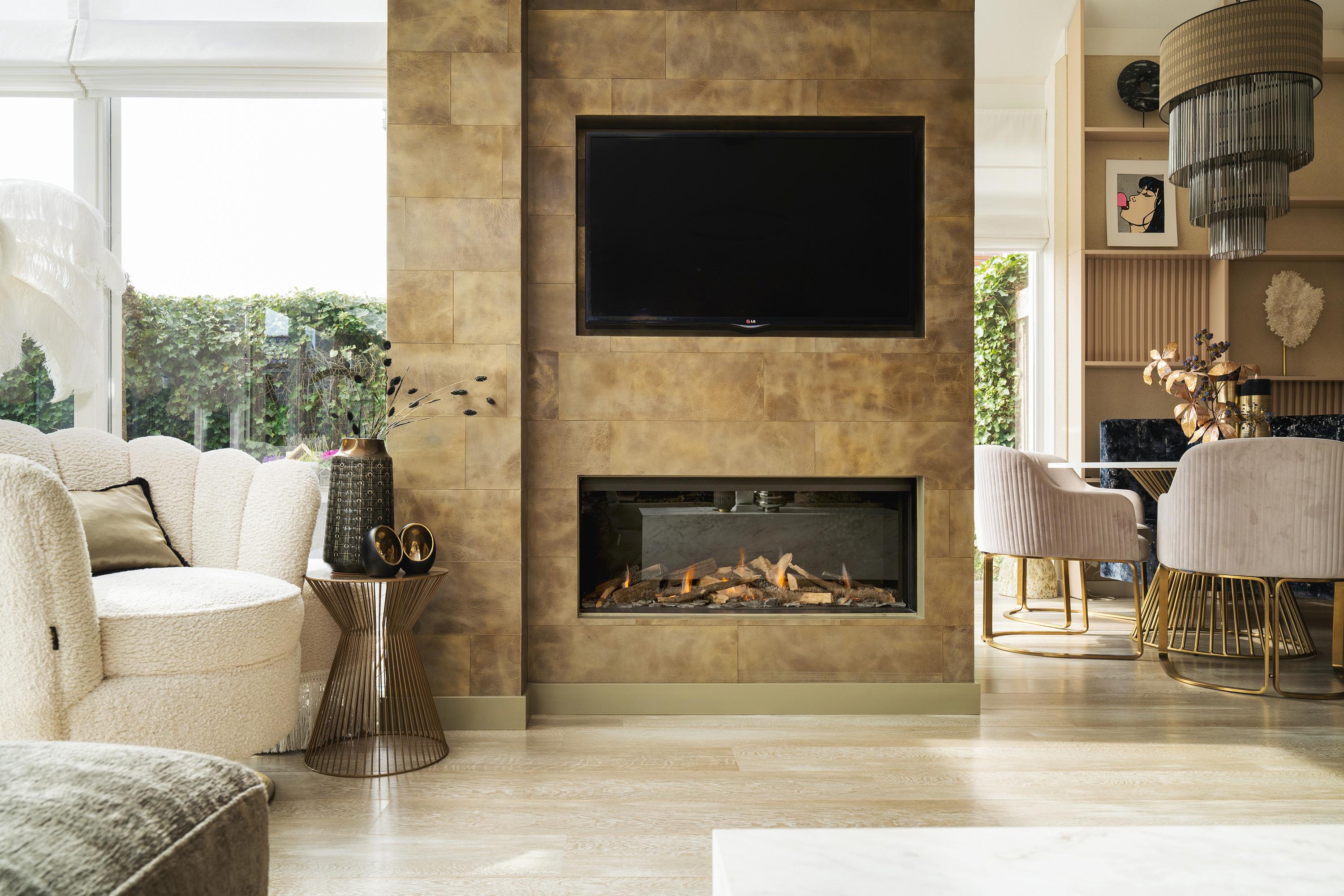 • Living room with atmospheric gas fireplace, adjacent conservatory