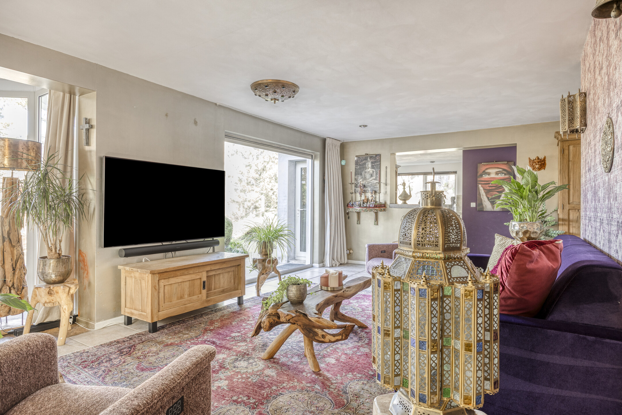 This charming home is set on a generous plot of no less than 1,640 m² and has a green energy label C. Thanks to the single-level living program, the property is suitable for a wide range of buyers. Inside, you will find a comfortable layout with a spacious living room and a bright conservatory offering beautiful views of the landscaped garden, adjoining a waterway with private mooring docks. In total, there are four bedrooms and the home benefits from extensive insulation and, among other features, air conditioning, contributing to a pleasant indoor climate in all seasons.
