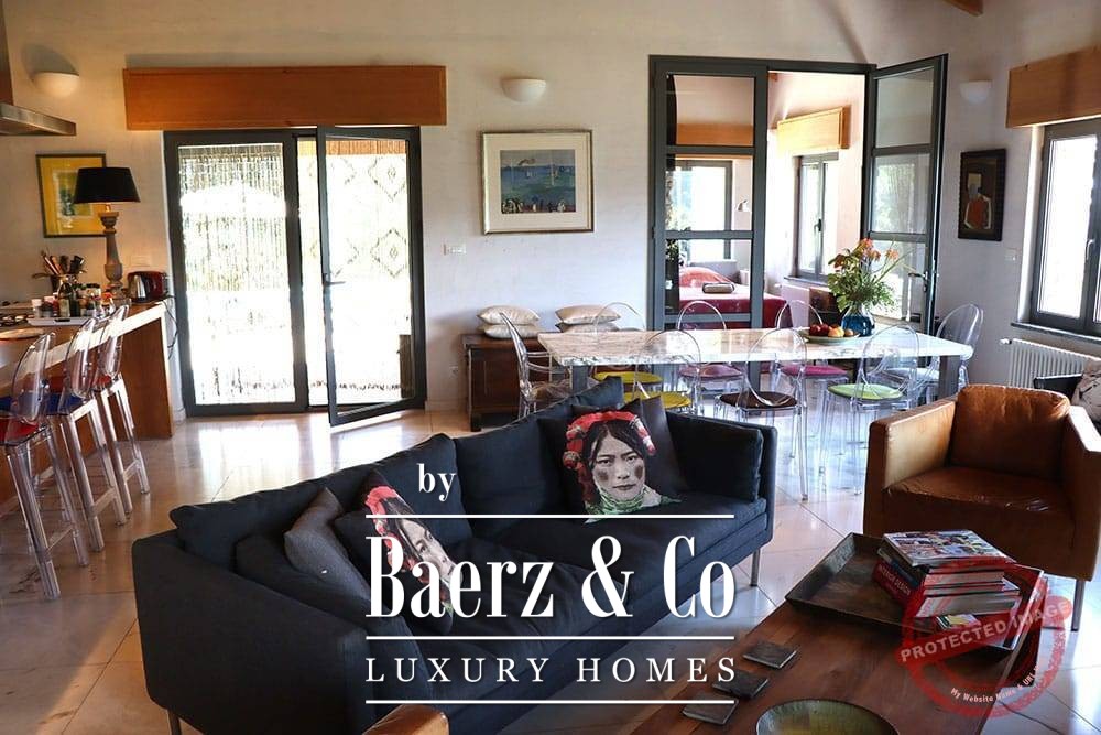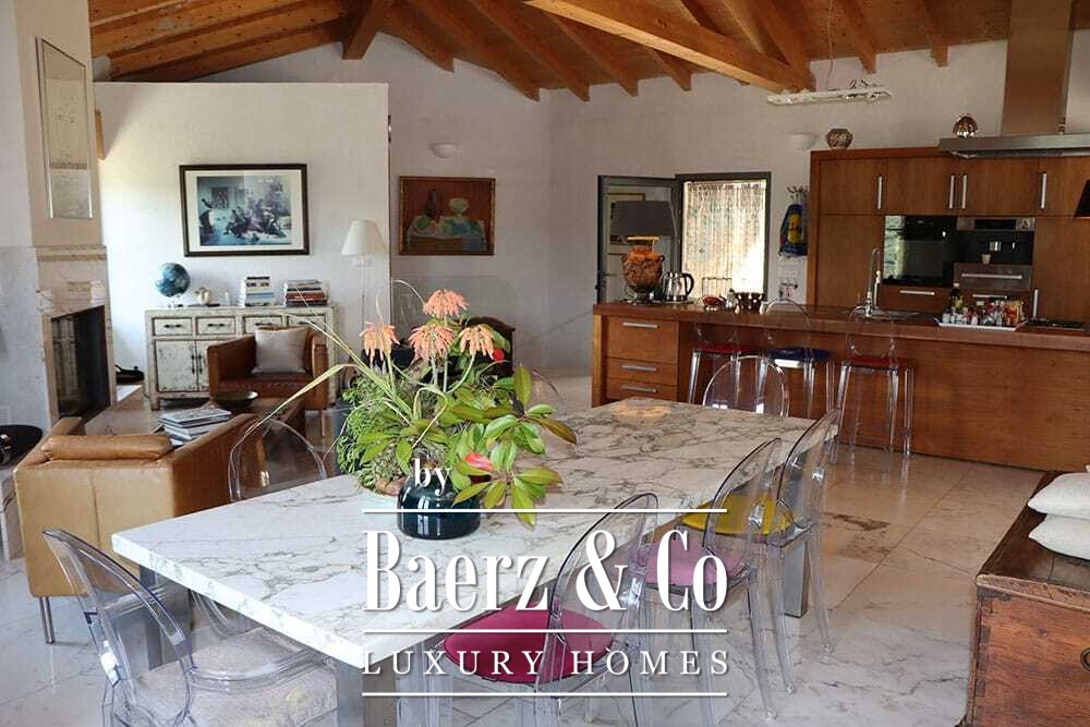 What also makes the villa so special are the many attractive terraces around and above the property, each with its own unique view and beautiful garden furniture such as granite tables and designer chairs. Right next to the French doors by the kitchen is a large pergola through which you can sit and eat outside in all seasons.