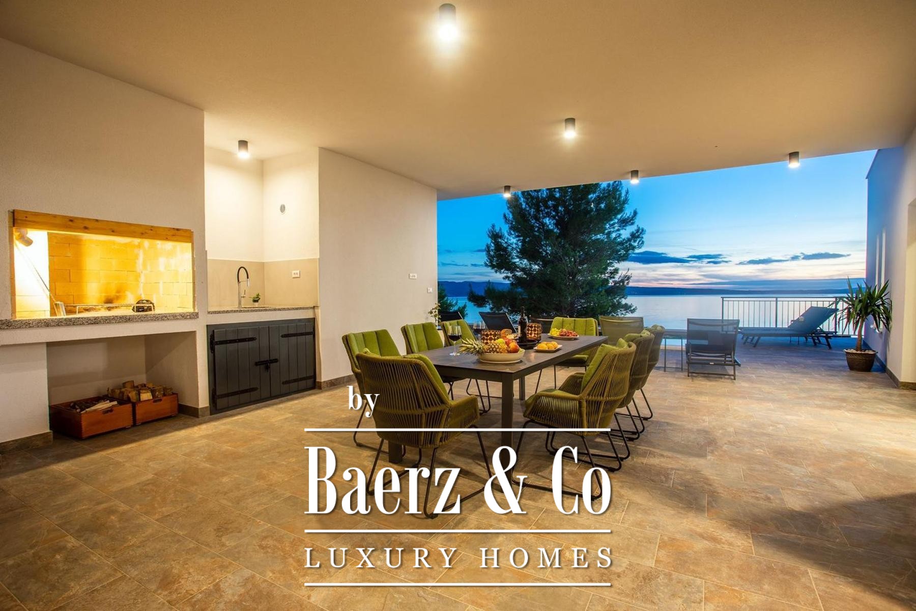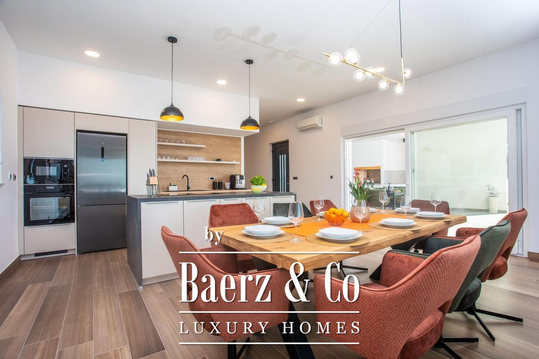 A modern luxury villa, newly built, located in Dugi Rat - Jesenice, just 300 meters in a straight line (1.4 km via a wide asphalt road) from the Adriatic Highway. Set on a plot of 814 m², this property stands out for its contemporary architecture, spectacular panoramic views of the sea and islands, and complete privacy - the villa is fully shielded from view and isolated from external noise, offering peace, comfort, and discretion.The total net usable area is 275 m², including 196 m² of enclosed living space, 110 m² of covered terraces, and an additional 40 m² sun deck by the pool.