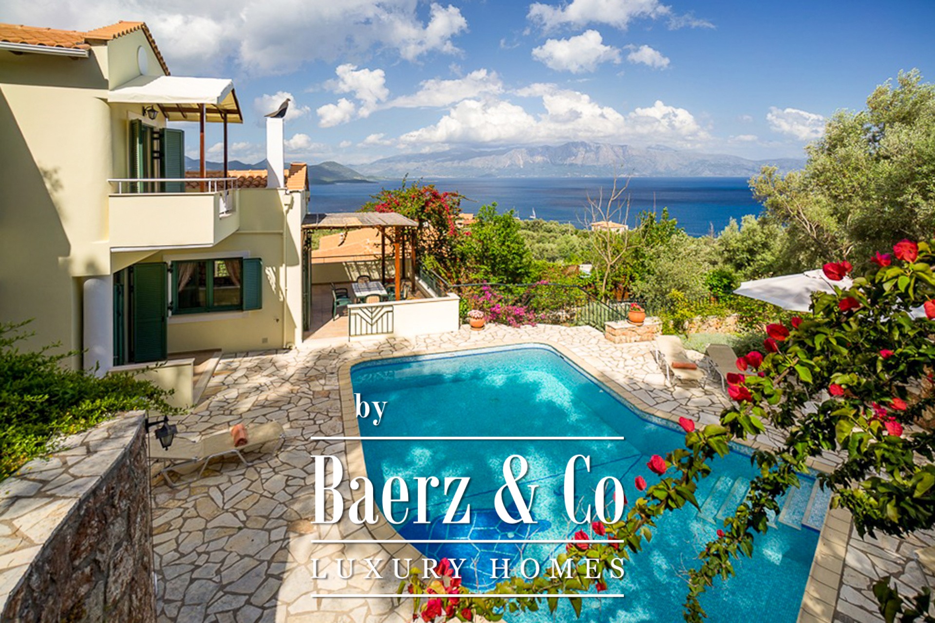 Villa Ellomeno with sea views represents a rare combination of privacy, design, and location. This 225 m² villa is set on a 4,000 m² plot within an olive grove just 300 meters from the sea on Lefkada's east coast. The property is positioned between Perigiali and Nikiana, offering sweeping sea vistas towards nearby islands and the mainland, with Passa Beach within walking distance and convenient access to both Nikiana and Nidri.