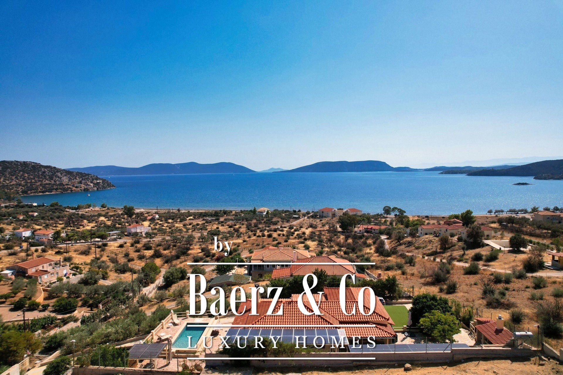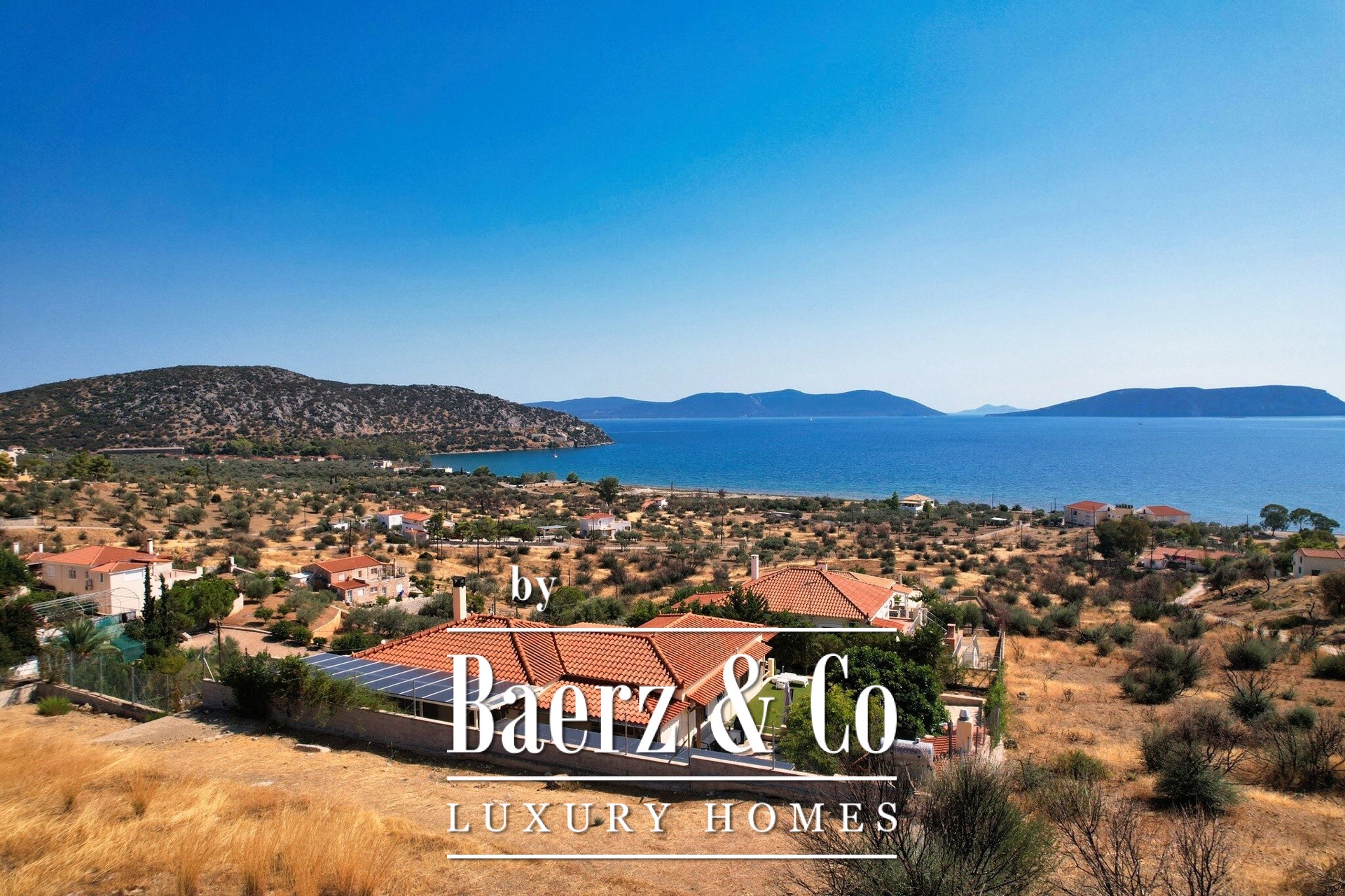 Tranquility, luxury and unobstructed sea views are the elements that characterize this unique residence, which is located just 500 meters from the nearest beach in the area, in a quiet and well-kept neighborhood characterized mainly by luxurious holiday homes.