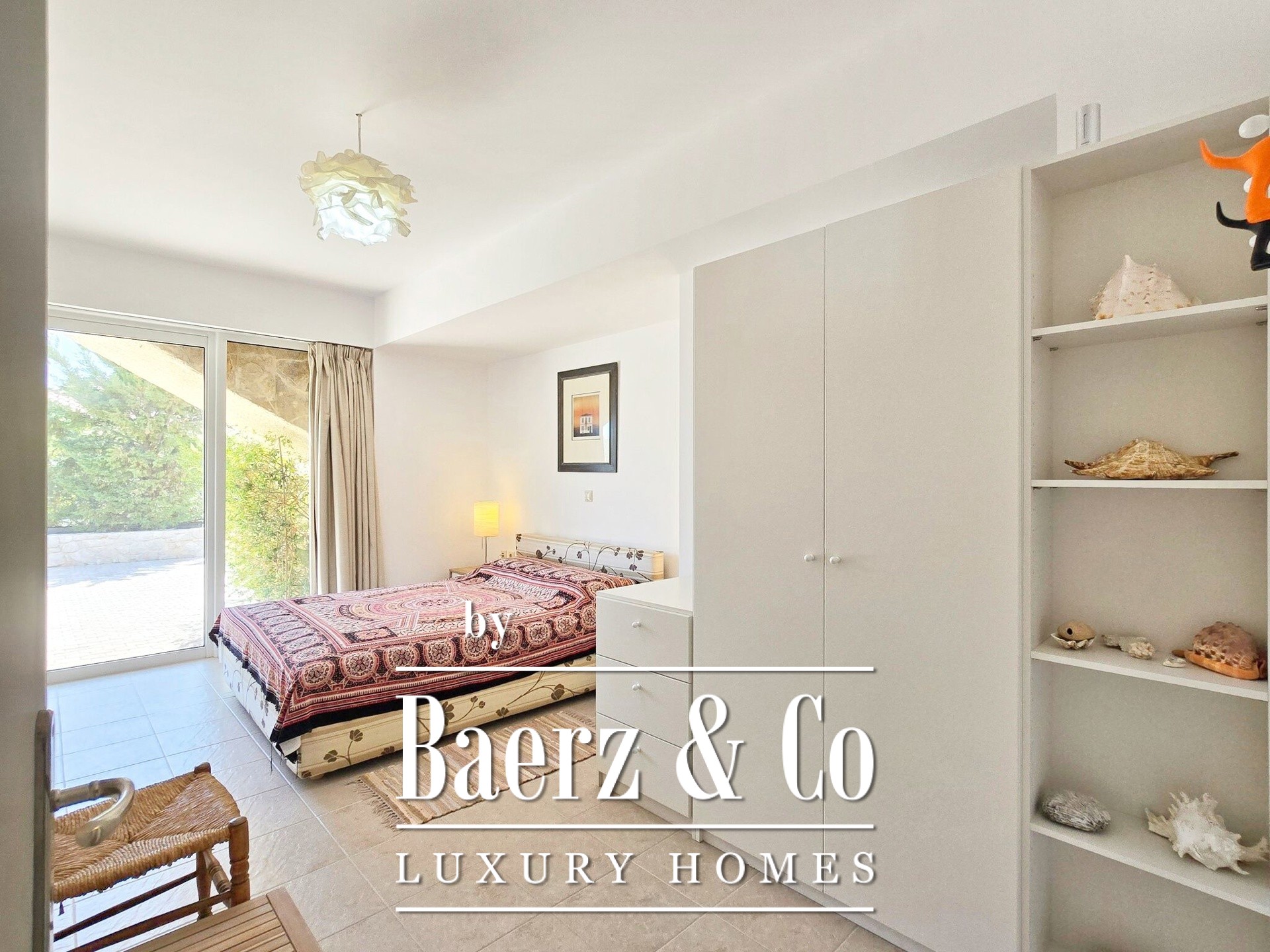 The residence, with a total area of 296 sq m. extends over 2 levels, is built within a beautifully landscaped and fully fenced plot of 2,000 sq m.