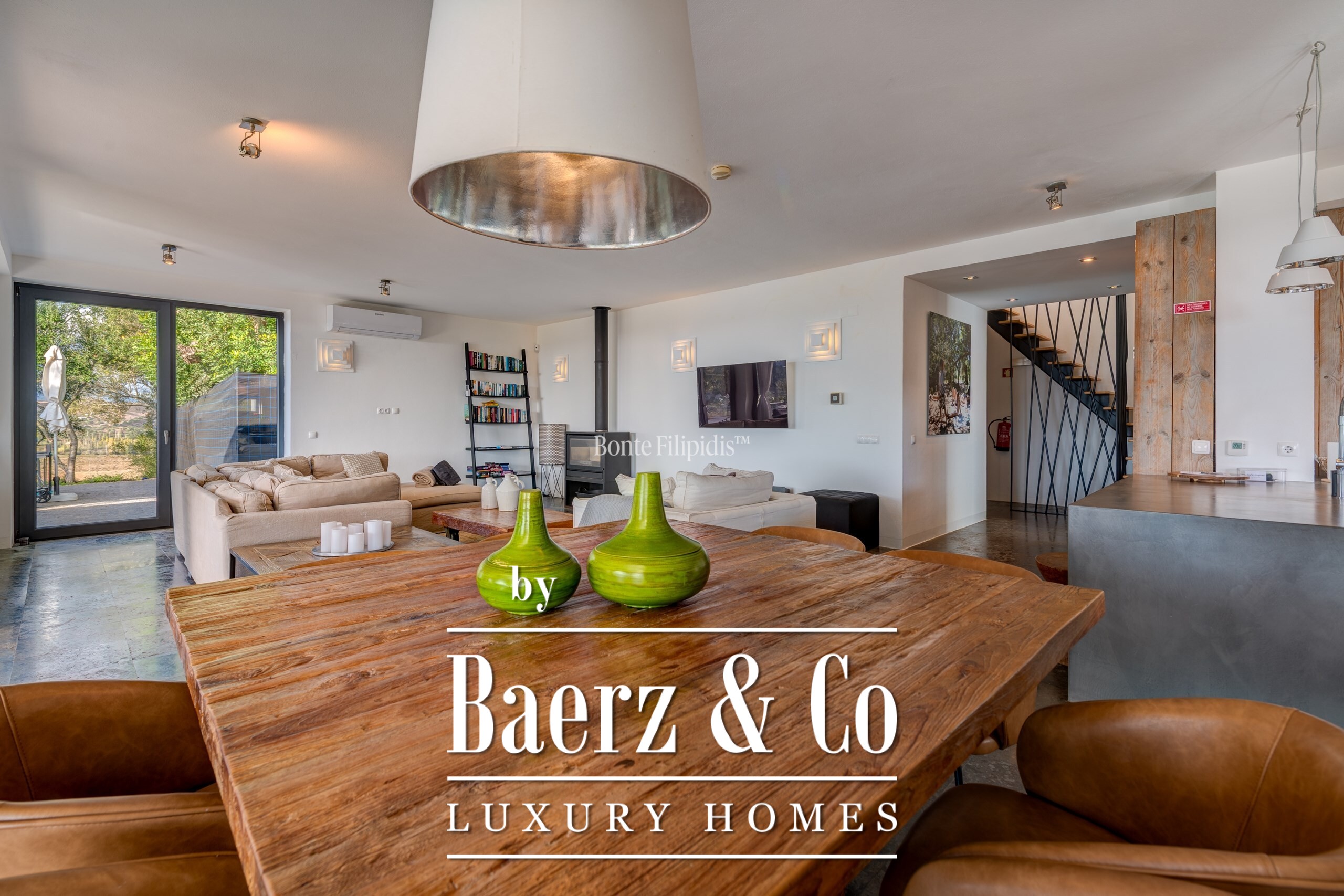 Set on a 2,440 m² plot, mature olive groves and vineyards frame landscaped gardens, while a private pool and jacuzzi for six evoke privacy and ease. Energy efficiency defines the experience, with a 48-panel photovoltaic system, underfloor heating, and a Salamander fireplace offering year-round comfort. Indoors and out, fully equipped kitchens anticipate both quiet mornings and convivial gatherings.