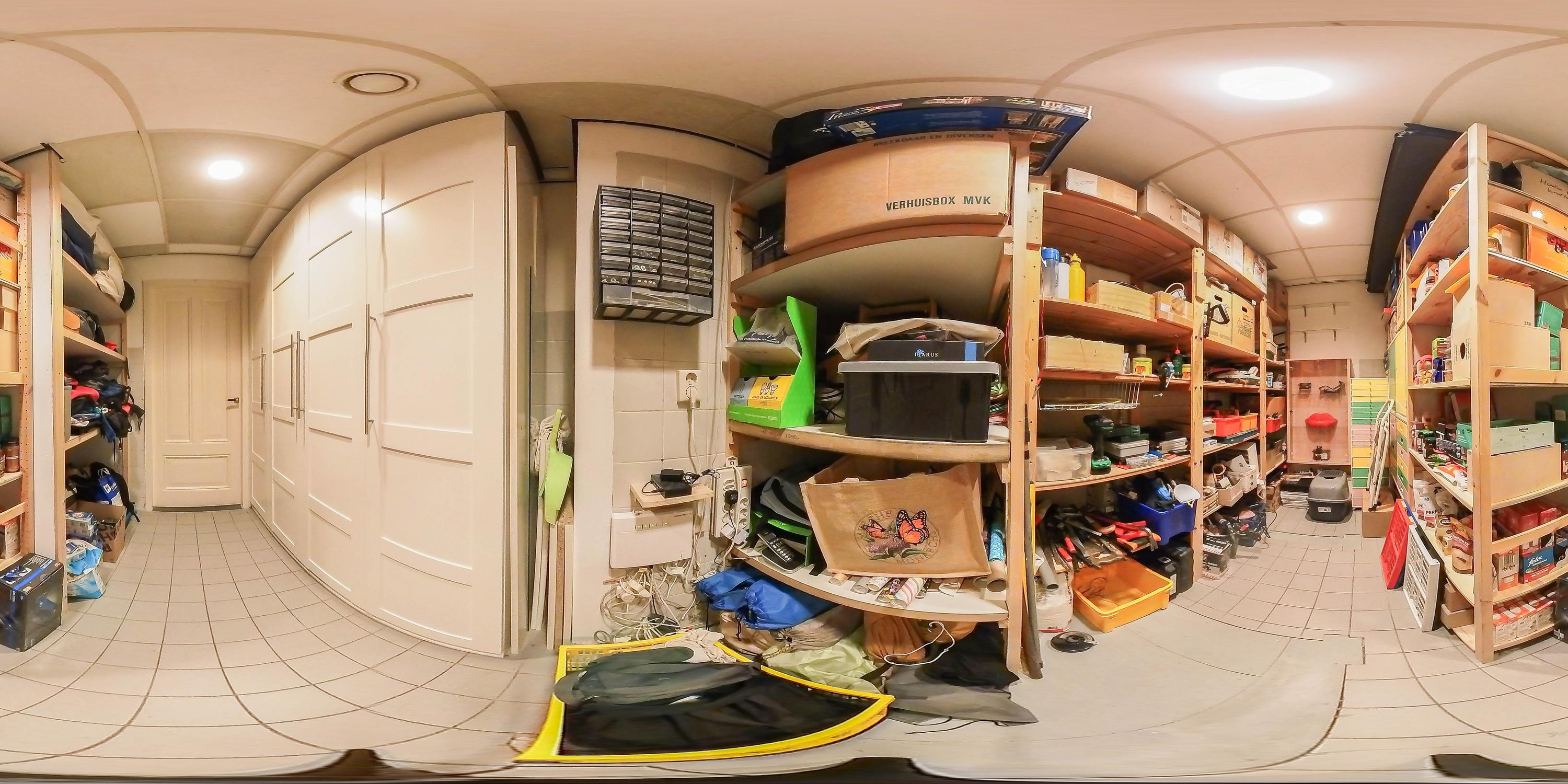 Rear bedroom with new rear façade and door to terrace with stunning view over the historic buildings of Gouda’s city center, bedroom with built-in wardrobe, air conditioning, boiler room, and front bedroom with view of the museum and St. John’s Church