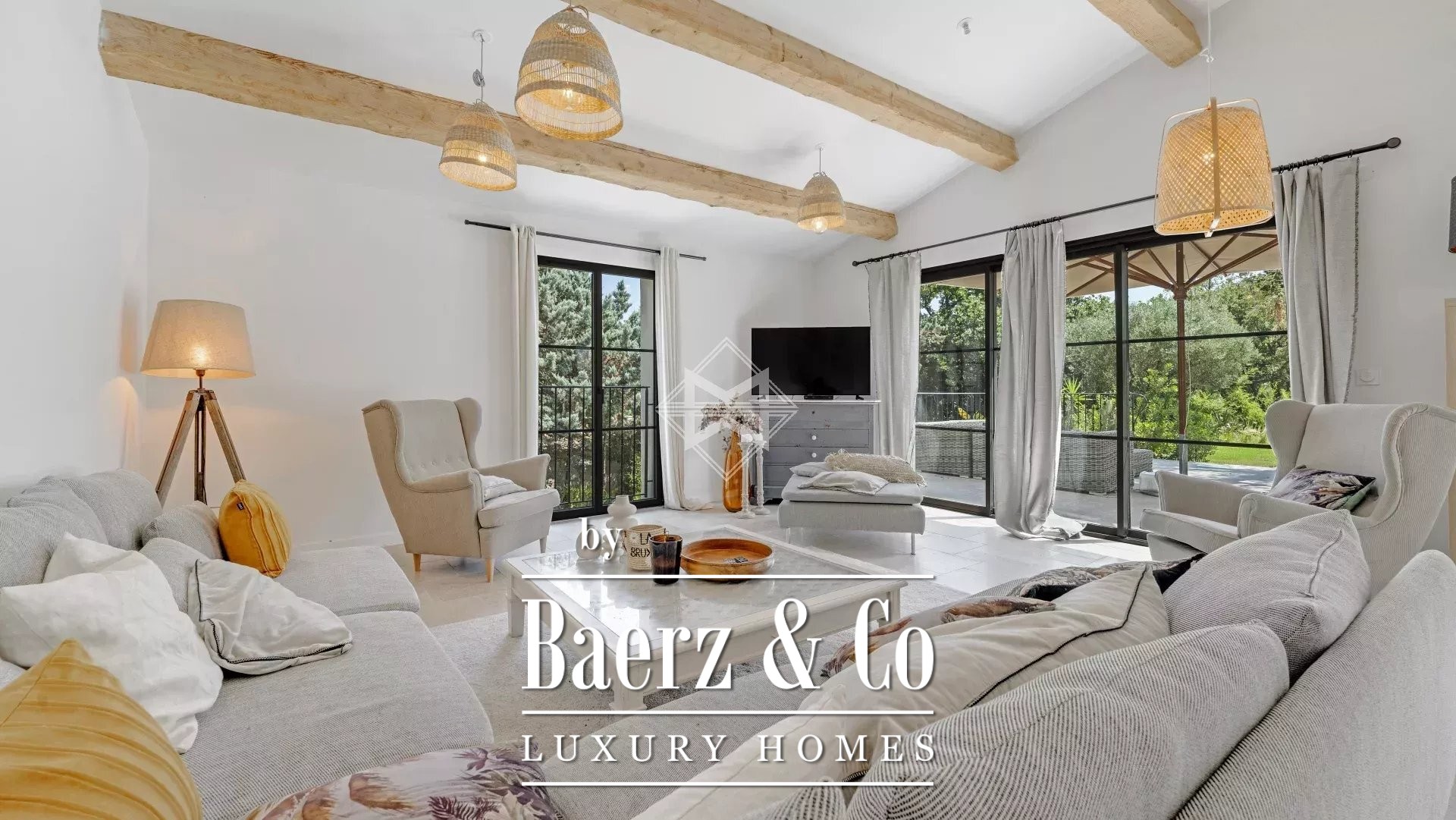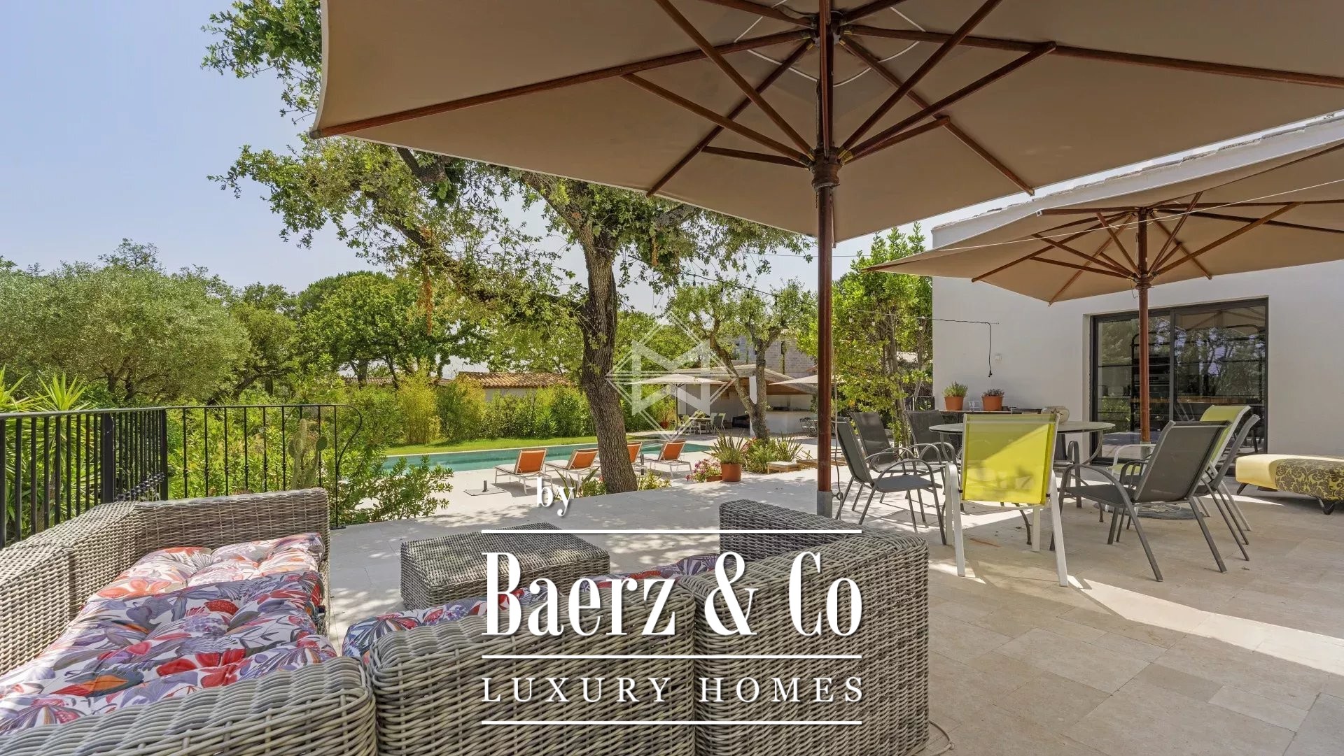 Nestled within a private and secure estate in Grimaud, just a 6-minute drive from the beaches, this stunning villa offers a dream setting for a holiday on the French Riviera. Designed to comfortably accommodate up to 12 guests, the house features 6 spacious bedrooms, each with its own en-suite bathroom, ensuring both comfort and privacy for everyone. The living areas include a cosy lounge dedicated to reading and relaxation, as well as a large, light-filled living room with a dining area and open-plan kitchen — ideal for sharing special moments with family or friends.