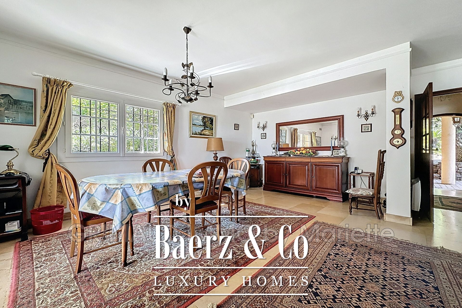 sharing a shower room, along with a suite featuring its own shower room. Additionally, there are two independent bedrooms sharing a common shower room, perfect for hosting guests in full privacy, plus a self-contained studio with a shower room. Outside, enjoy a beautiful pool, a garage, and several relaxation areas offering an unbeatable view of the Mediterranean. Refreshment work will be needed to update the house to modern standards.