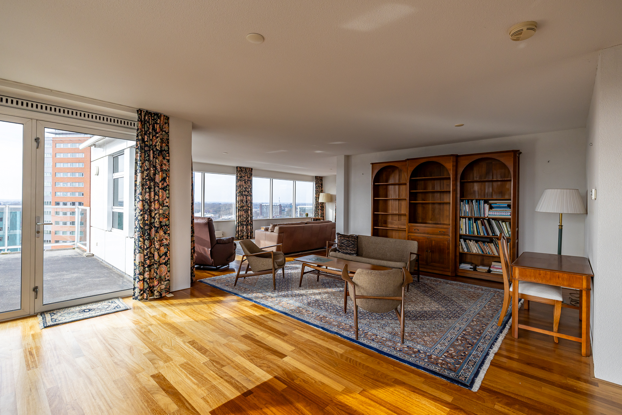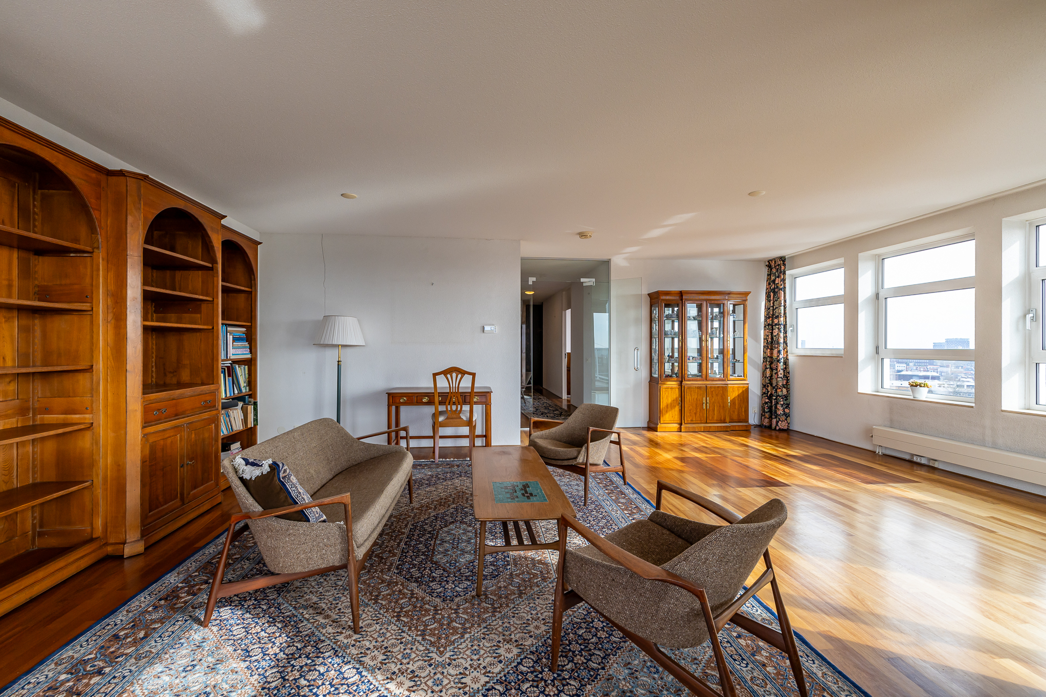 Penthouse Groningen is a rare residence offering refined urban living at the edge of the city’s historic heart. This exclusive penthouse provides 263 m² of living space, where floor-to-ceiling views extend over the Verbindingskanaal, the Zuiderhaven, and the tree-lined Praediniussingel. The property’s distinctive design, achieved by uniting two penthouses, creates a spacious layout with four bedrooms and two bathrooms, including features such as a whirlpool, sauna, and steam cabin.