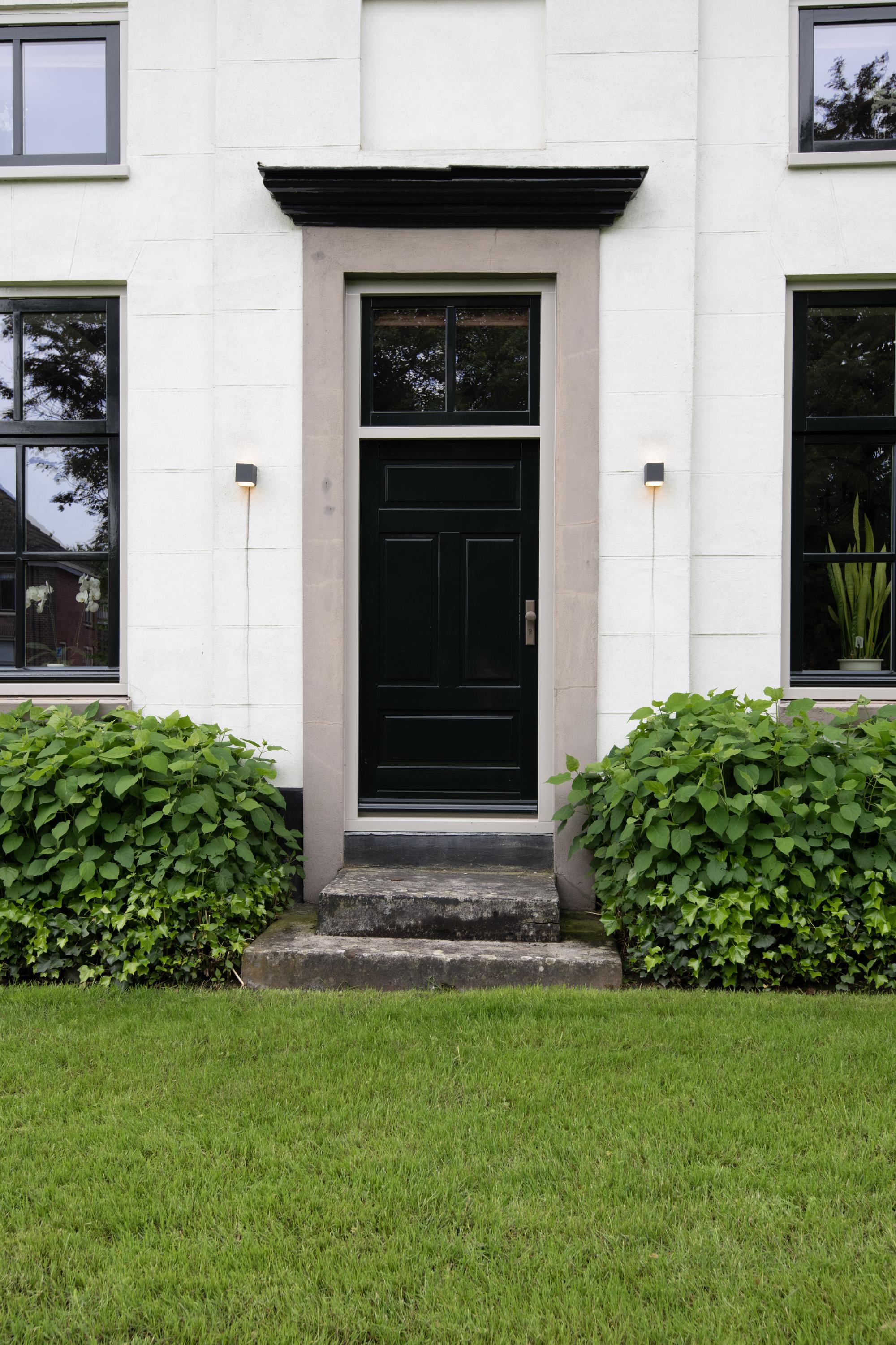 The low maintenance garden is landscaped with large terraces on the south and east, a large lawn with mature (fruit) trees, hedges and flowering ground cover.