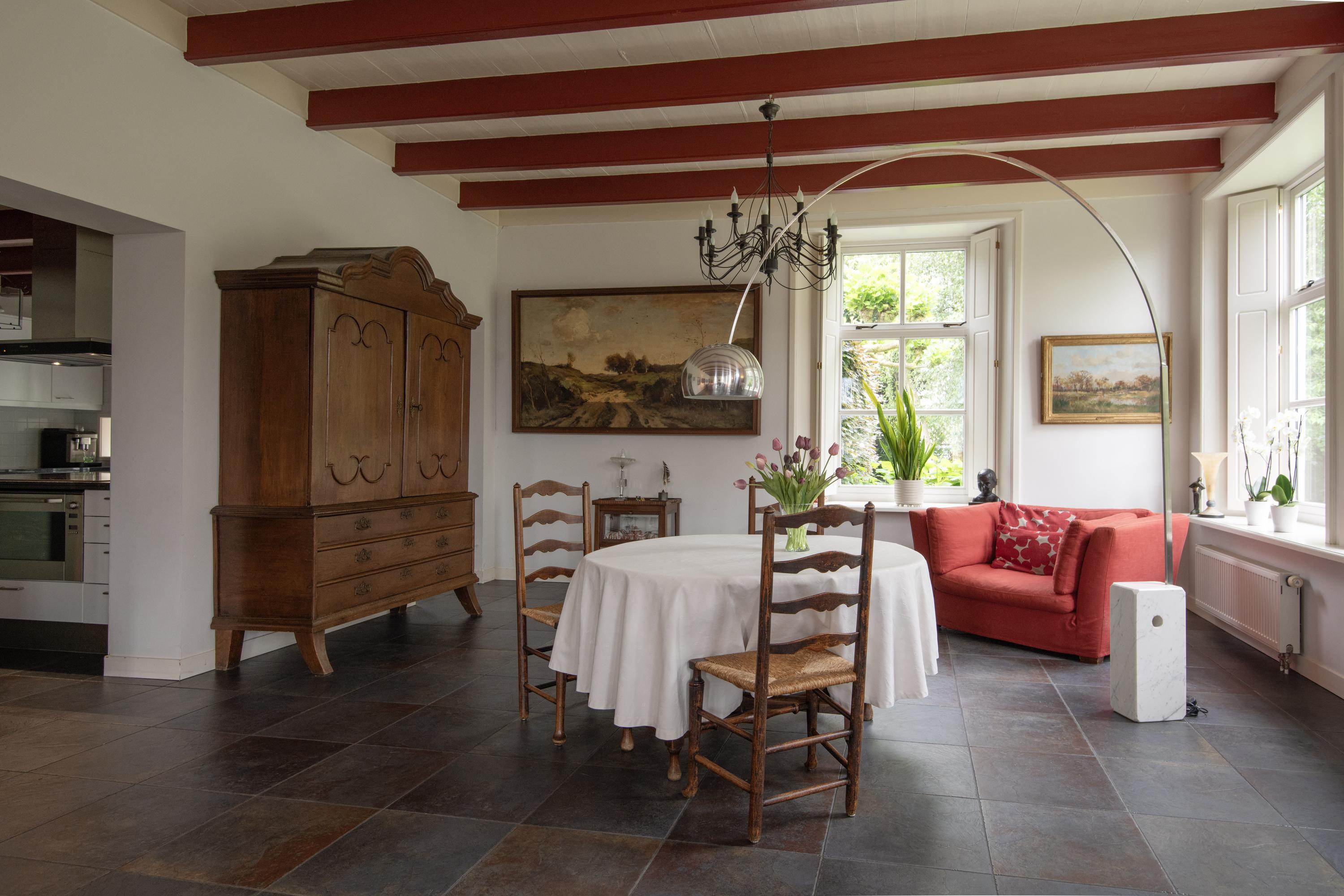 Accessibility is excellent, as Utrecht can be reached in 30 minutes and Eindhoven Airport in 40 minutes. The farmhouse is not only well maintained, but above all comfortable. All hardwood windows have HR glazing, walls and floors are insulated and on the insulated roof are no less than 46 solar panels. Together with the Nefit heat pump and 2 high-efficiency boilers, in combination with underfloor heating on the entire first floor, this ensures sustainable comfort. The farmhouse also guarantees safe living and is equipped with burglar-proof locks and hinges and an extensive alarm system with alarm notification.