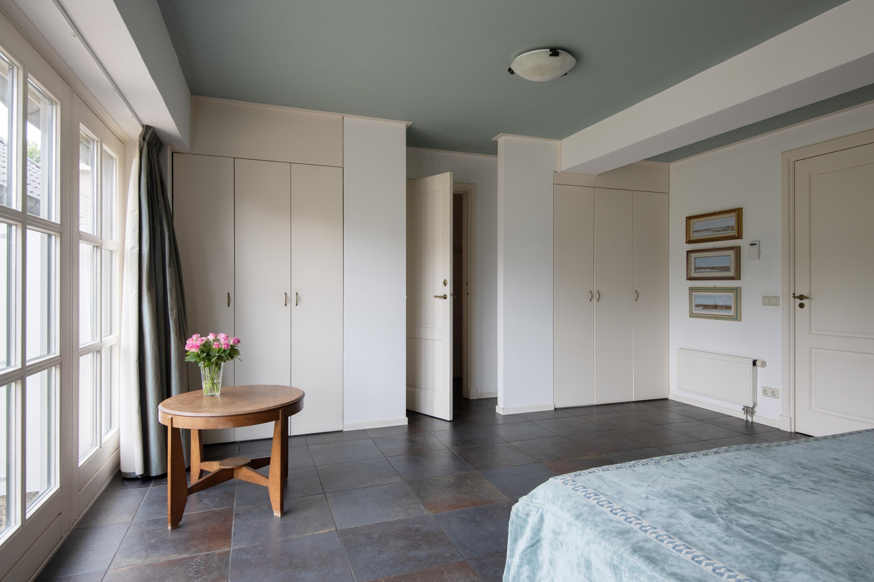 From the central corridor in the back house a staircase leads to the first floor. Under the insulated roof are two more beautiful bedrooms. Through three skylights there is a view of the garden and surroundings. Both rooms are wonderfully bright and have plenty of storage space.