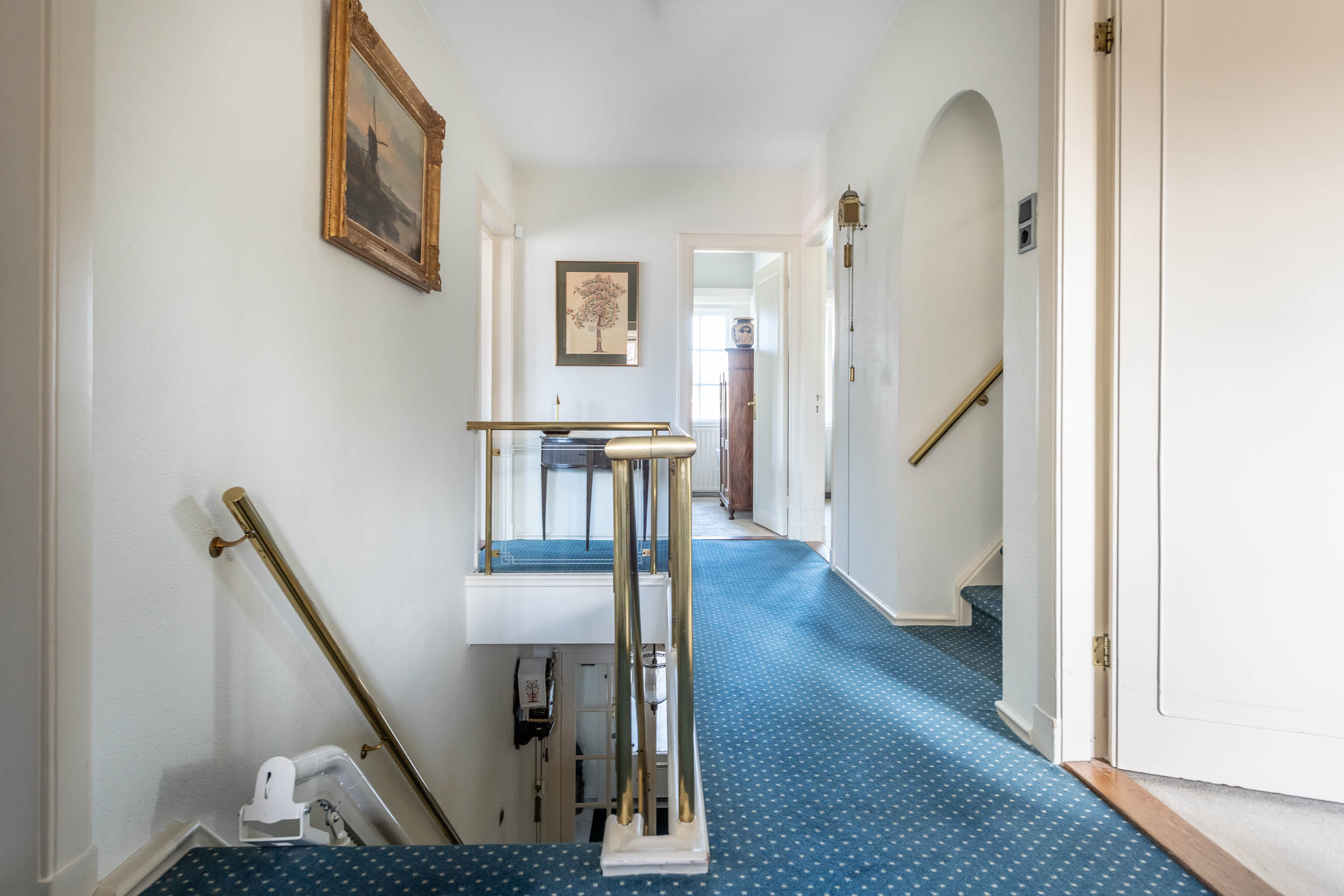 A private drive introduces the property, while the beautifully tended west-facing back garden—with sun-drenched terraces—ensures privacy and tranquility. Inside, original wenge wood flooring, a stone chimney with open fireplace, and authentic 1930s details combine with abundant natural light and generous proportions. The large, integrated studio of 17.2m² offers flexibility for work or creative pursuits, accessed through French doors from the front garden.