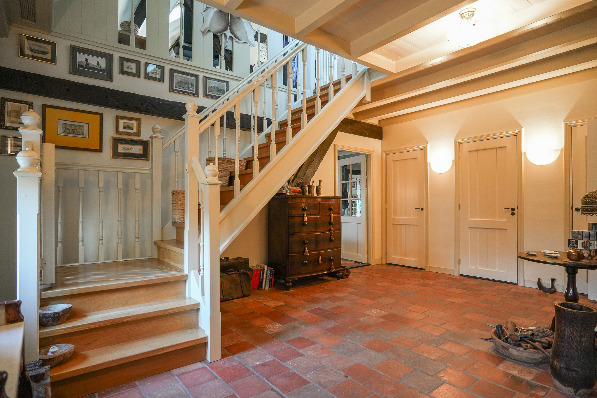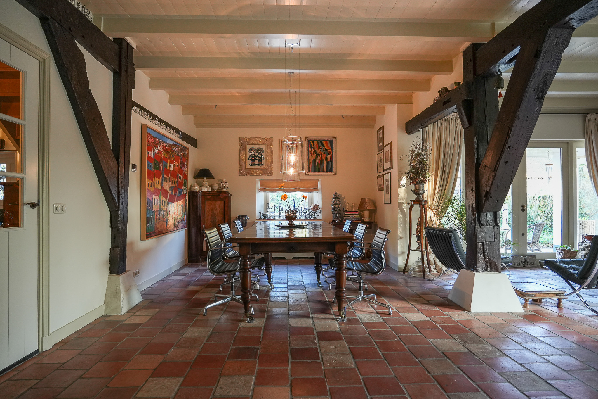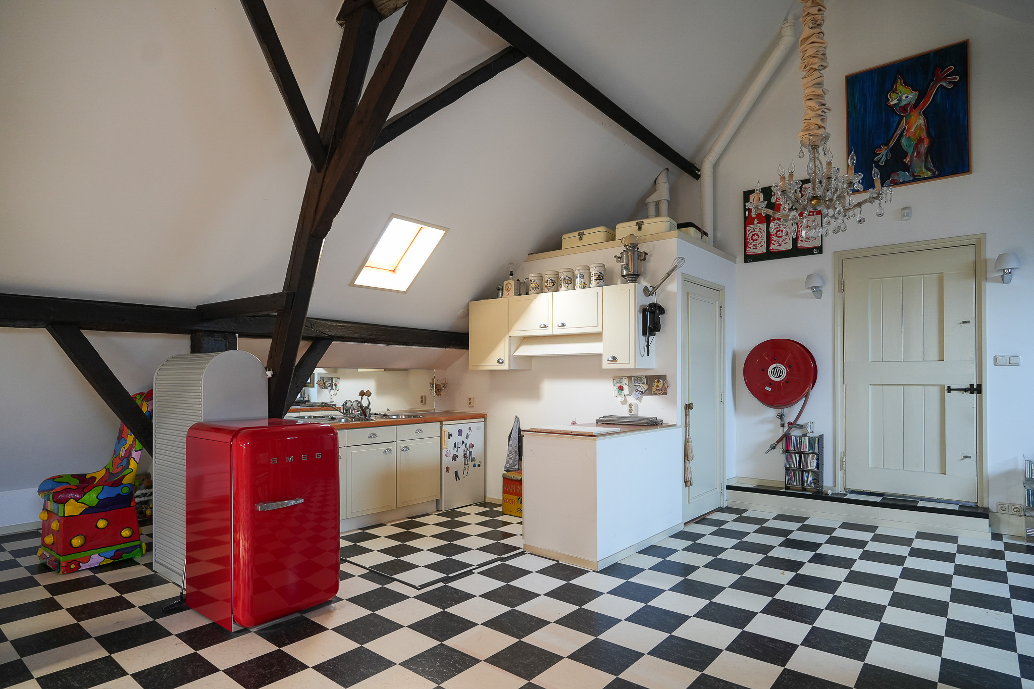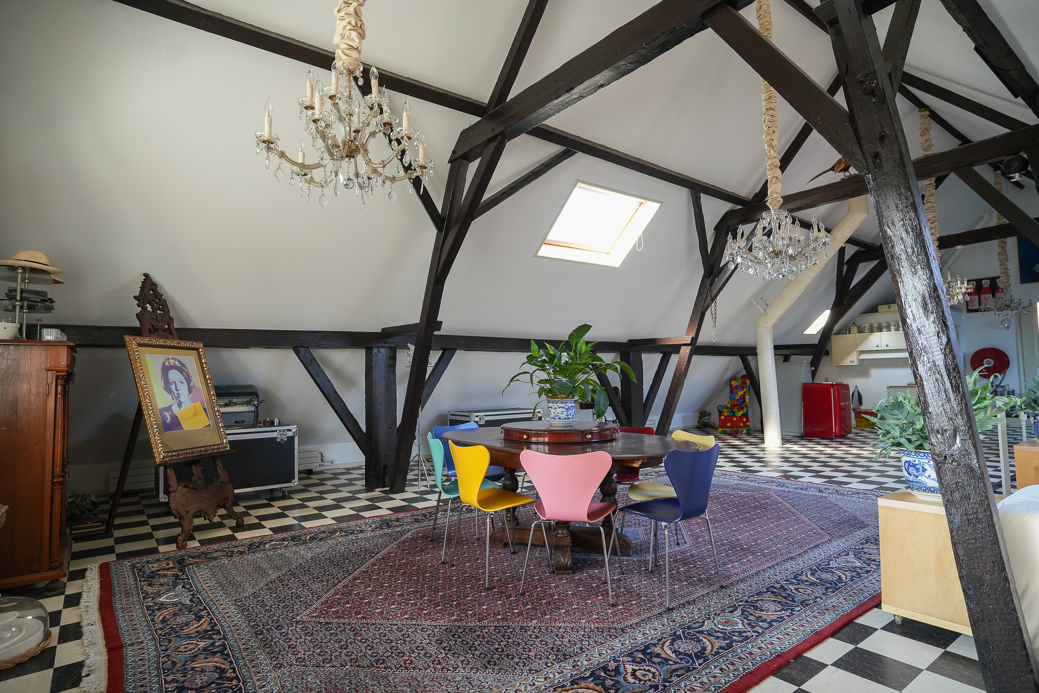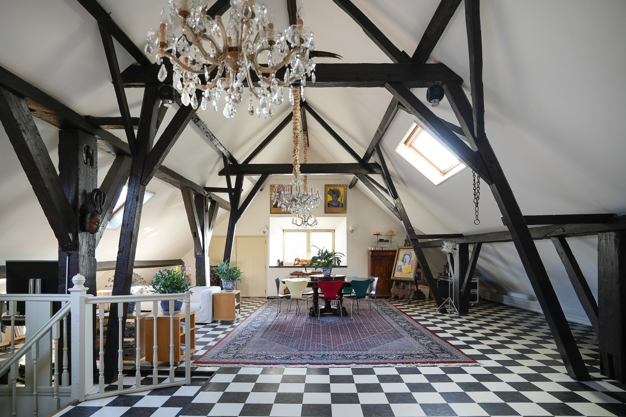 The upper floor above the rear wing surprises with its impressive 4.5-metre ridge height and the open character of the former hayloft. The current owners have used this area as a meeting room, with the pantry proving highly practical. This level can easily be reconfigured to create additional bedrooms and a bathroom; an optional floor plan is available to illustrate the possibilities. Creating a luxurious private suite is also conceivable.