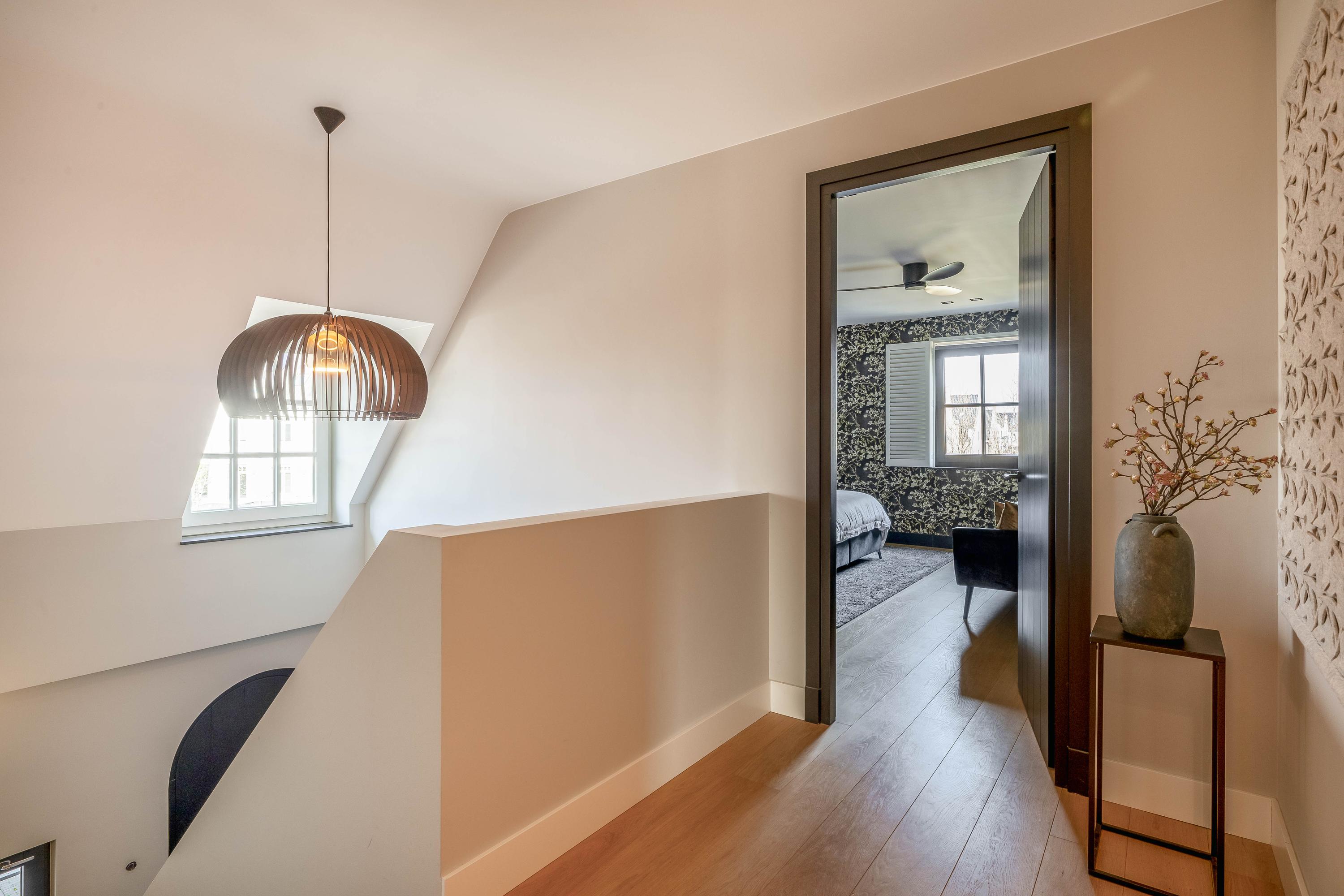 Through the entrance, you reach a hall that provides access to a storage cupboard beneath the staircase, the fuse box, a wardrobe cupboard, and a staircase leading to the first floor. The expansive living room, complete with a gas fireplace and large windows, forms the heart of the ground floor. From the living room, garden doors lead directly to the enchanting rear garden, where the terrace offers a perfect seamless connection between indoor and outdoor living. The spacious kitchen/dining room, equipped with a corner layout, an island, and high-end built-in appliances (such as a Quooker, dishwasher, exclusive cooking unit, oven, and extractor hood), allows you to enjoy culinary experiences at the highest level. A side entrance with a generous vestibule features a toilet, storage area, and practical built-in cabinets, with direct access to the garden via a service door.