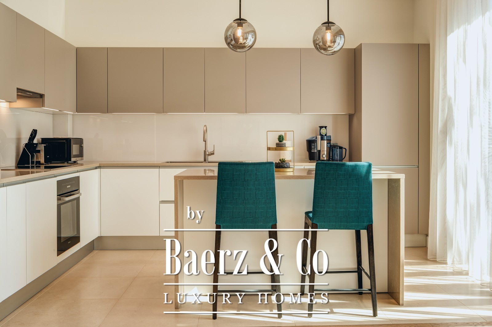 The living space is arranged with care, comprising a generous hallway, living room with dedicated kitchen and dining area, four bedrooms, three bathrooms, a guest toilet, and three terraces that open to views of the sea, marina, and mountains beyond. Fully furnished and thoughtfully detailed, the apartment is ready for immediate move-in. Residents benefit from dedicated maintenance services and the use of the complex’s pools, beaches, and sports facilities, providing both ease of living and leisure.