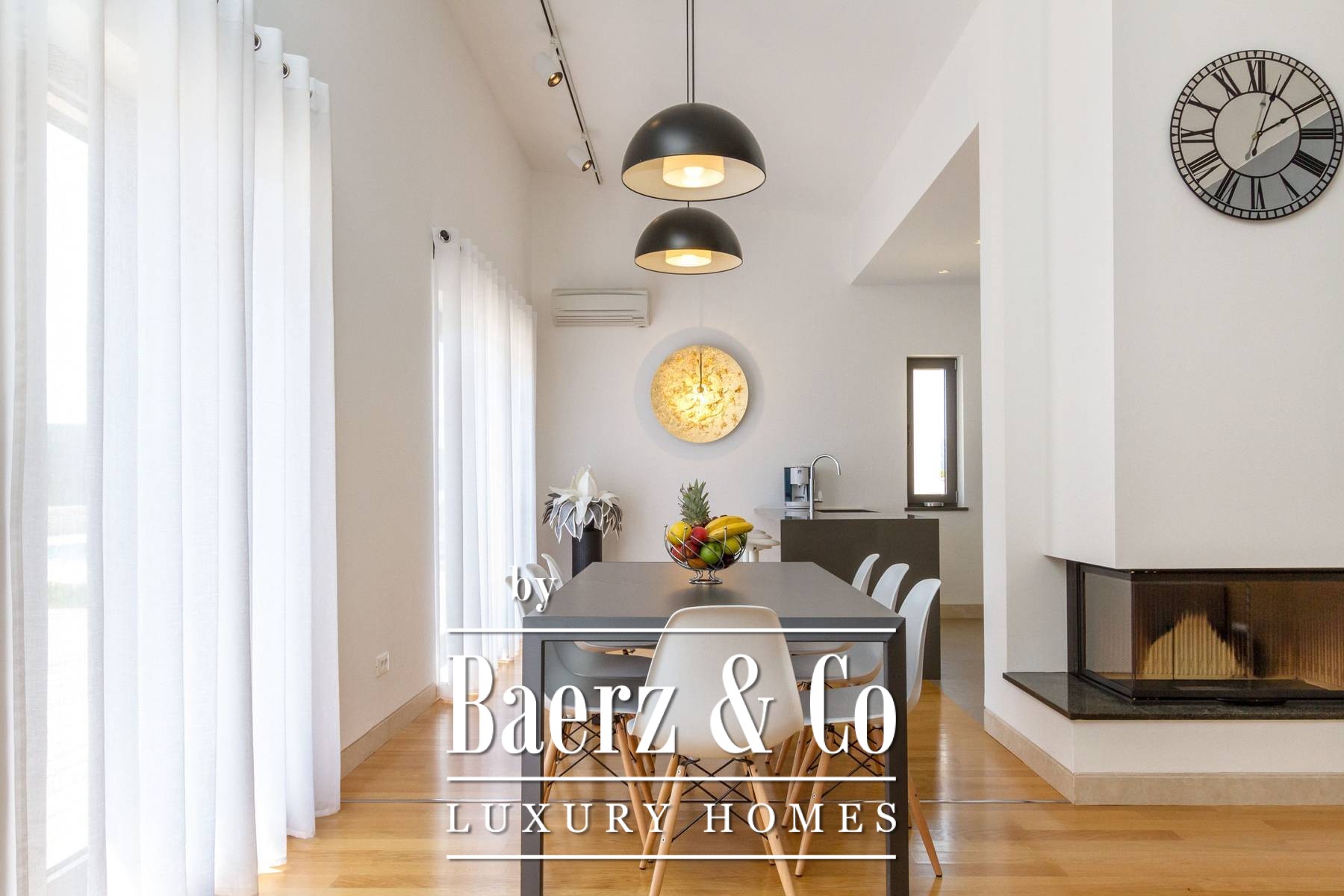 and three bedrooms, one of which has an attached bathroom. In the basement there is another room with a bathroom, a wine cellar, and a spa area (hot tub, massage table, gym and sauna).The outdoor space is refined with a barbecue, a lighted tennis court, a bowling alley and a detached garden house with a studio apartment. The facility is equipped with a high-end electronic locking system and a video surveillance system and an alarm for additional security.It is less than two kilometers from the beautiful Pokrivenik bay.