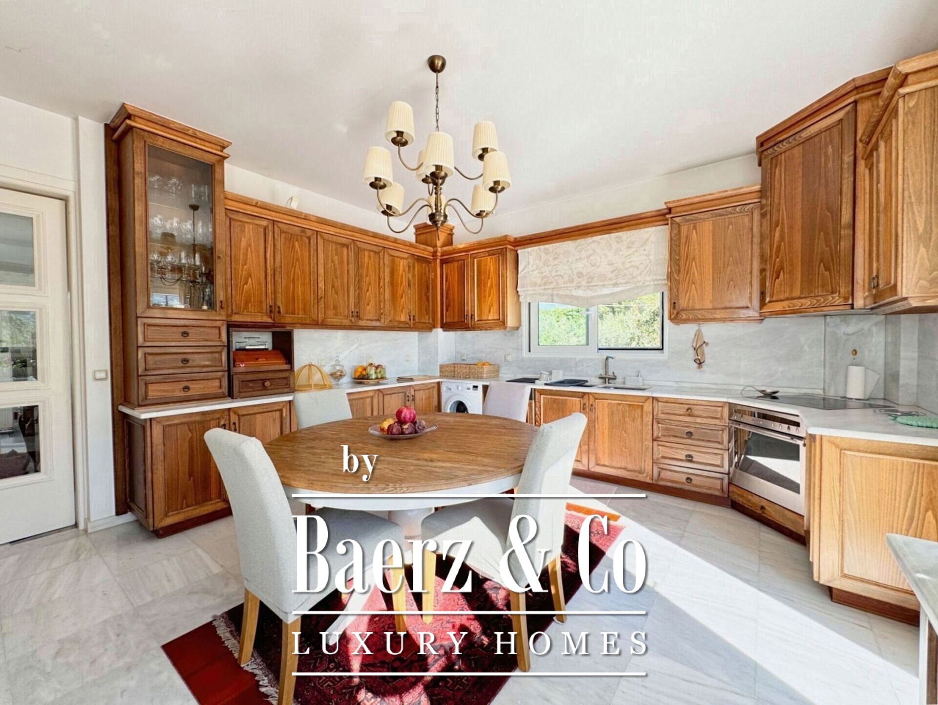 Detached house Kalamata offers an impressive sense of space and privacy across 370 m² and four levels. Set on a generous 2,000 m² plot, this home balances refined comfort with striking panoramic sea and mountain views. Outdoors, a pool, pergola, and well-equipped BBQ area invite restful afternoons or vibrant gatherings, enveloped by lush gardens and mature trees. There is ample parking and a closed garage, ensuring ease and security.