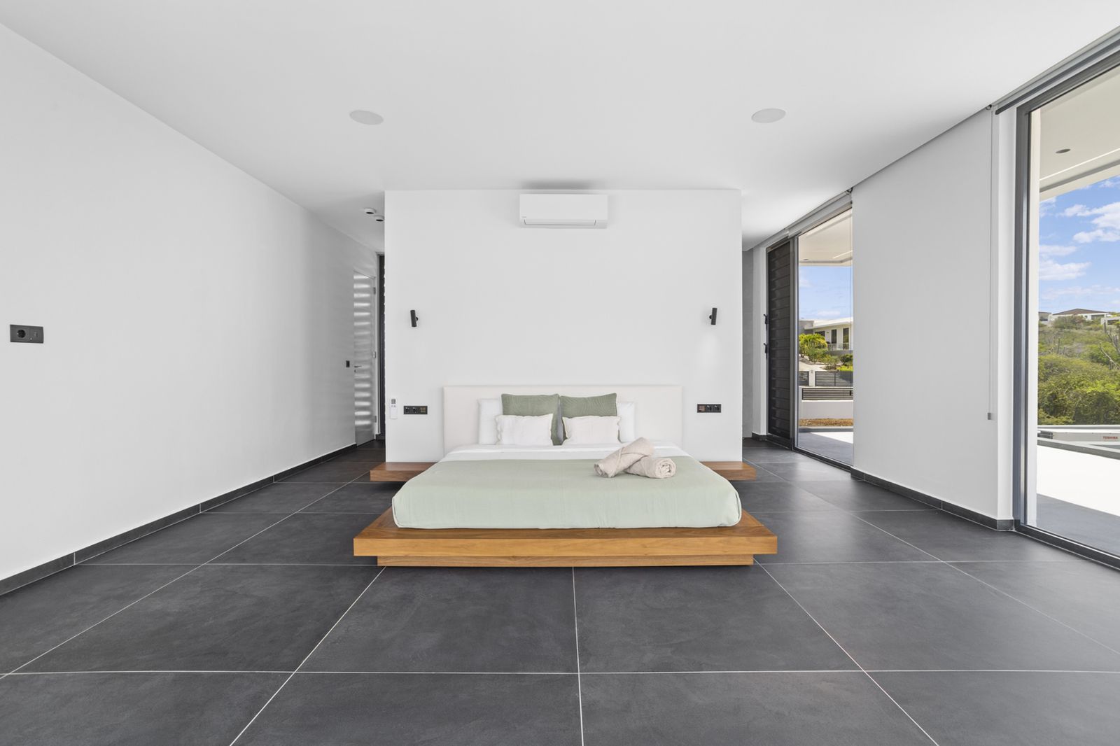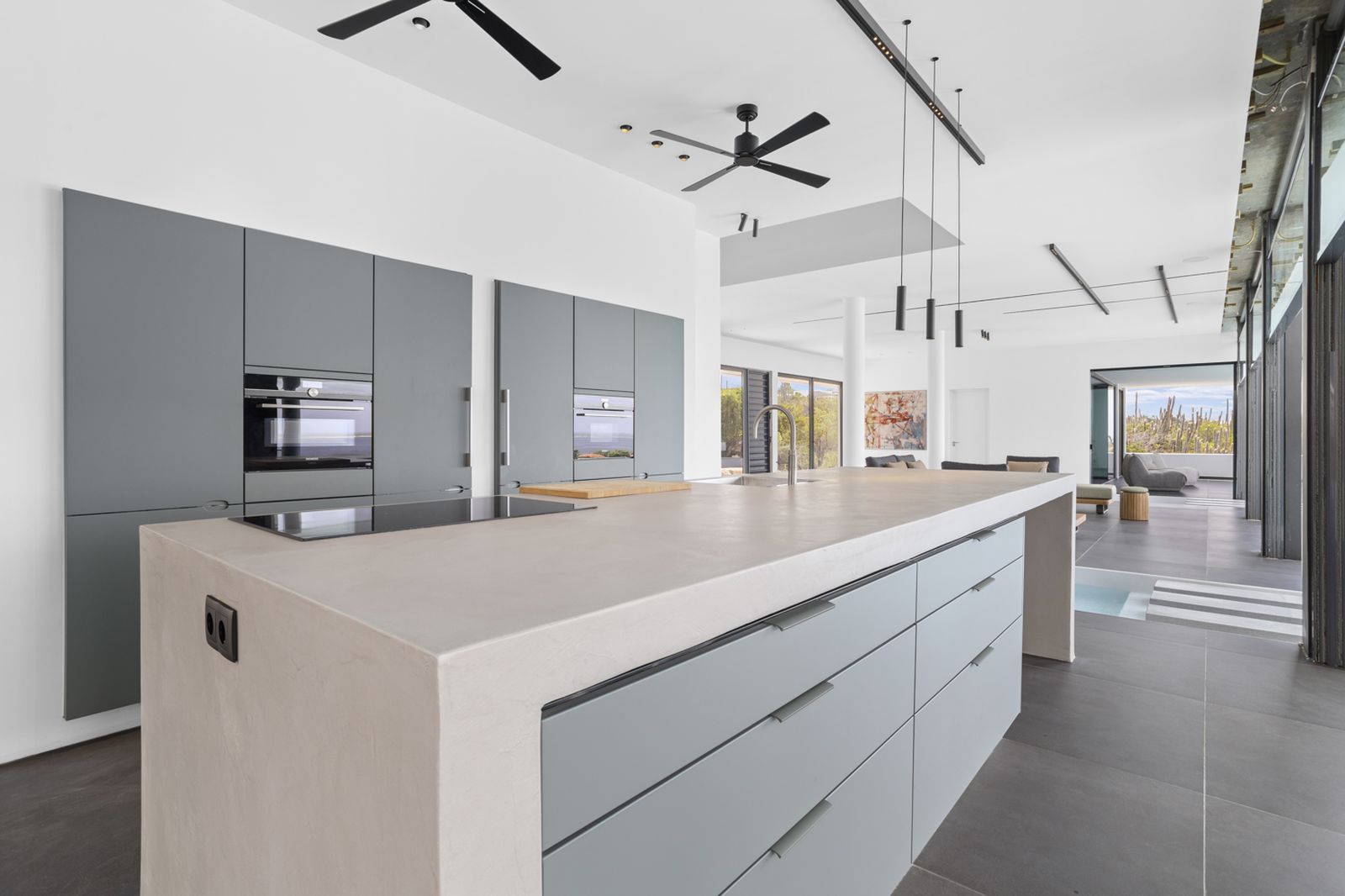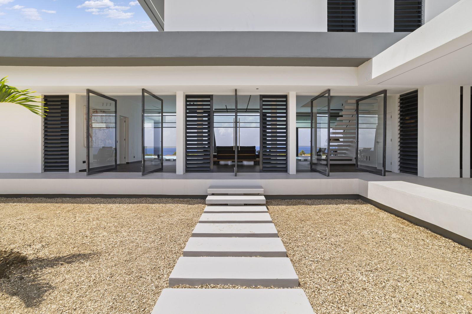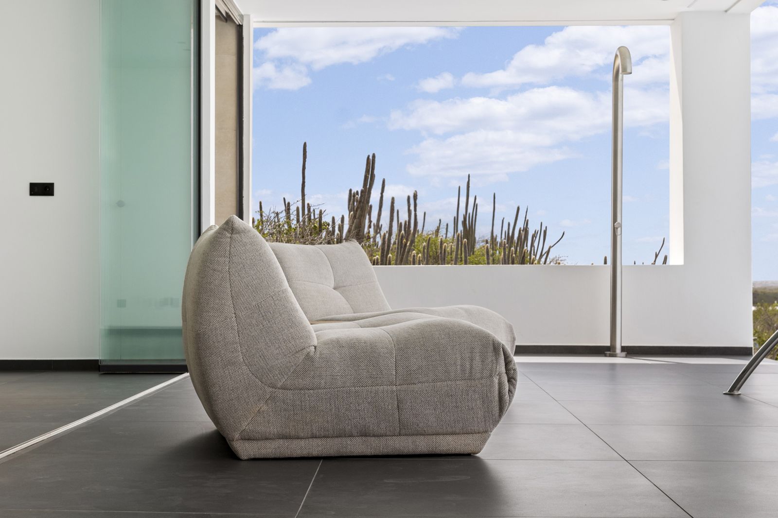 As you step through the large glass front door, you are greeted by panoramic views—ranging from Bopec in the north to the Salt Mountains in the south. Thanks to the large windows, the house is bathed in light, air, and space throughout.