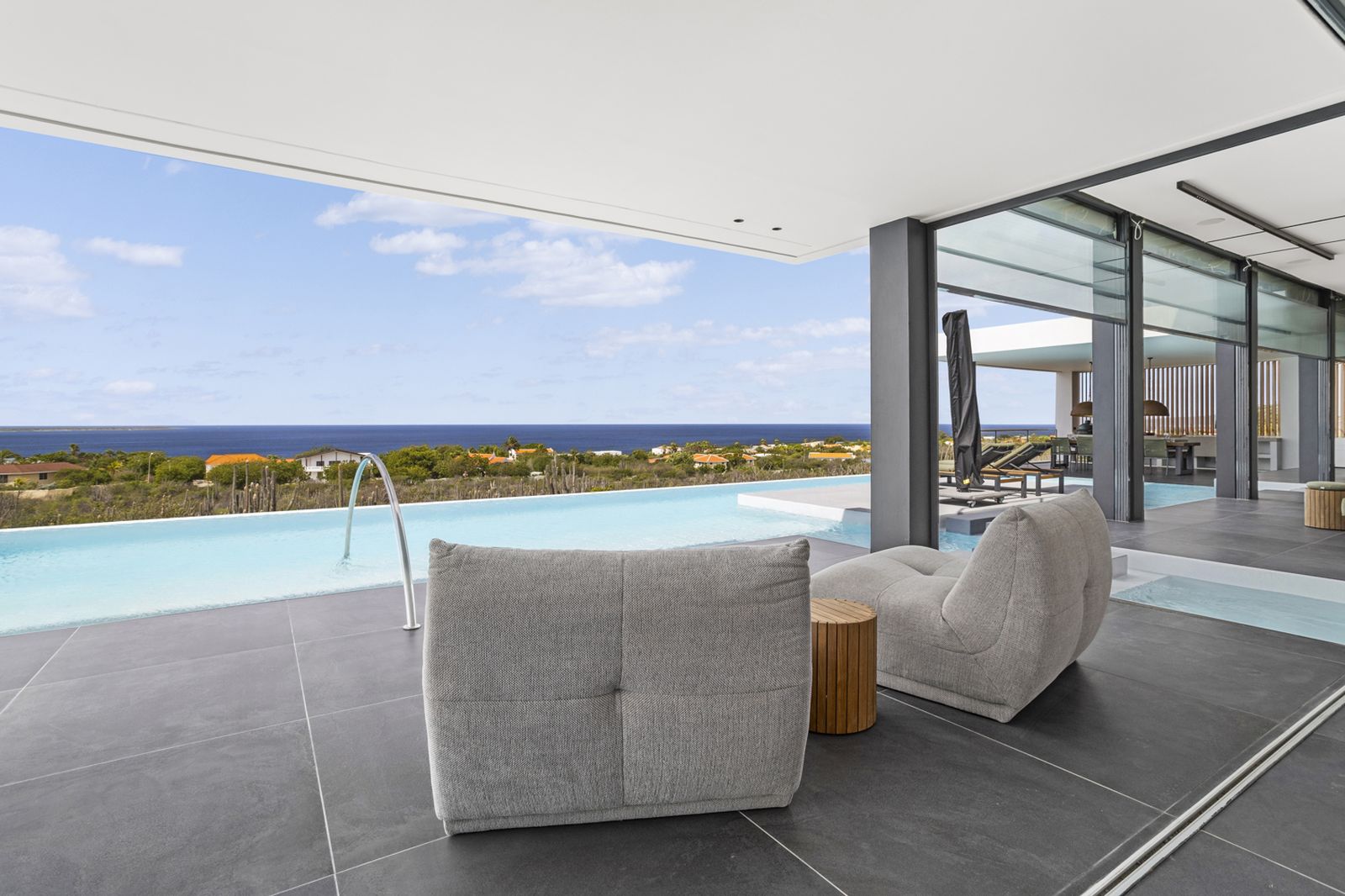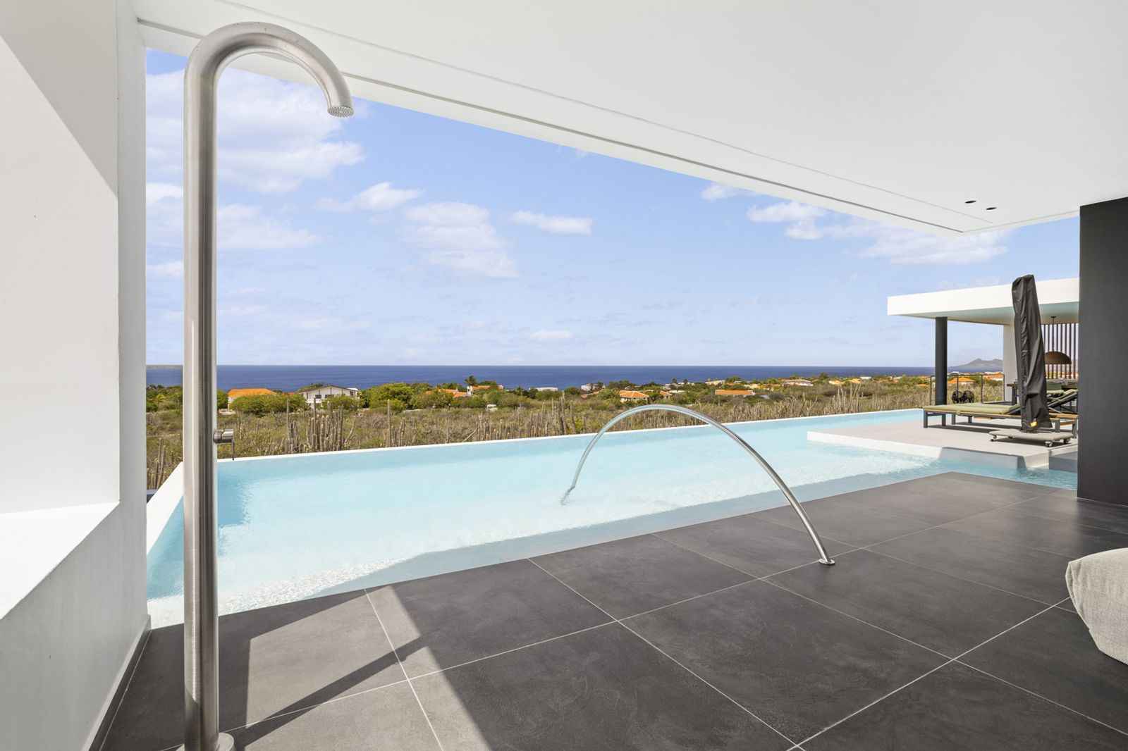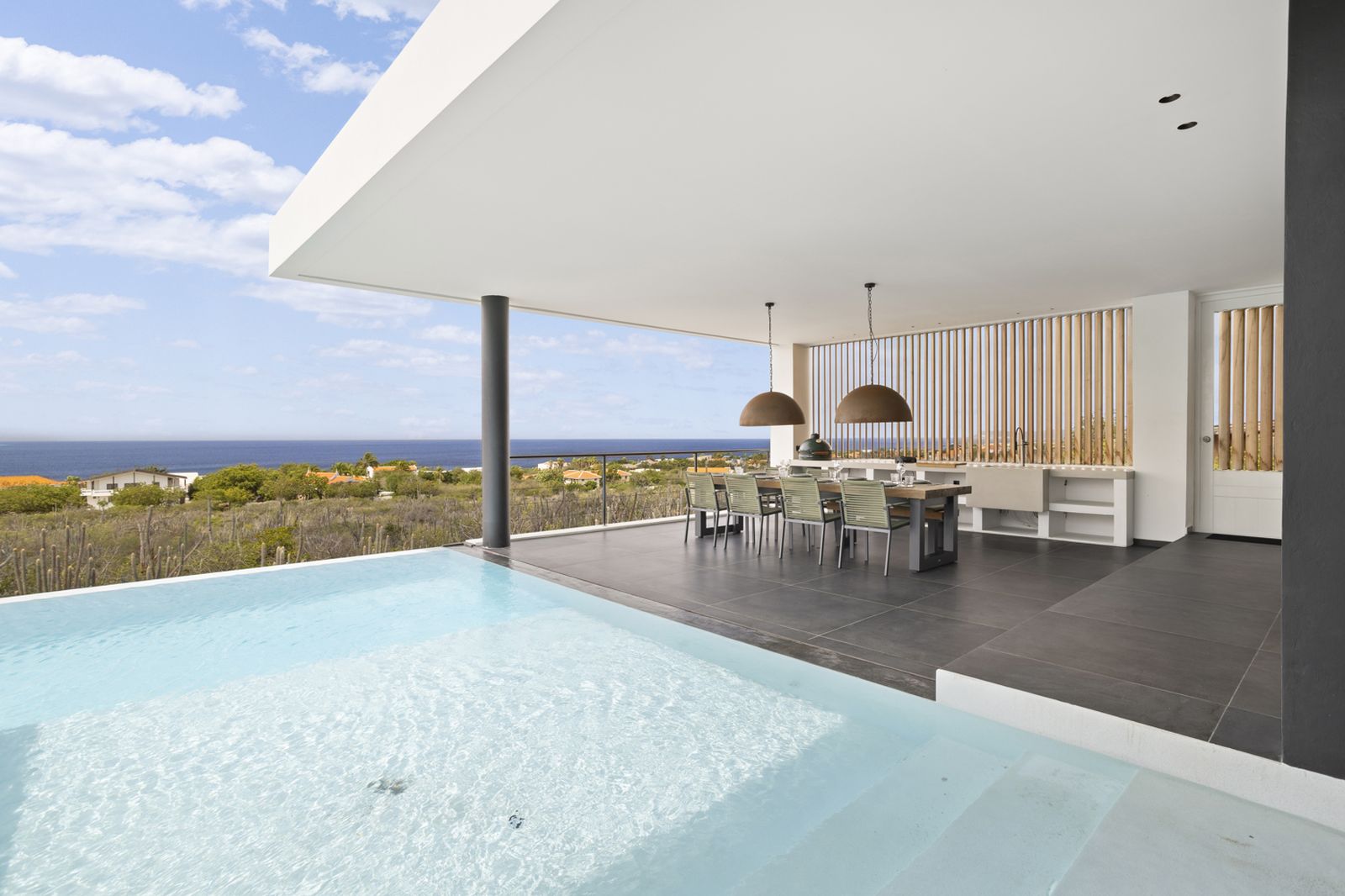 What truly sets this villa apart is the pool. Nearly 19 meters long with an impressive surface area of 116m², this may very well be the largest private pool on Bonaire! Perfect for swimming laps or simply relaxing with a view of the ocean. It’s the ideal spot to enjoy the sun, the views, and the ultimate luxury of this magnificent property.