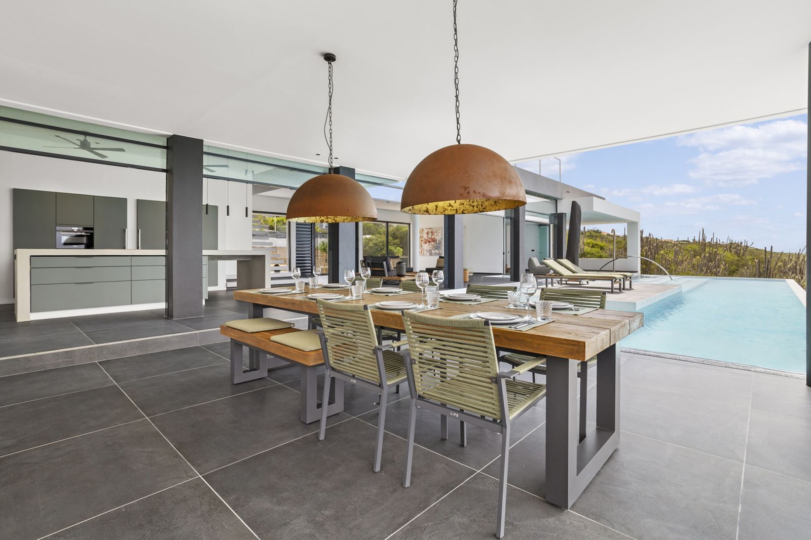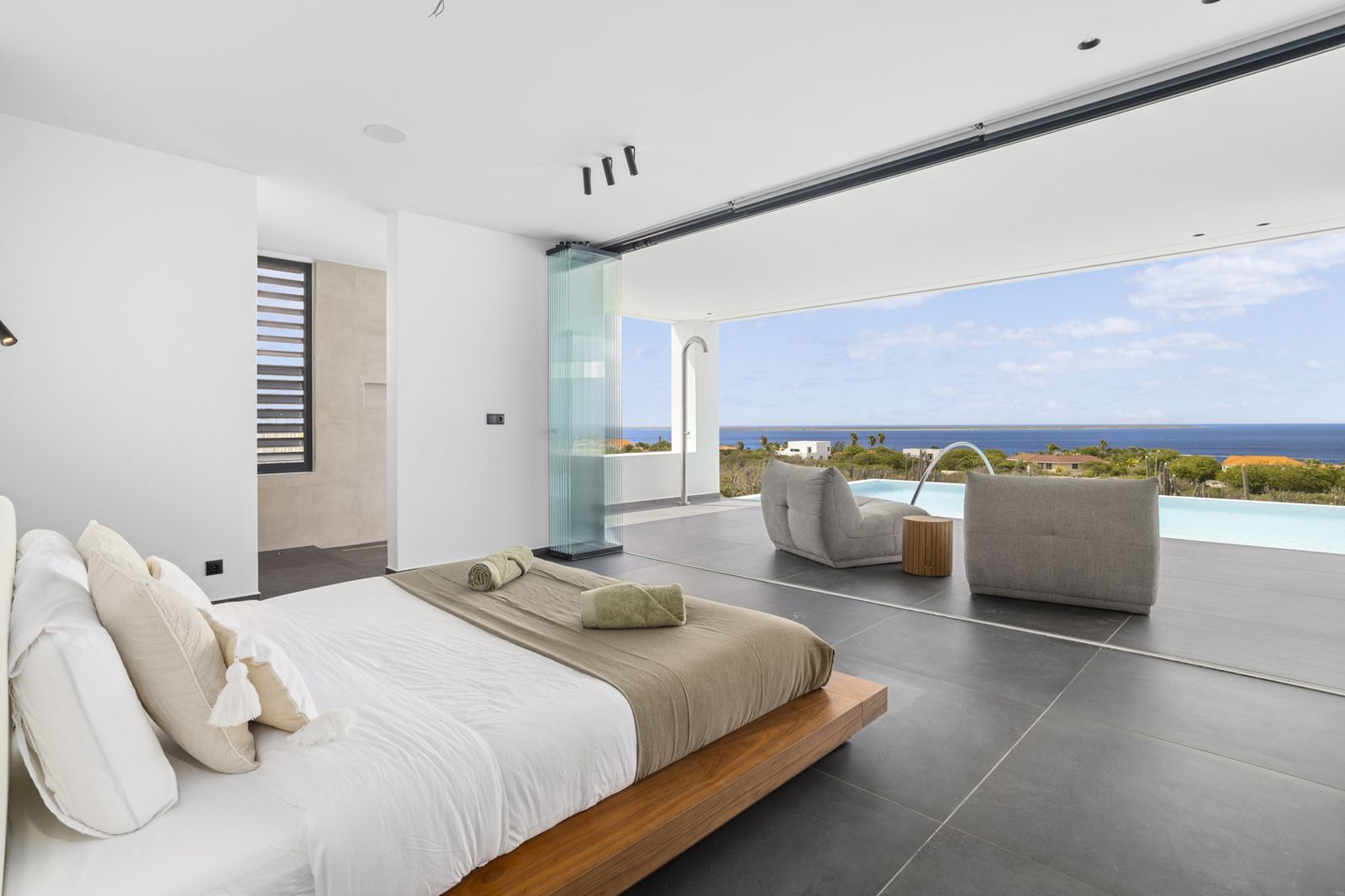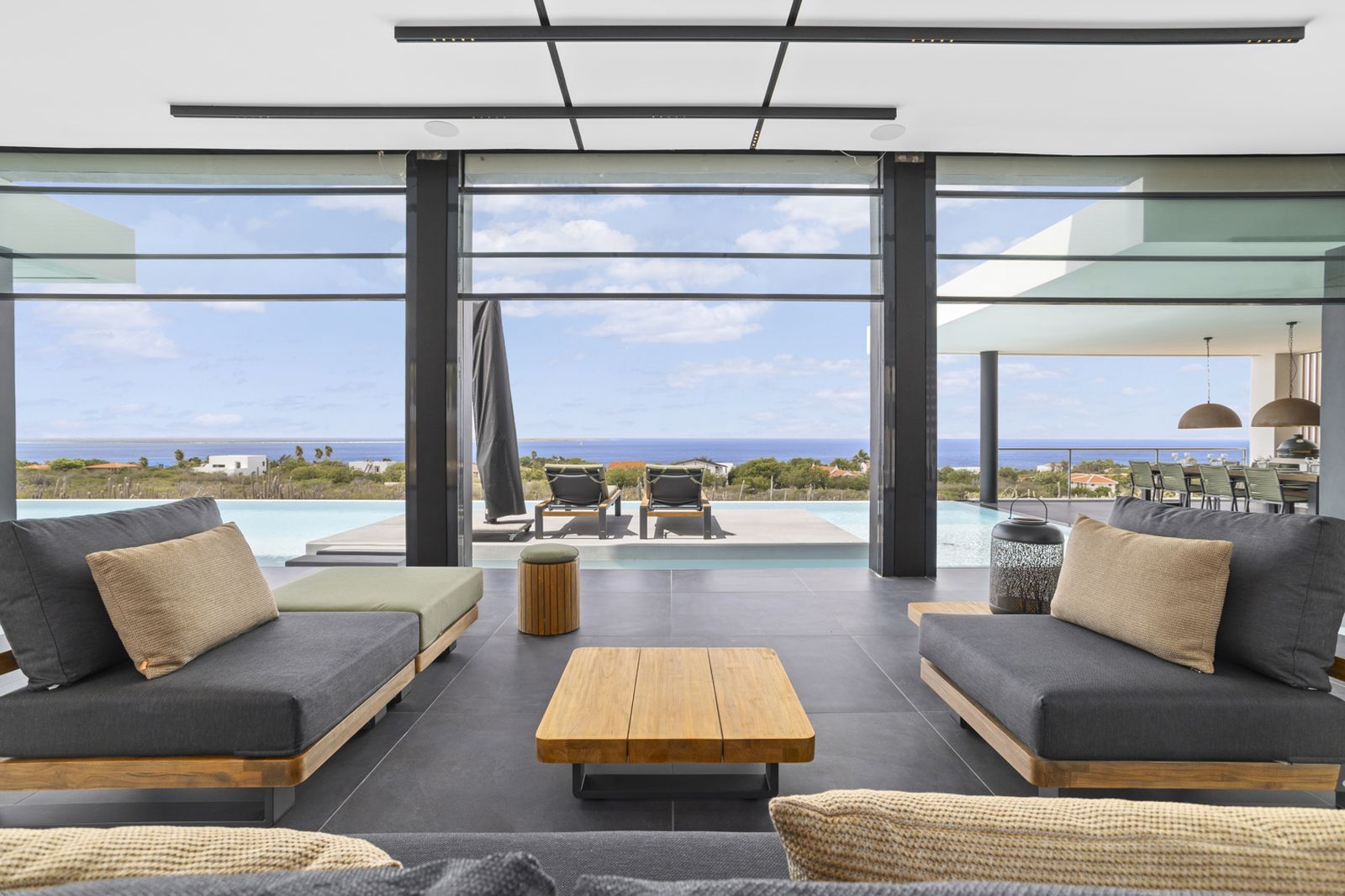What truly sets this villa apart is the pool. Nearly 19 meters long with an impressive surface area of 116m², this may very well be the largest private pool on Bonaire! Perfect for swimming laps or simply relaxing with a view of the ocean. It’s the ideal spot to enjoy the sun, the views, and the ultimate luxury of this magnificent property.