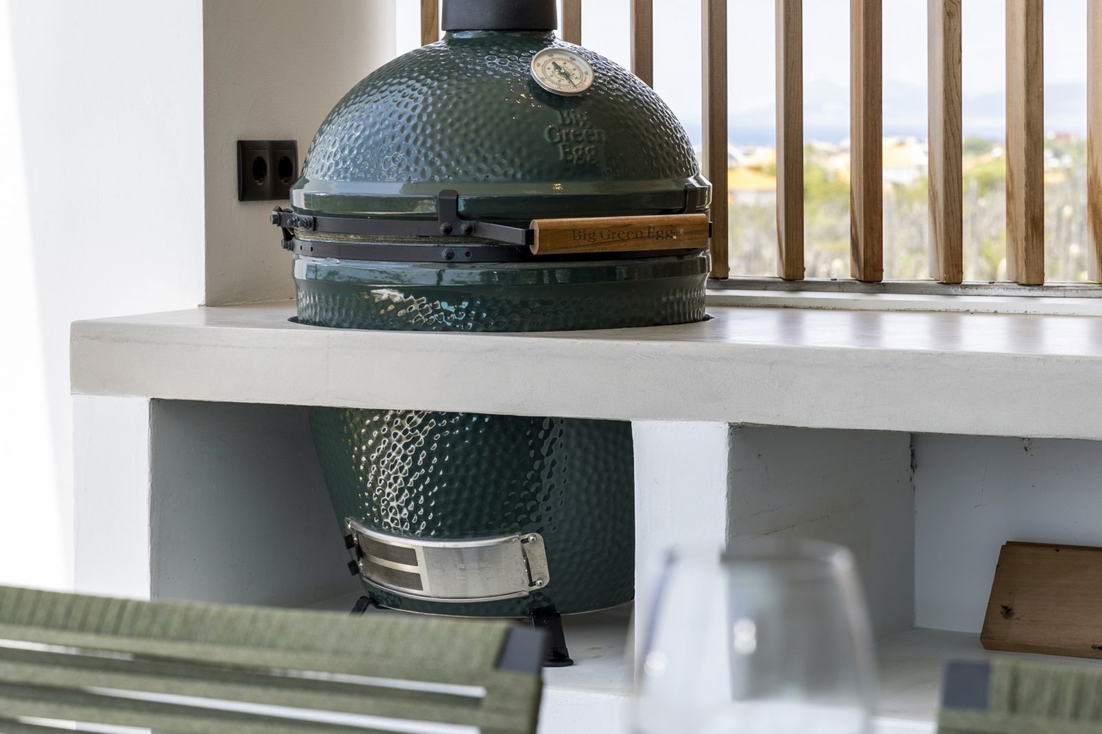• Outdoor Kitchen: Equipped with a large Green Egg and wok burner