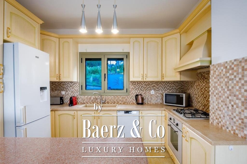 Developed on two levels and spanning 156 m², this villa resides on a generous 2,200 m² plot. Three spacious en-suite bedrooms ensure privacy, each opening to a secluded terrace with sweeping vistas. The main living area, anchored by a fireplace and large sliding glass doors, blurs the boundary between indoors and the thoughtfully landscaped outdoor spaces. The kitchen is fully equipped, and an additional guest WC is provided.