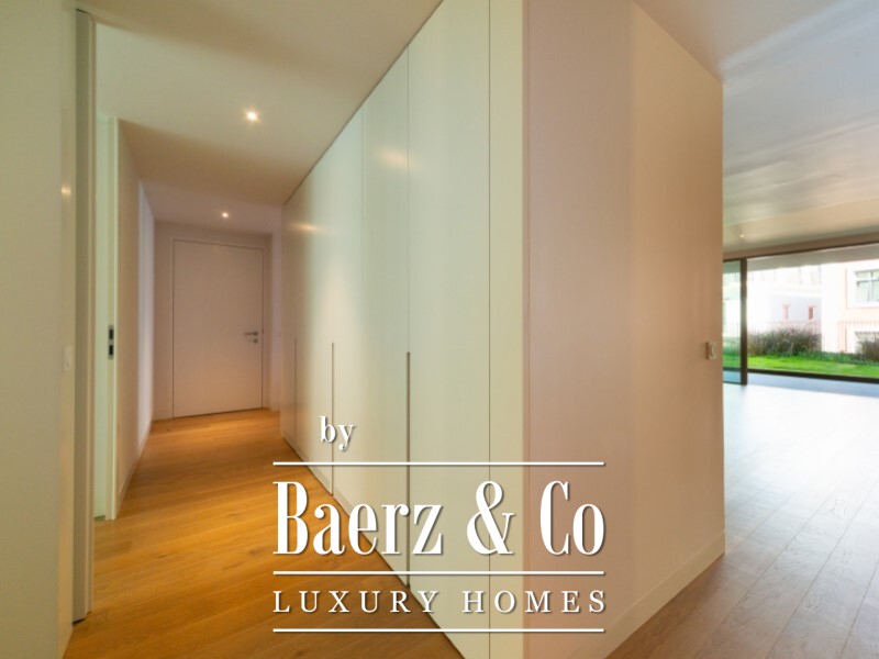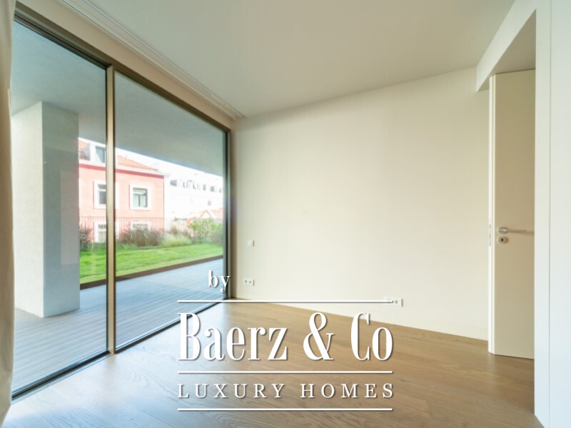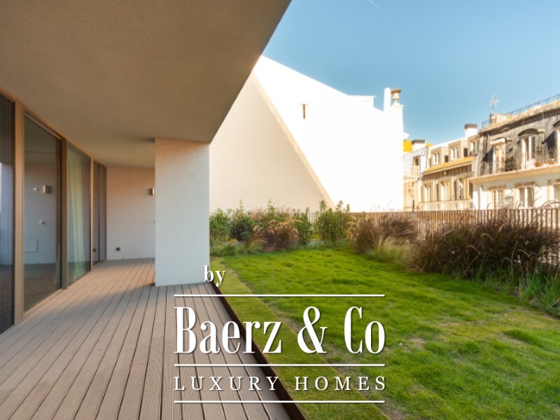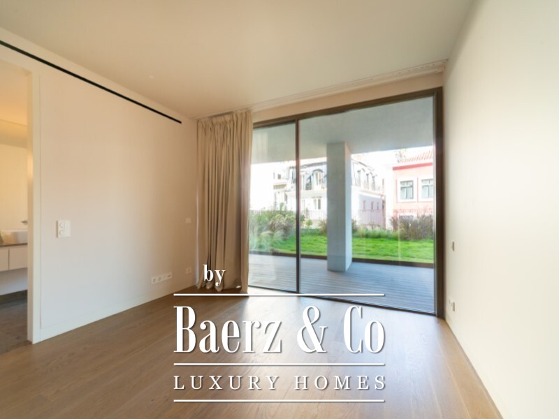 Apartment Lisboa presents an interplay of contemporary architecture and refined living, positioned just steps from the celebrated Avenida da Liberdade. This apartment offers 126 m² of private space, blending minimalist lines and high-quality finishes that articulate both elegance and comfort. The property’s focus on thoughtful design is evident in its open kitchen and living area, where floor-to-ceiling windows invite luxuriant light and connect directly to a wooden deck terrace. This terrace leads to a lawned garden, creating an urban sanctuary that harmonizes indoor living with tranquil outdoor experience.