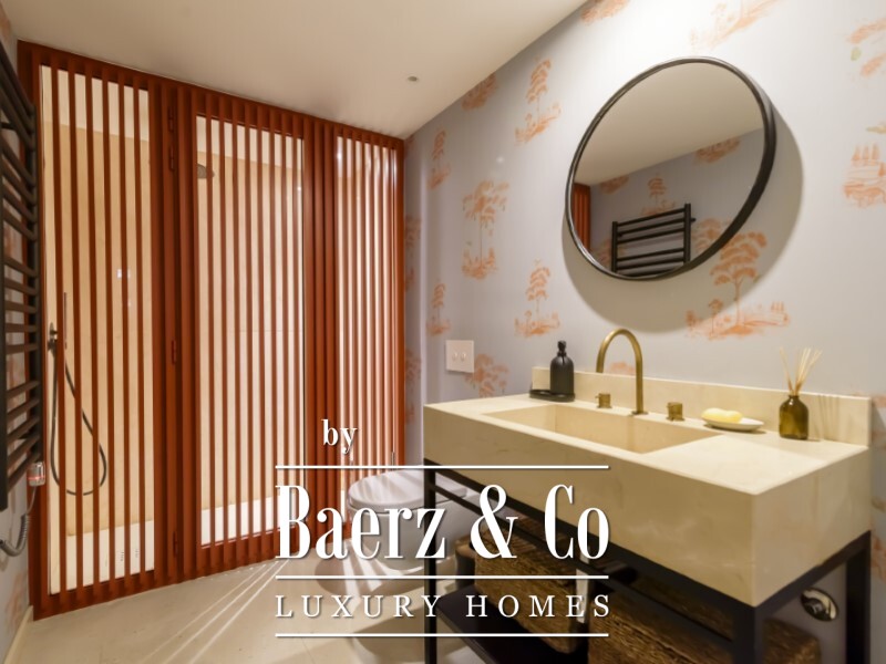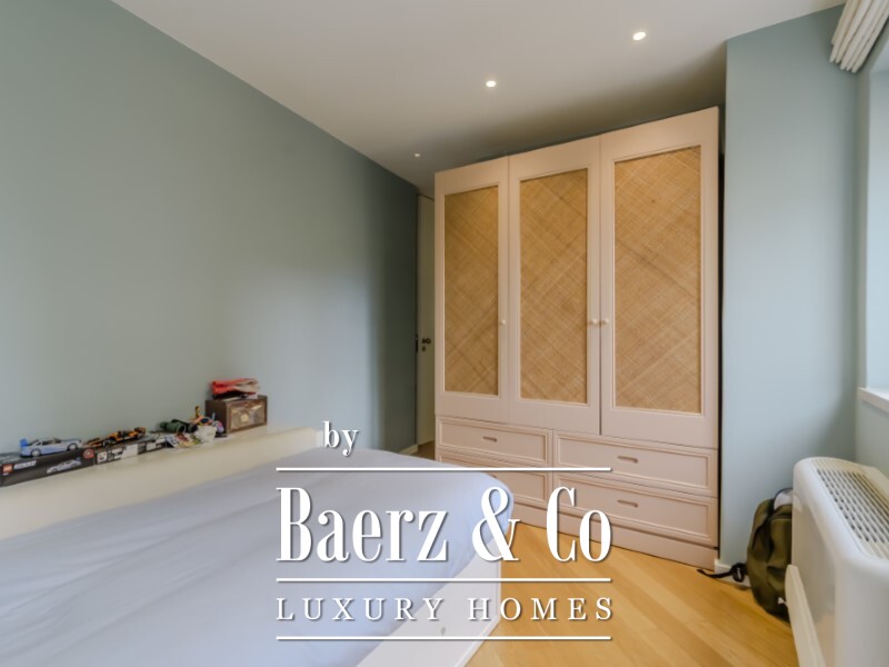 The bedroom floor provides a master suite of 22.1 m² with its own 6.1 m² bathroom, alongside two additional bedrooms of 11.5 m² and 14.9 m², a second bathroom, and a walk-in closet. On the semi-basement level, discover a bright 18 m² TV room or study, two more bedrooms, and another full bathroom. Air conditioning throughout and refined Bosch appliances quietly elevate daily rituals.