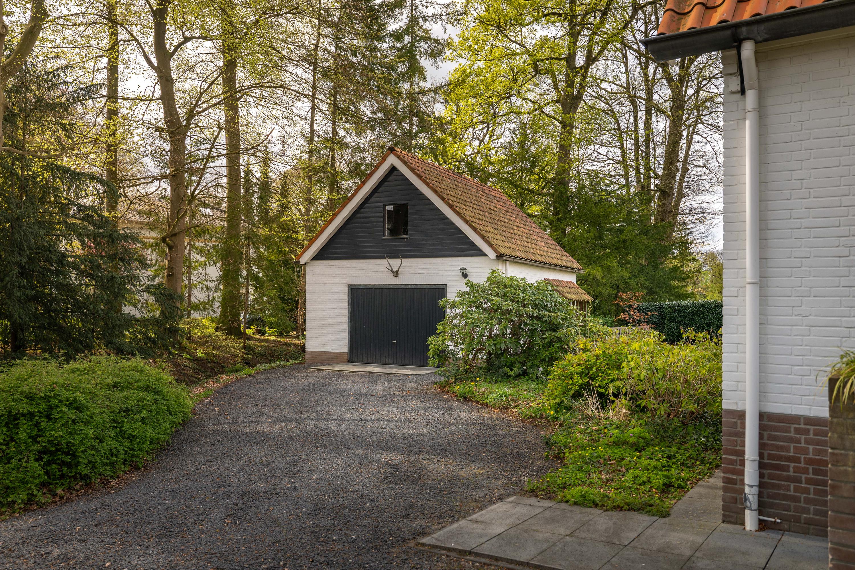 Space is in abundance, as the property sits on a generous plot of approximately 1,755 m². At the front is a charming garden with a characteristic semi-circular driveway. Beside the house stands a spacious, detached brick garage with cavity walls and an upper floor—ideal for parking a classic car, storing bicycles and accommodating a workbench. The upper level offers excellent potential for creating an artist’s studio or hobby space.