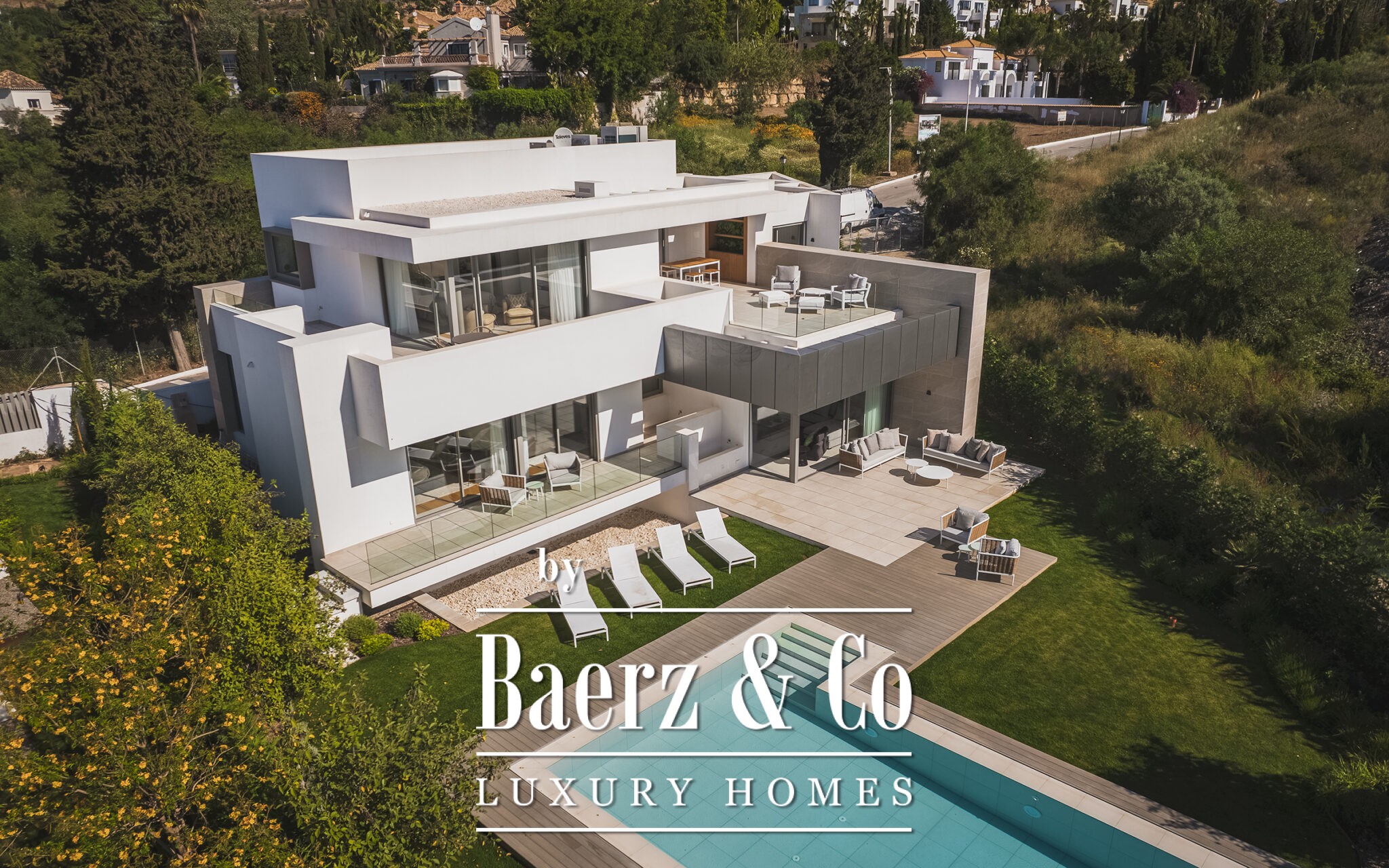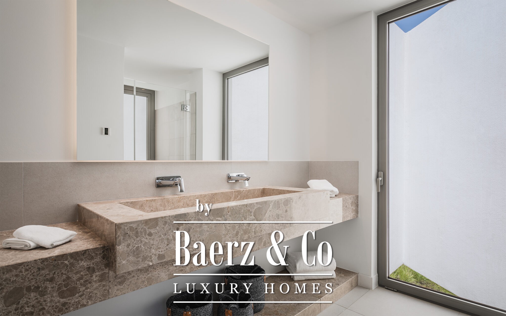 Villa Marbella in El Paraiso offers a tranquil and sophisticated setting among the Andalusian hills, surrounded by the exclusivity of a select gated community of just nine residences. This villa, with 626 m² of living space set upon an 808 m² plot, is designed for those seeking seclusion and easy proximity to Marbella, Estepona, and the coast. Villa Marbella in El Paraiso presents clean lines and generous south to southeast orientation, ensuring interiors are flooded with natural light. Floor-to-ceiling glazing connects open-plan living spaces and a sculptural, high-end German kitchen to terraces, private landscaped gardens, and a personal swimming pool. Each bedroom features en-suite bathrooms, elegant wood flooring, and muted, contemporary finishes—combining Villeroy & Boch fixtures, grey marble tiling, and thoughtful lighting. The residence privileges comfort and refinement, with amenities such as underfloor heating, hot and cold air conditioning, home automation, and a fireplace. Two covered parking spaces, intelligent movement sensors, and a multi-purpose basement—ideal for a gym or cinema—complete the offering. The surrounding El Paraiso enclave is serviced by renowned golf courses, international schools, boutiques, and fine dining, supporting a pace of life defined by discretion and access.