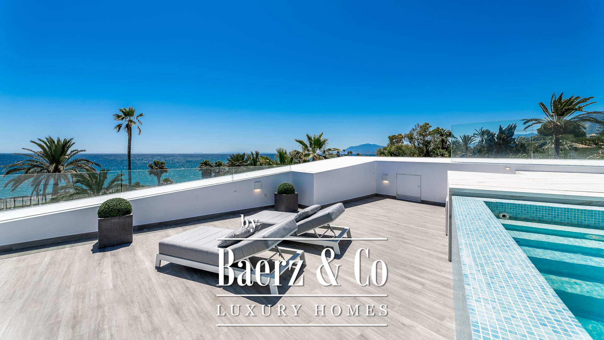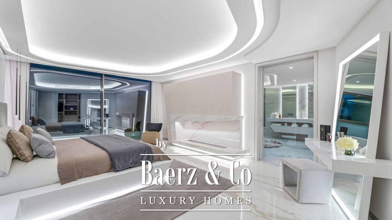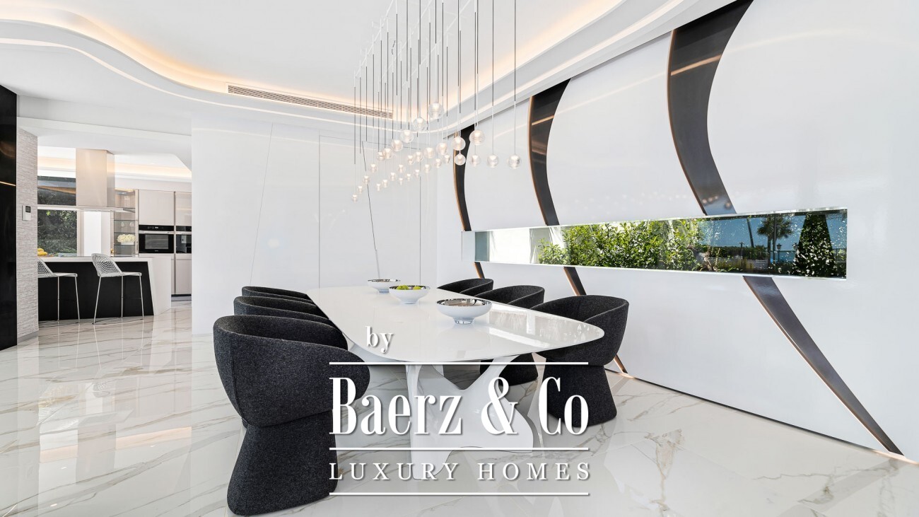 This architectural masterpiece boasts exquisite design and luxurious finishes throughout. As you step inside through the grand entrance hall, you are immediately greeted by the open-plan living and dining area, seamlessly connected to a partially enclosed kitchen. From here, you can access the marvelous terrace, offering panoramic views of the glistening sea. On the same floor, a master bedroom suite awaits, providing a haven of tranquillity and indulgence. Adjacent to it, you'll find a unique office space with a modern boat-style design, featuring double-height ceilings and surrounded by water—an inspirational setting for your work or creative endeavors. Additionally, there is a guest toilet for added convenience. To effortlessly move between levels, a private lift is at your service, granting access to the basement or the first floor. The basement is bathed in natural daylight and features a state-of-the-art garage capable of accommodating up to 5 cars. Furthermore, there is an additional bedroom and a versatile multi-use room that can be transformed into a private gym, sauna, bar, or home cinema, catering to your personal desires. Completing the basement are a laundry room, a storage room, and a spacious technical room. Ascending to the first floor, you will discover three out of the four en-suite bedrooms, each offering breath-taking views of the sea. The master suite on this level is a true embodiment of luxury and space, providing the utmost comfort and serenity. A crowning jewel of this extraordinary property is the rooftop terrace, where you can unwind and bask in pure bliss. Immerse yourself in the Jacuzzi pool or lounge on the expansive decking areas, all enclosed with glass walls that guarantee uninterrupted vistas of the sea, Africa, Gibraltar, and the Bay of Marbella. Notable features of this prestigious villa include under-floor heating throughout the property, an advanced alarm system, 24-hour security for peace of mind, and a cutting-edge home automation system. Moreover, you will enjoy direct access to the beach, allowing you to relish the sun, sand, and sea at your leisure.