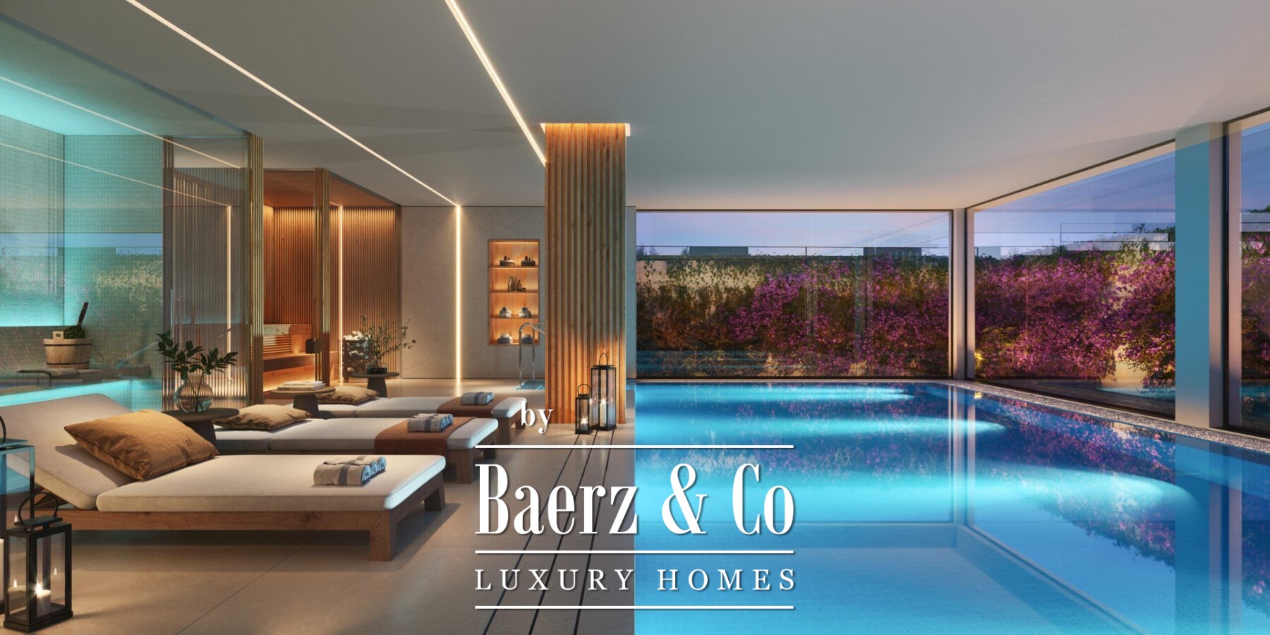 The interiors reveal curated elegance throughout five bedrooms and five bathrooms, each space guided by clarity, balance and comfort. The main living areas open to luminous terraces, gardens and a private infinity pool oriented towards La Concha and the Mediterranean Sea. A bespoke solarium crowns every residence, inviting quiet leisure above it all, while floor-to-ceiling views connect each moment to land and water.