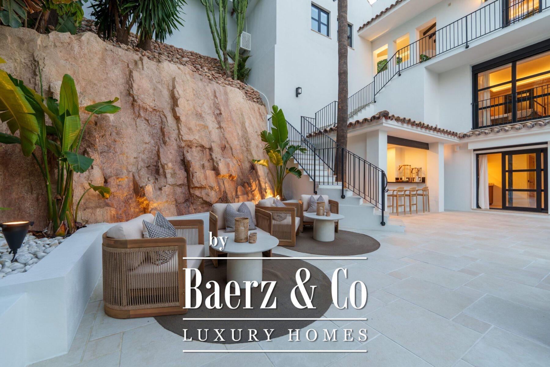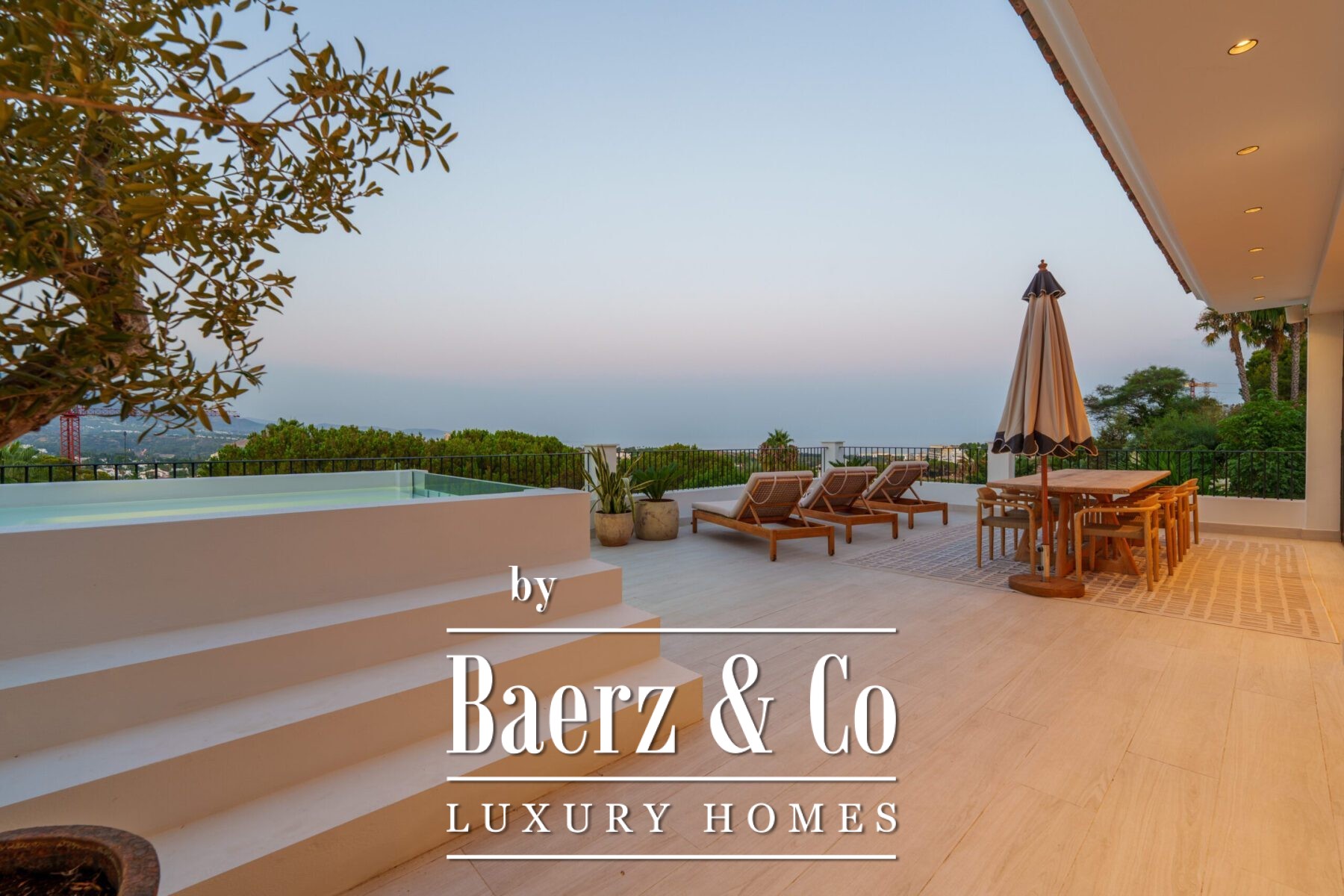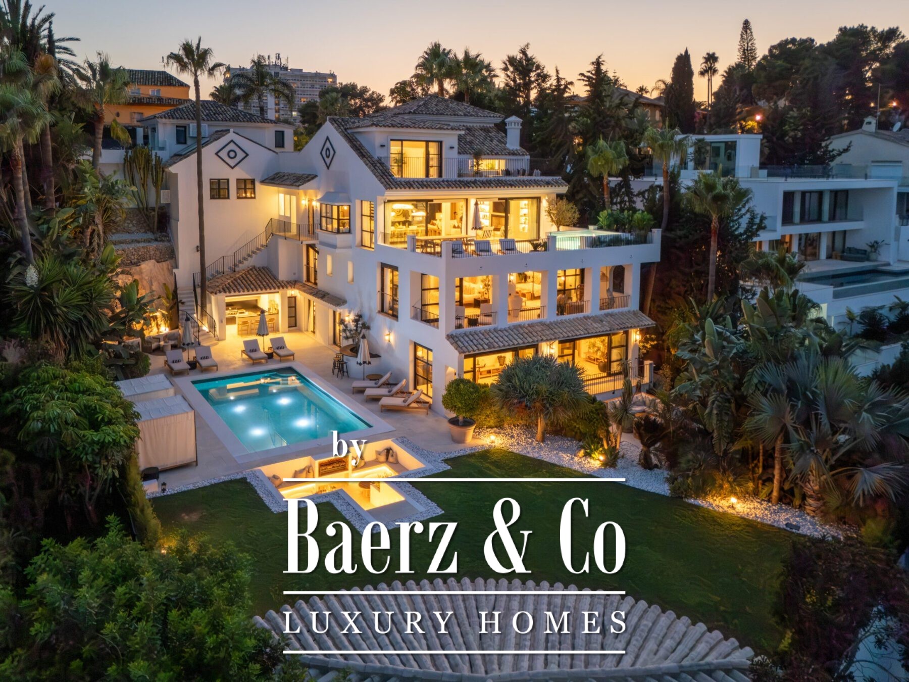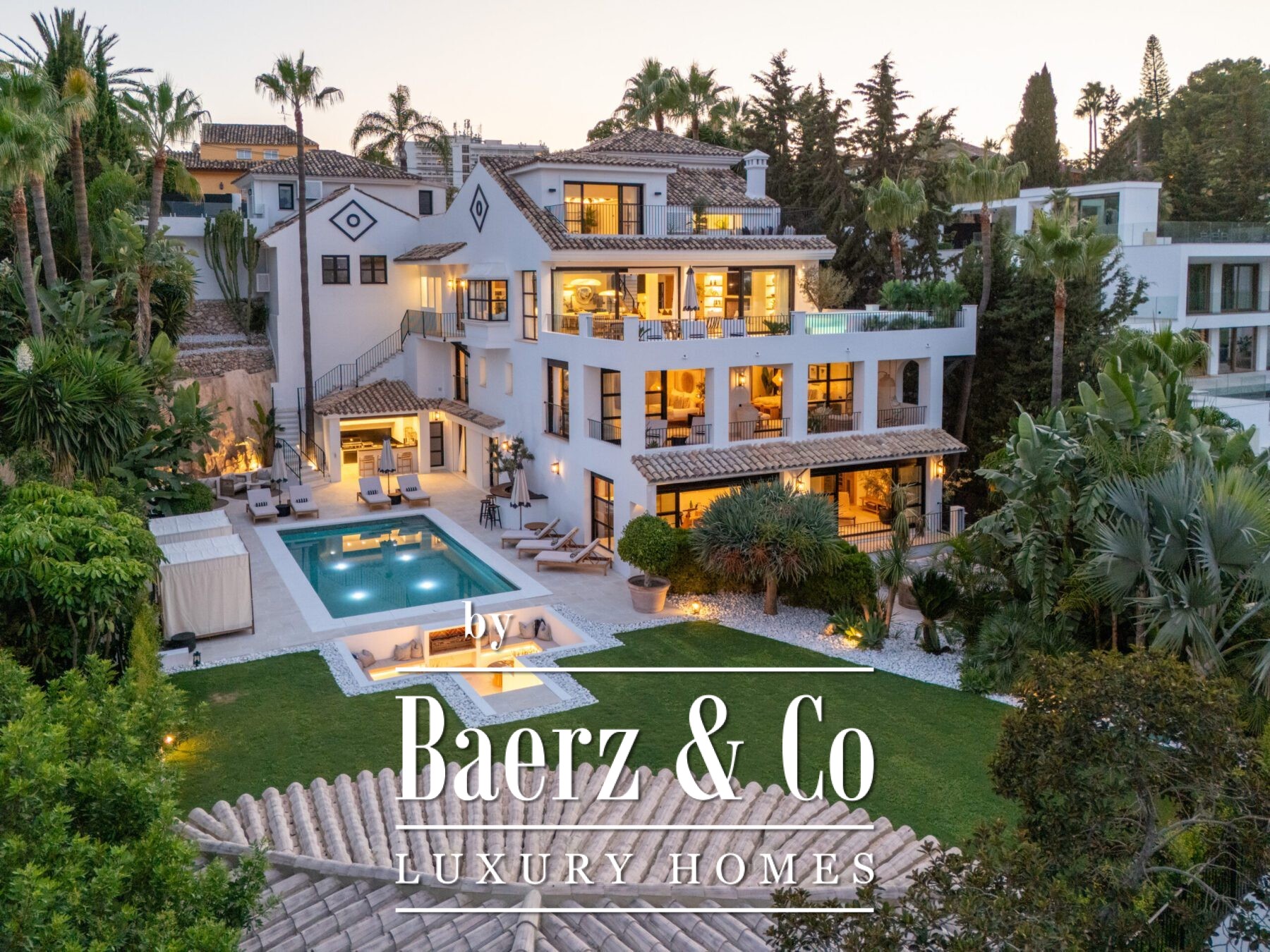 In the heart of the prestigious Nueva Andalucía, just minutes from world-class golf courses, Puerto Banús, and Marbella’s finest dining and shopping, stands this luxury villa as a masterpiece of modern Mediterranean living. This extraordinary five-level villa captures panoramic views of the Mediterranean Sea and the iconic La Concha mountain, blending timeless Andalusian charm with cutting-edge contemporary elegance.