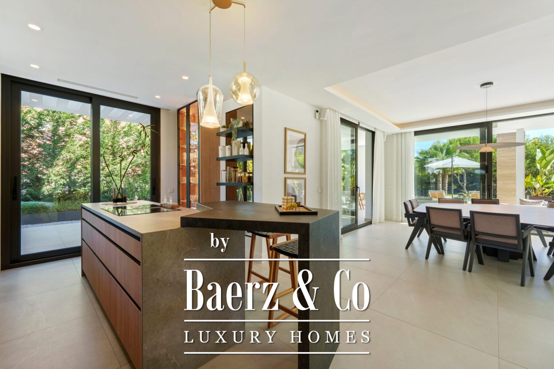 Set within a 24-hour security gated community, this villa complements its serenity with a private garage, advanced amenities, and proximity to golf, the renowned Puente Romano Hotel, and Marbella Club Hotel. The residence delivers the essence of the Marbella lifestyle, blending privacy and sophistication with rare access to both urban vitality and tranquil indulgence. For those seeking a luxury villa for sale in Marbella’s Golden Mile, this property offers a rare union of architectural clarity and luminous southern living.