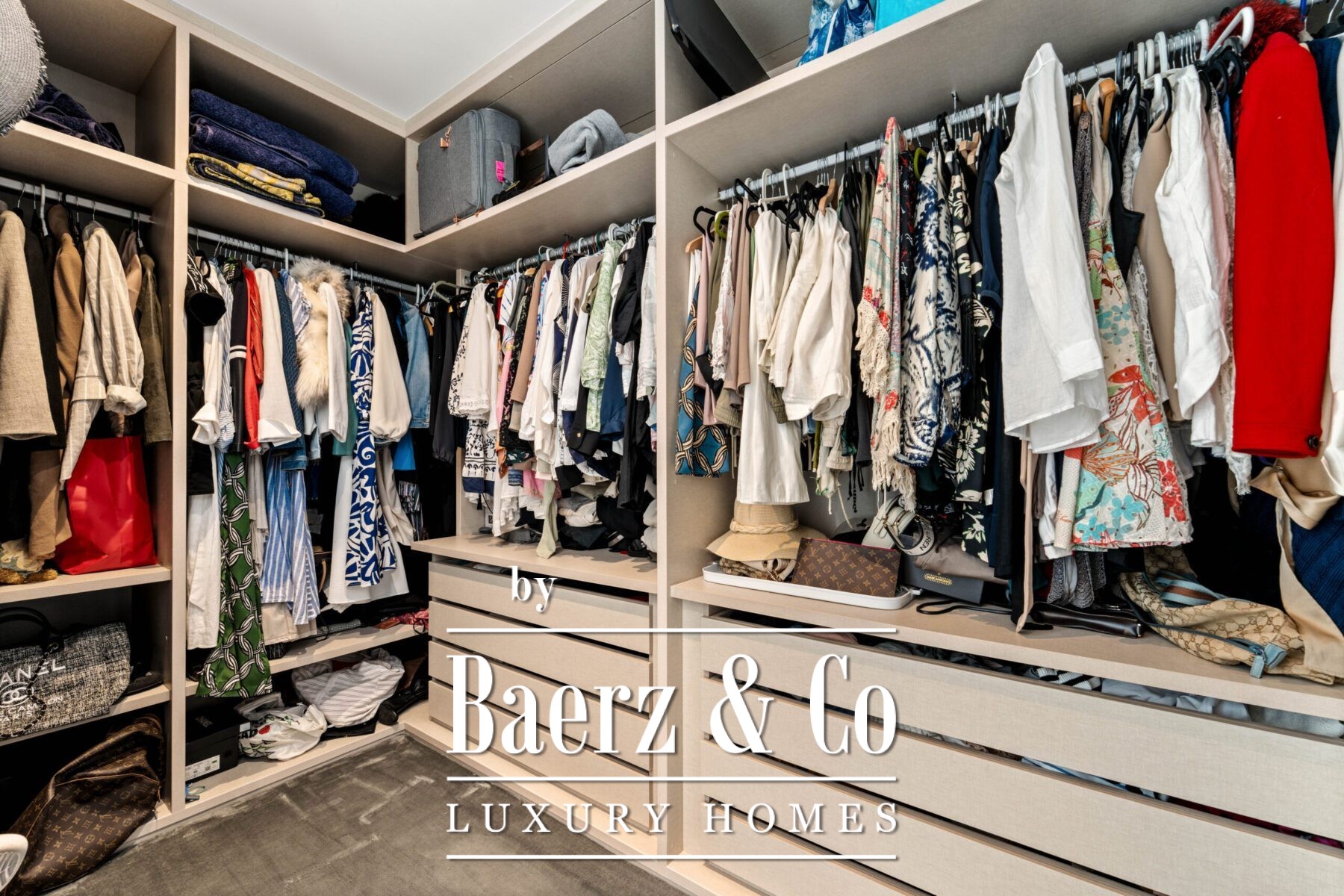 Indoors, open-plan living, dining, and kitchen areas harmonise contemporary Scandinavian tone with functional sophistication. Features such as floor-to-ceiling doors, Miele appliances, stone worktops, electric blinds, underfloor heating, and a guest WC contribute to a cohesive, comfortable atmosphere. Two underground parking spaces and a storage room ensure practical luxury.