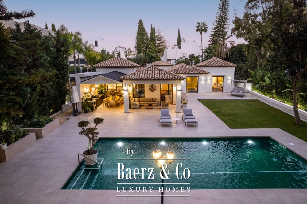 This villa for sale in Nueva Andalucía Marbella combines exquisite architecture and spatial harmony with a location of enduring value, appealing to those who seek a discreet lifestyle without compromise.