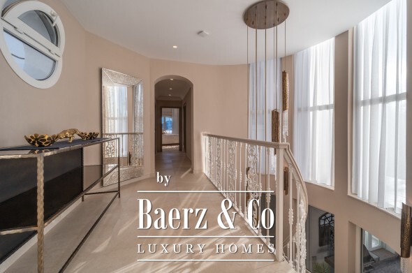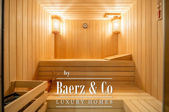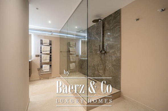 Four en-suite bedrooms occupy the upper floor, each blending comfort and airiness, with the master retreat offering a wraparound terrace and a bespoke walk-in closet. The lower level is a sanctuary for wellness and entertainment, with a billiards lounge, bar, gym, sauna, double shower, and Turkish bath.