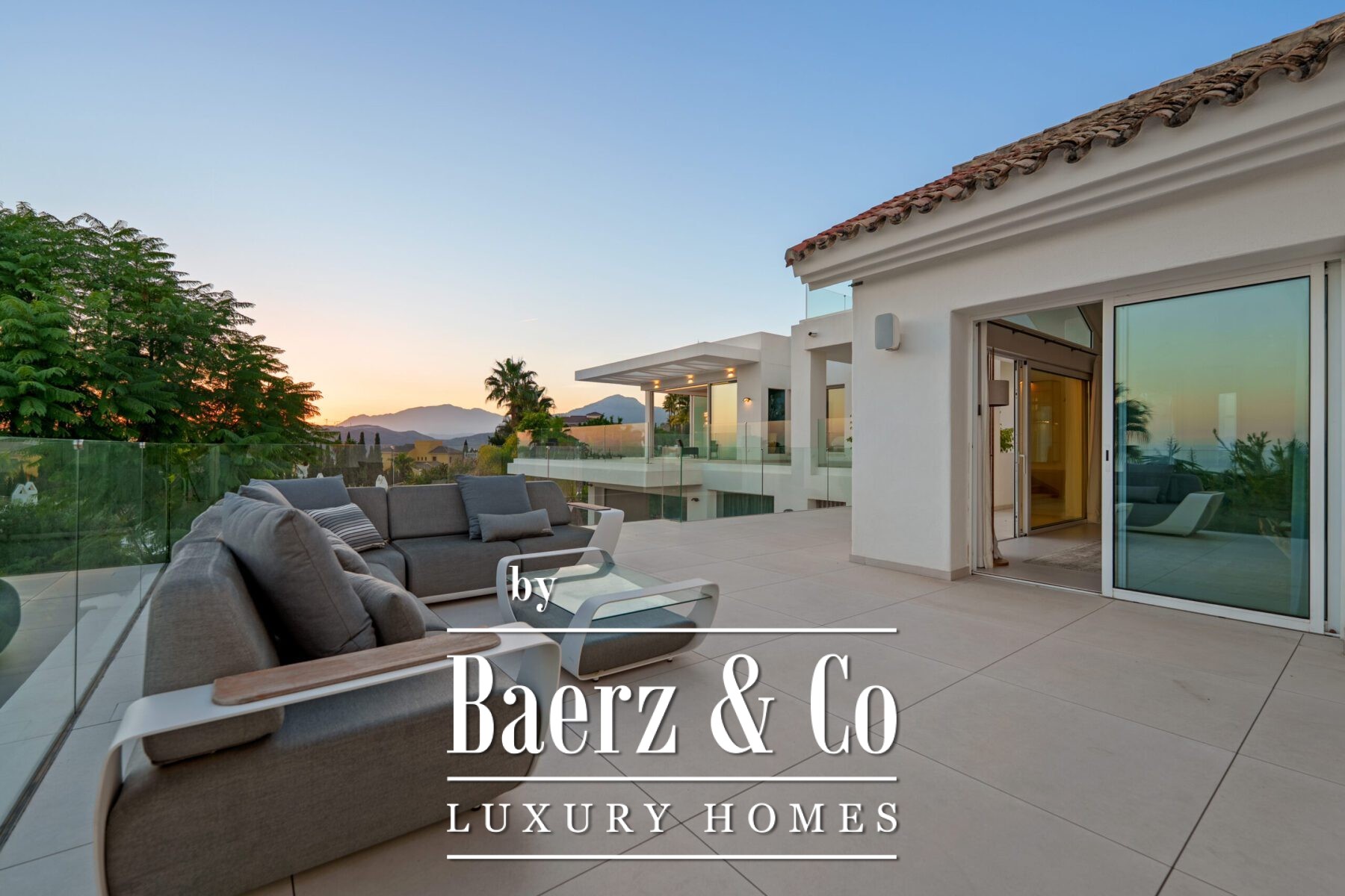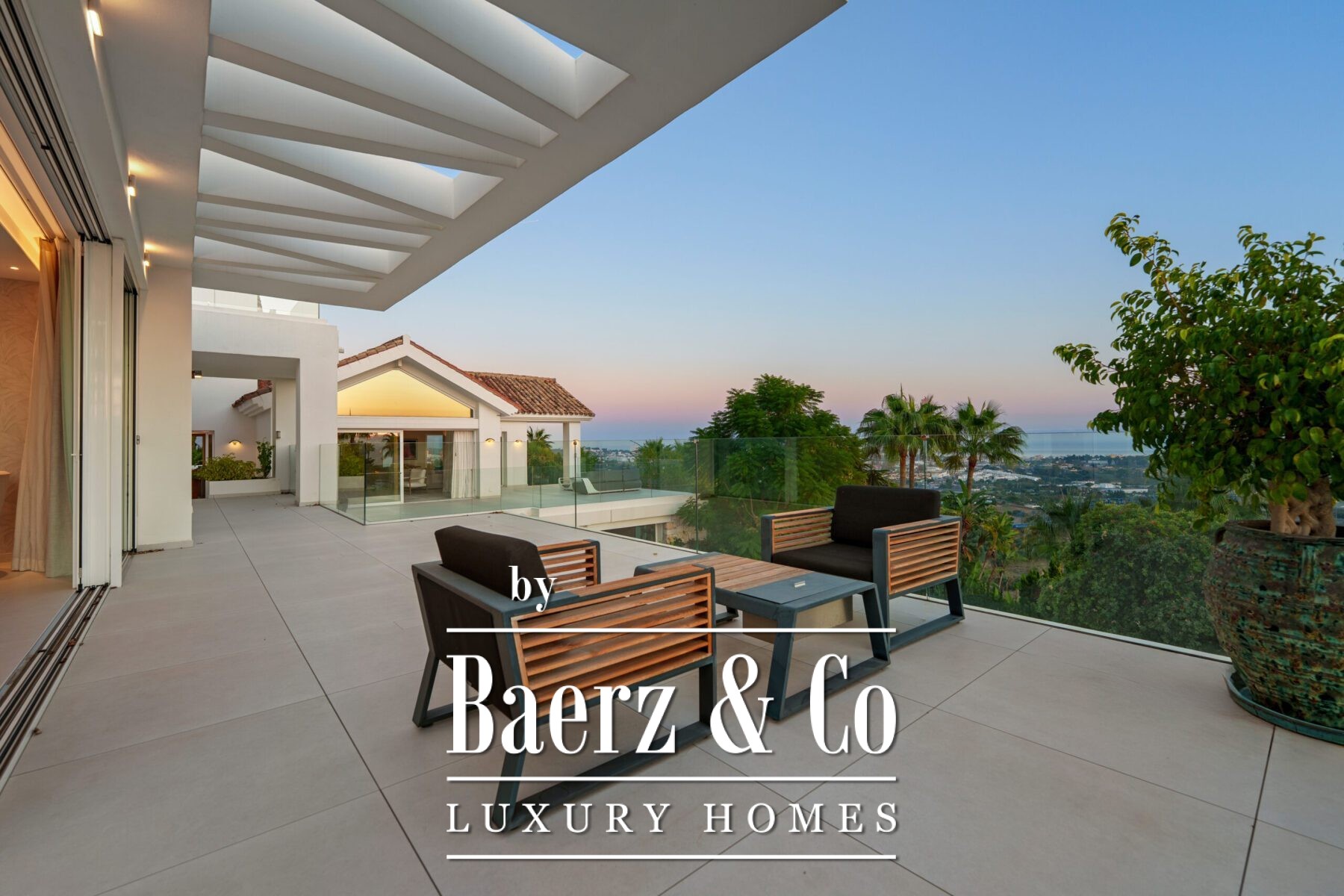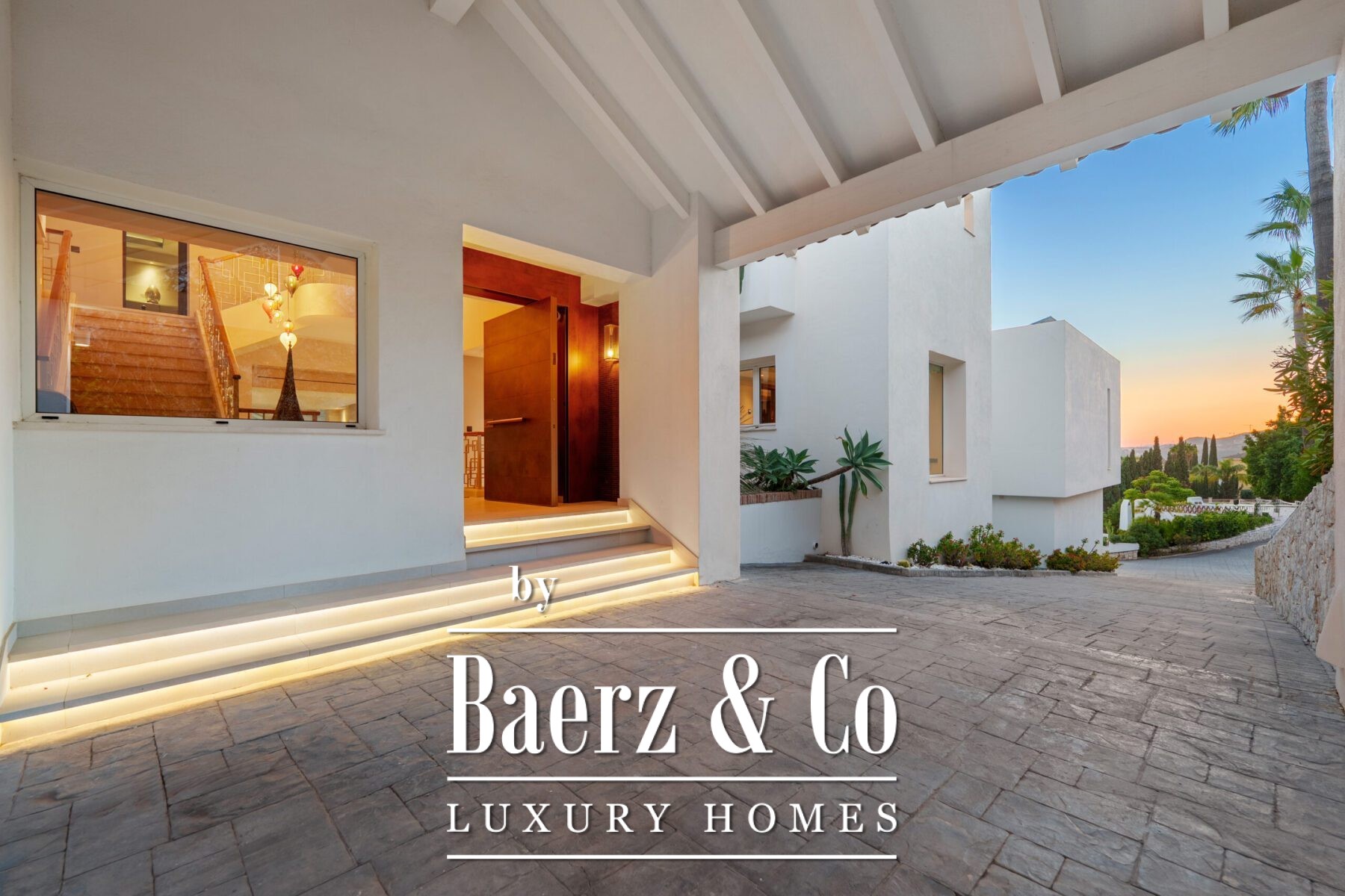 This villa for sale in Benahavís stands close to Marbella, Puerto Banús, renowned golf courses and amenities, offering seclusion without isolation and an elevated approach to Mediterranean living.