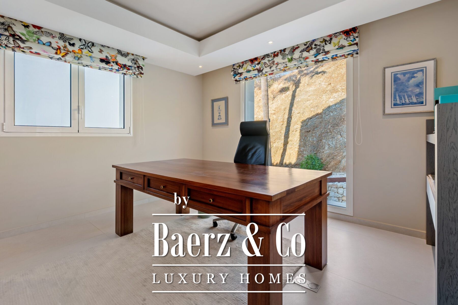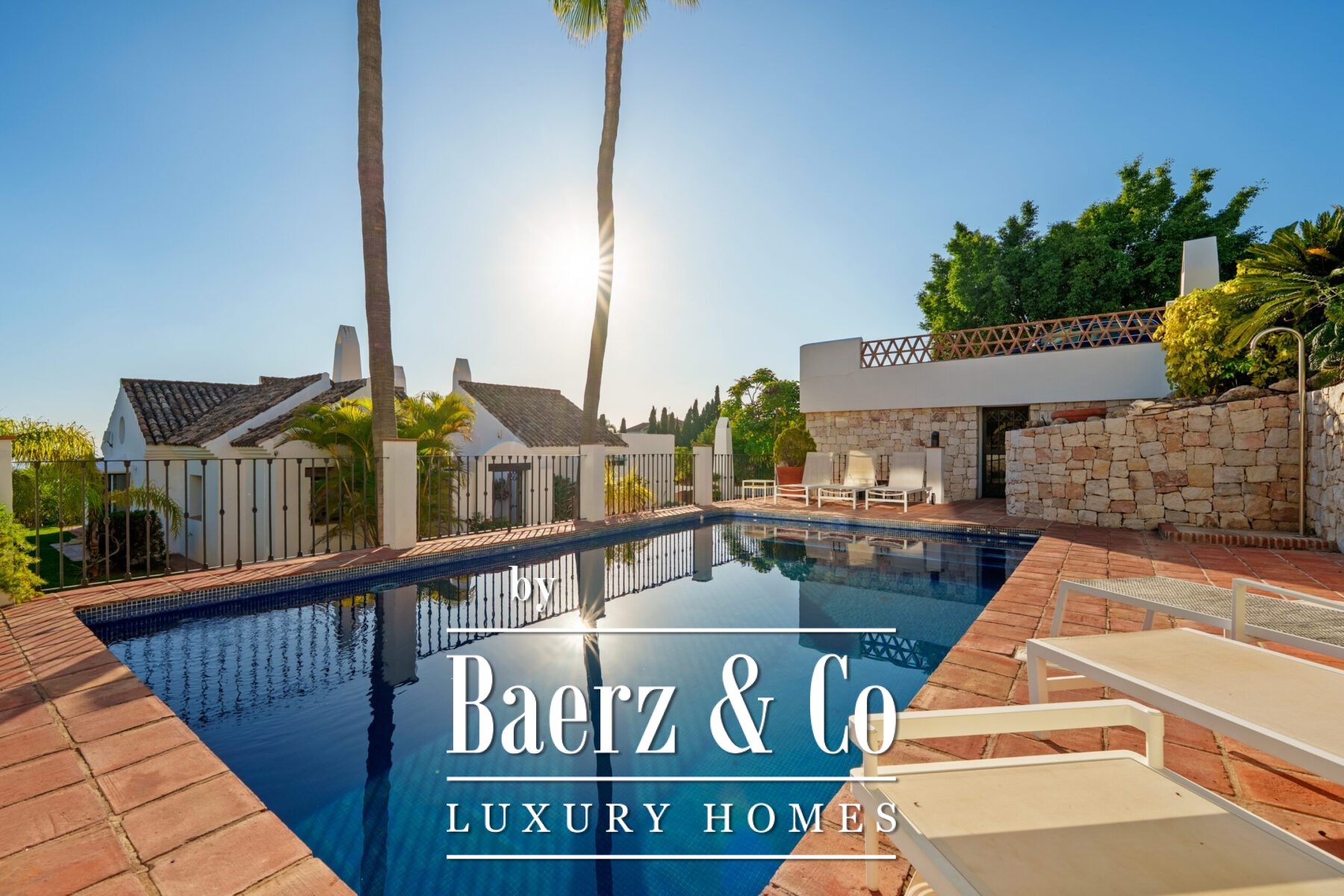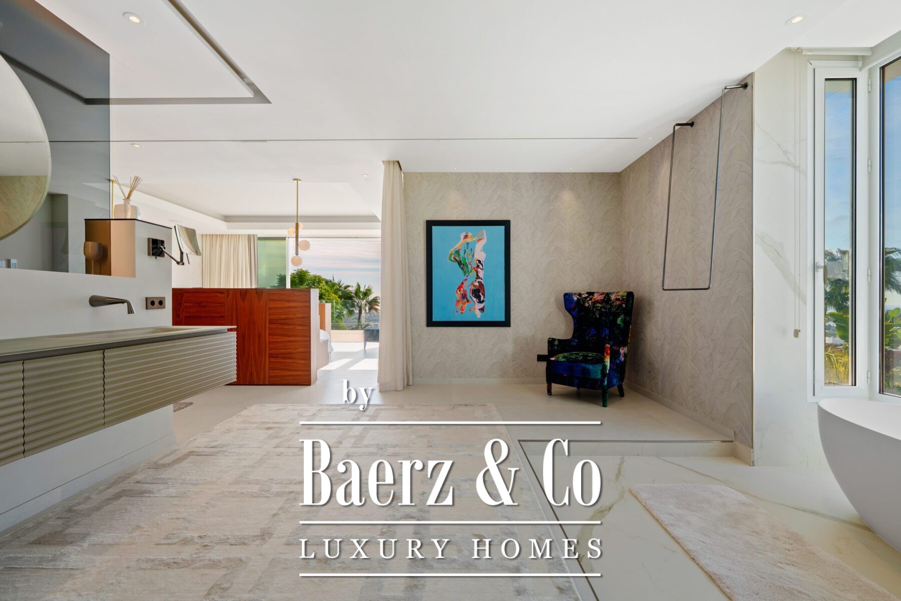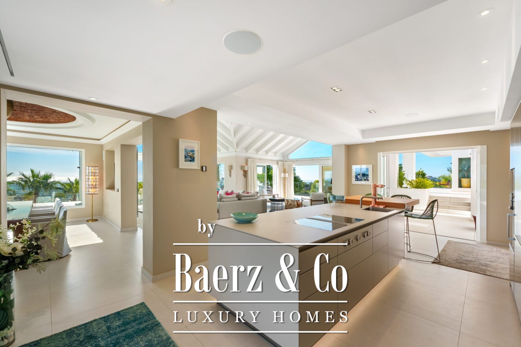 This villa for sale in Benahavís stands close to Marbella, Puerto Banús, renowned golf courses and amenities, offering seclusion without isolation and an elevated approach to Mediterranean living.