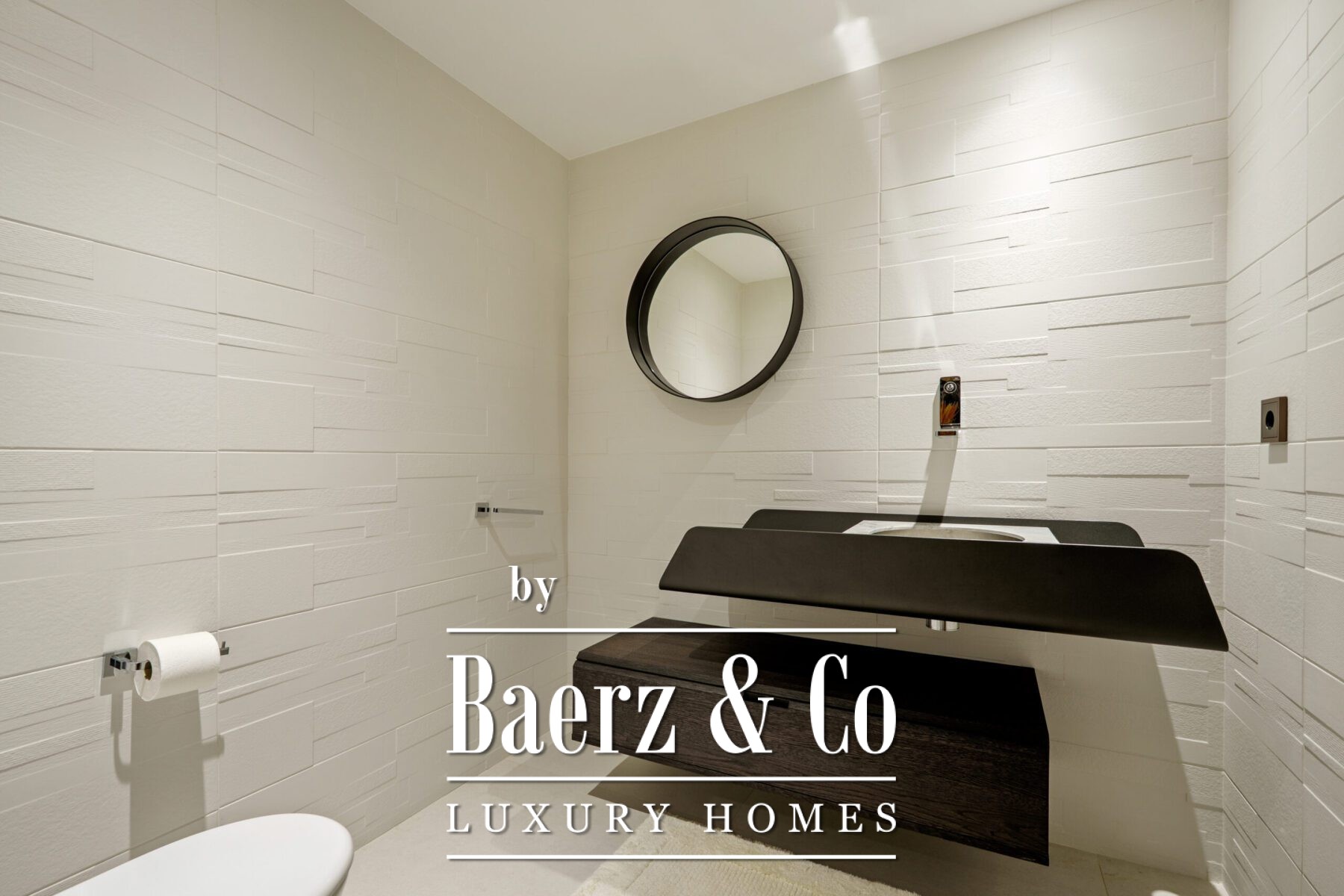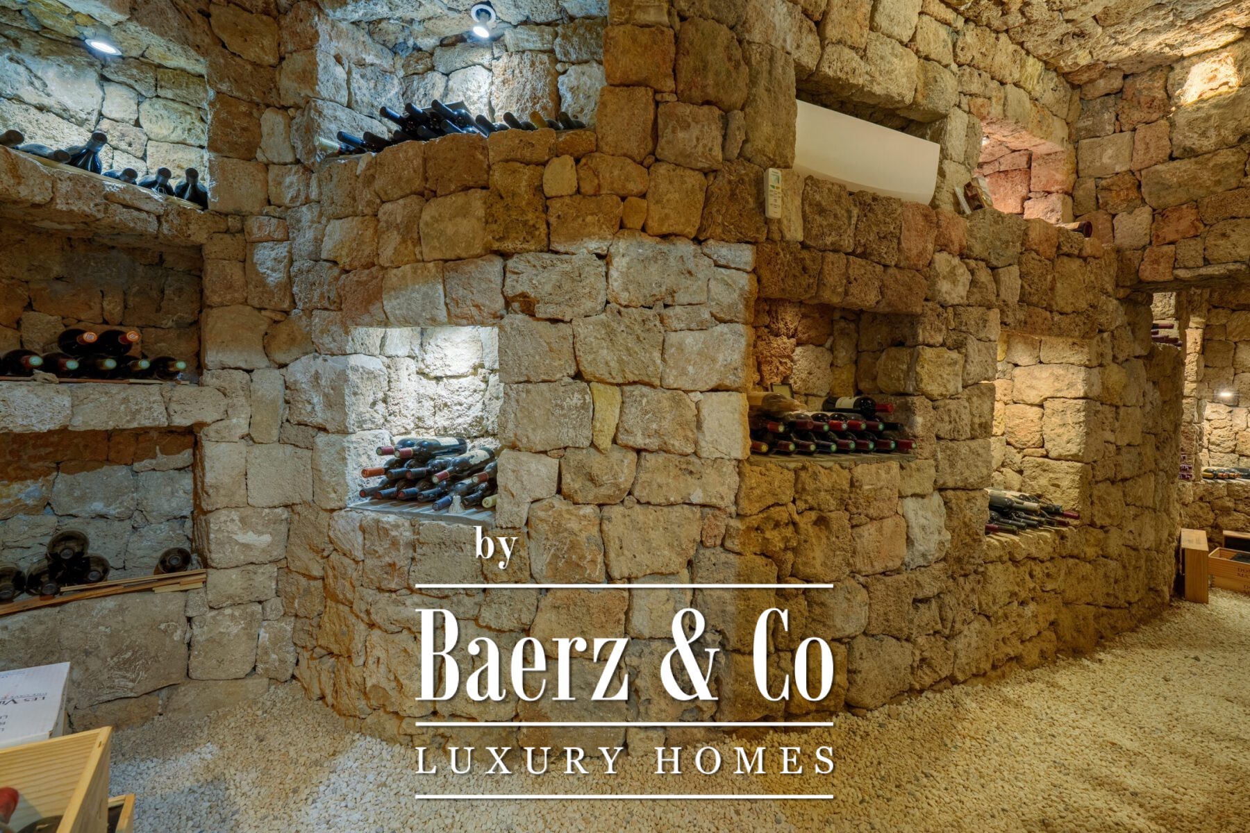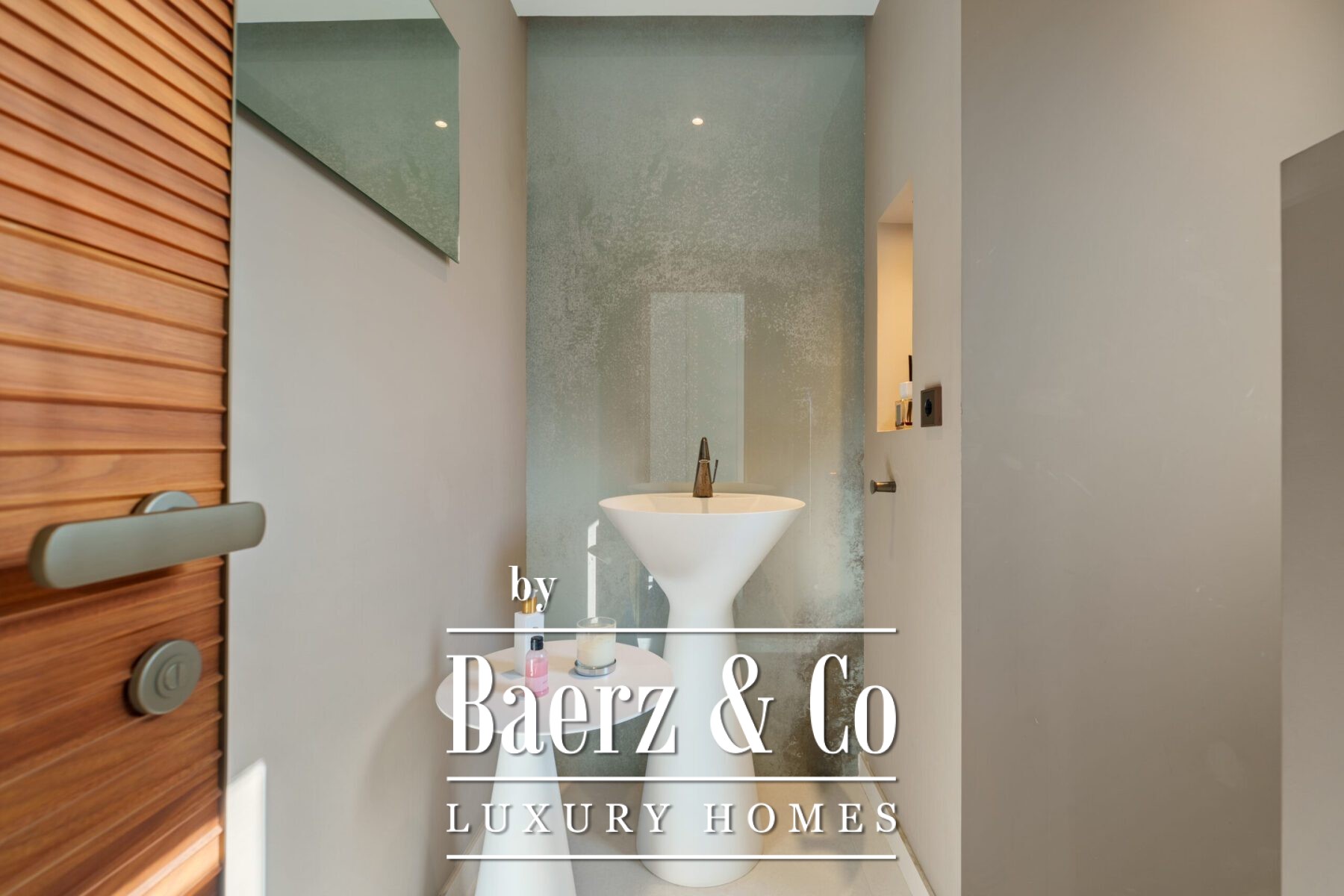 The main residence and independent guest house together offer nine bedrooms and nine en-suite bathrooms, accommodating family and guests with clarity of separation and comfort. The architectural rhythm flows from generous indoor spaces to 140 m² of terraces, encouraging a seamless connection to landscaped gardens and two private swimming pools. Arriving is discreet, via a private drive leading to sheltered parking for eighteen vehicles.