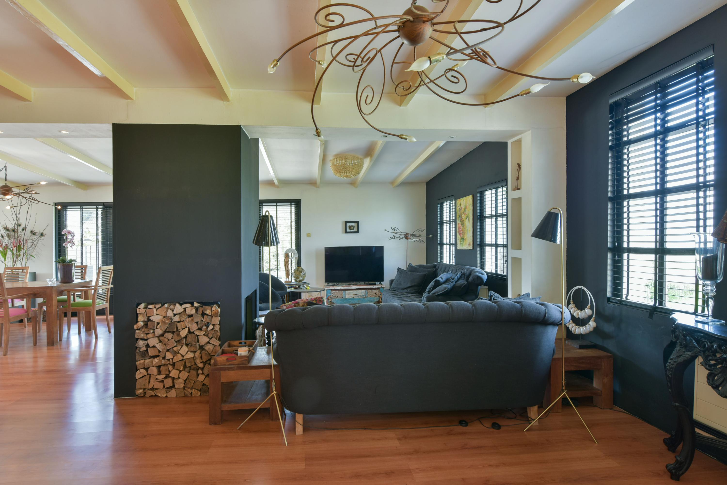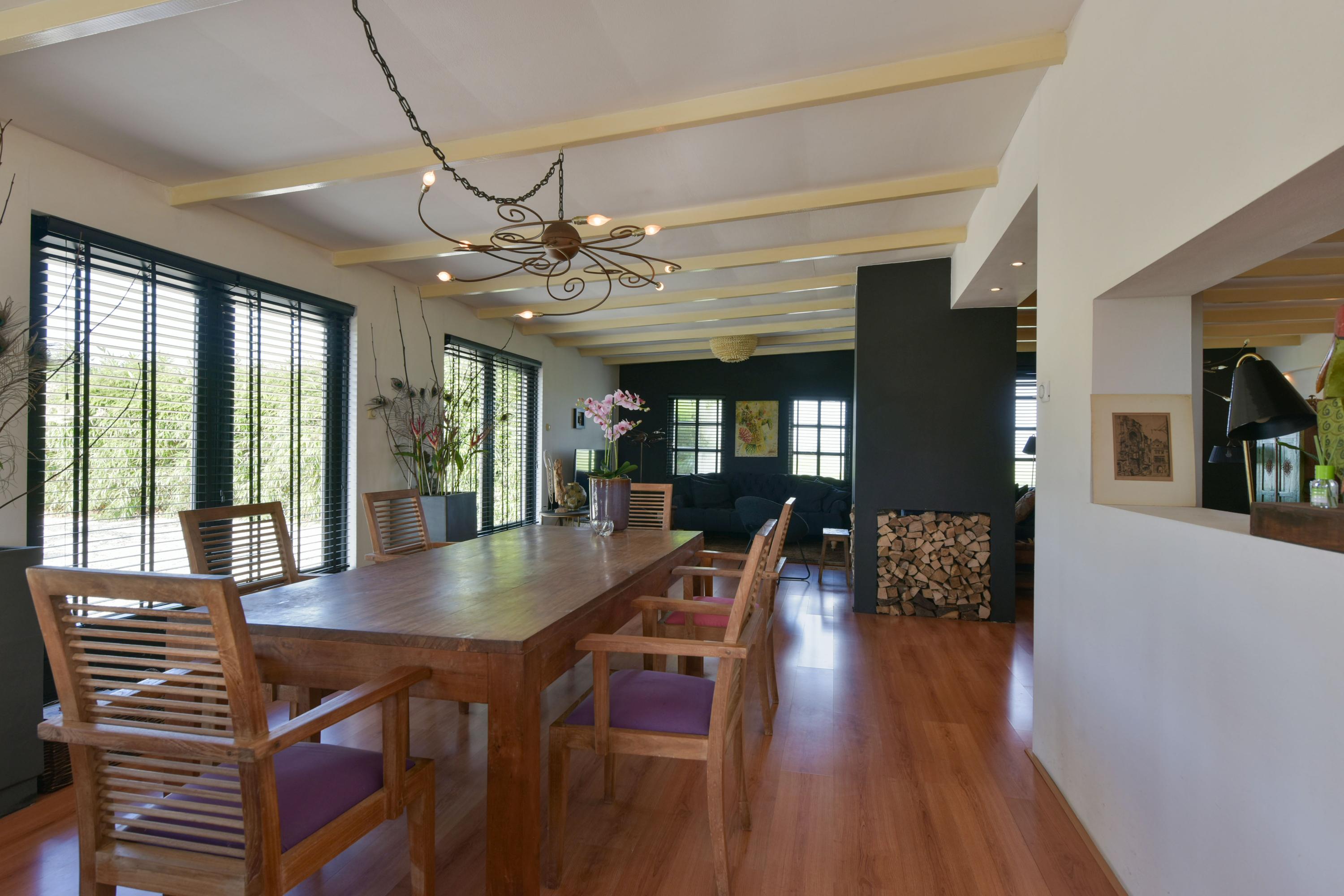 Upon entering the hallway, you will find a wardrobe closet, a toilet with washbasin, and access to the living room. As soon as you step into the very spacious U-shaped living room, you immediately notice the abundance of space and natural light this home has to offer. Thanks to the side extension, a generous living area has been created where multiple seating and living areas can easily be arranged.