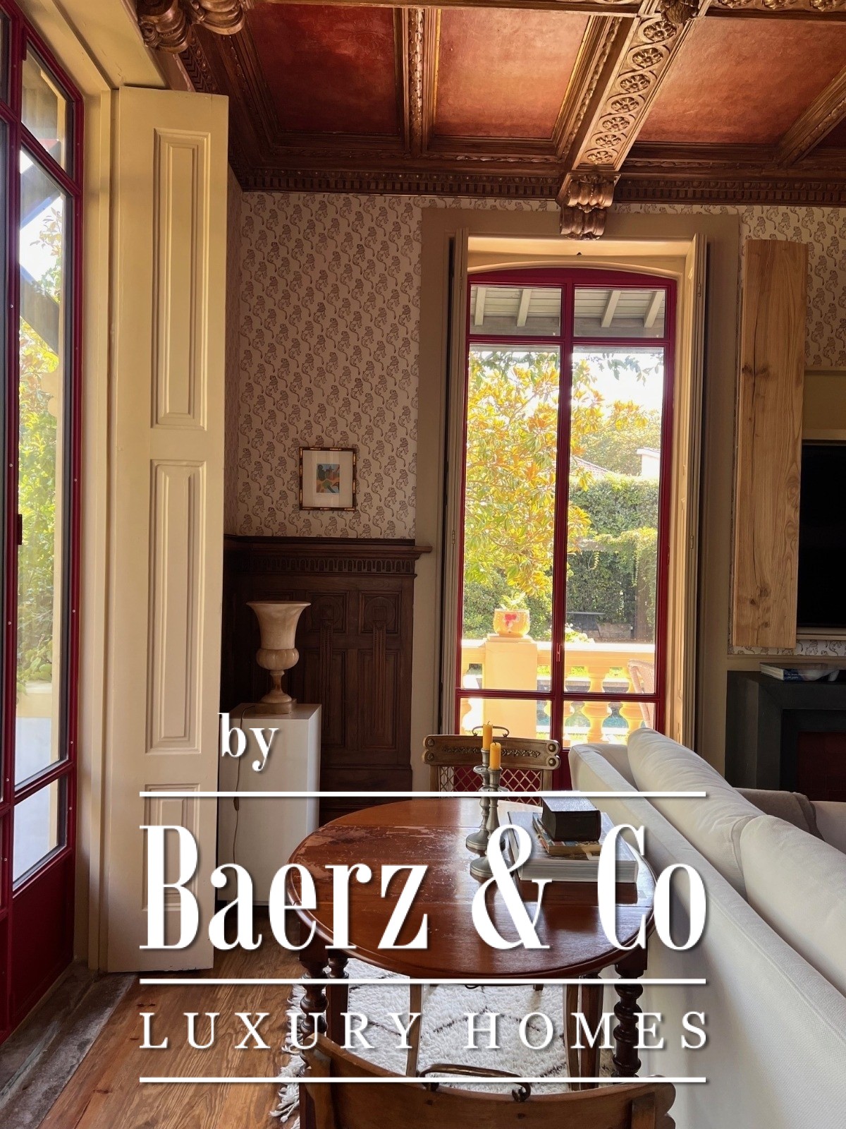Within 576 m² of refined living space, the main house presents 5 bedrooms and 5 bathrooms. Two suites highlight contemporary luxury, while the interiors exude timeless elegance through crafted ceilings, a striking stained glass staircase, and airy volumes that bring a luminous atmosphere throughout. Fluid transitions connect the living room, dining area, and a modern kitchen with a central island; comforts include underfloor heating and select air conditioning, alongside a fire place for seasonal ambiance.